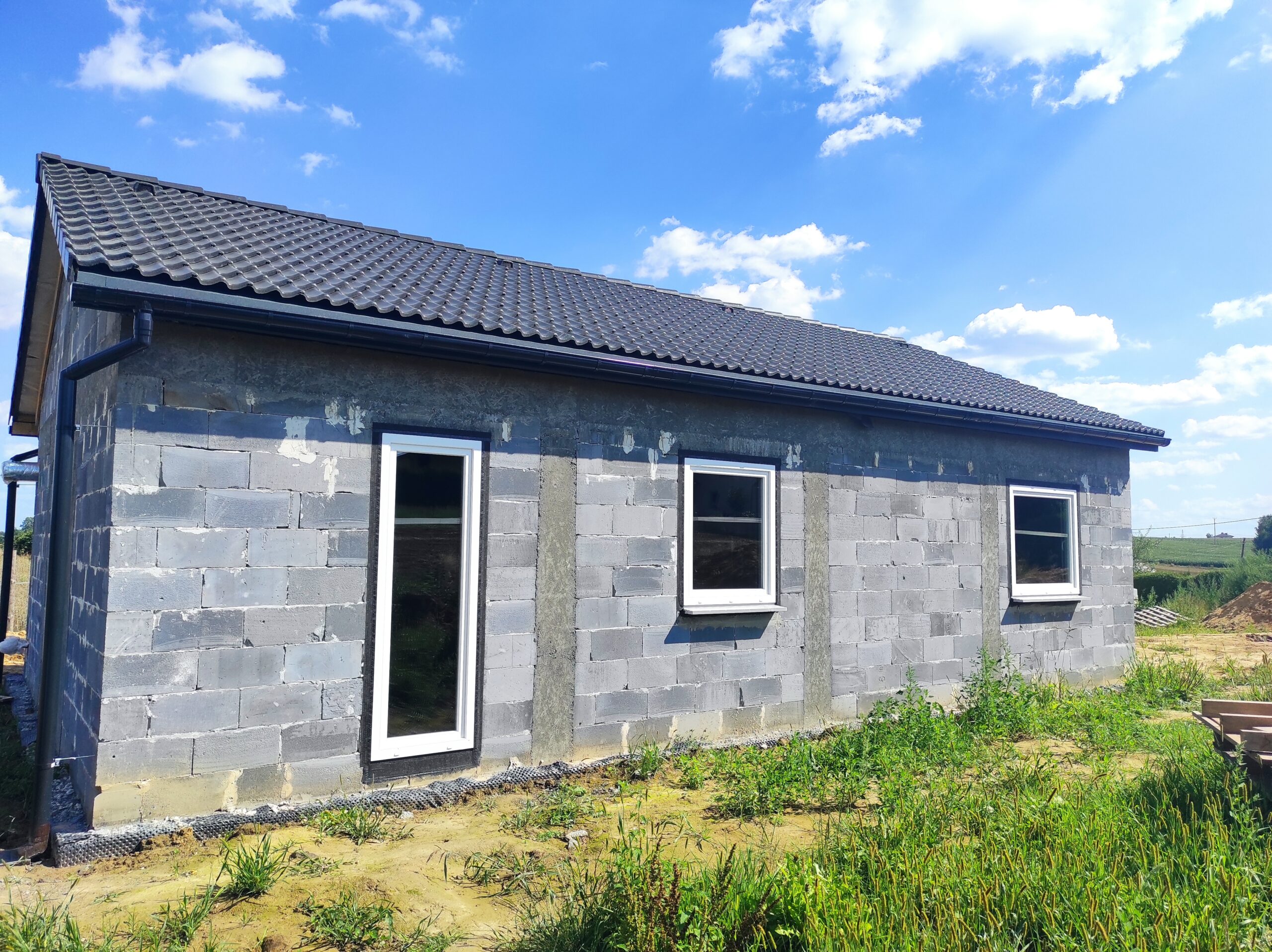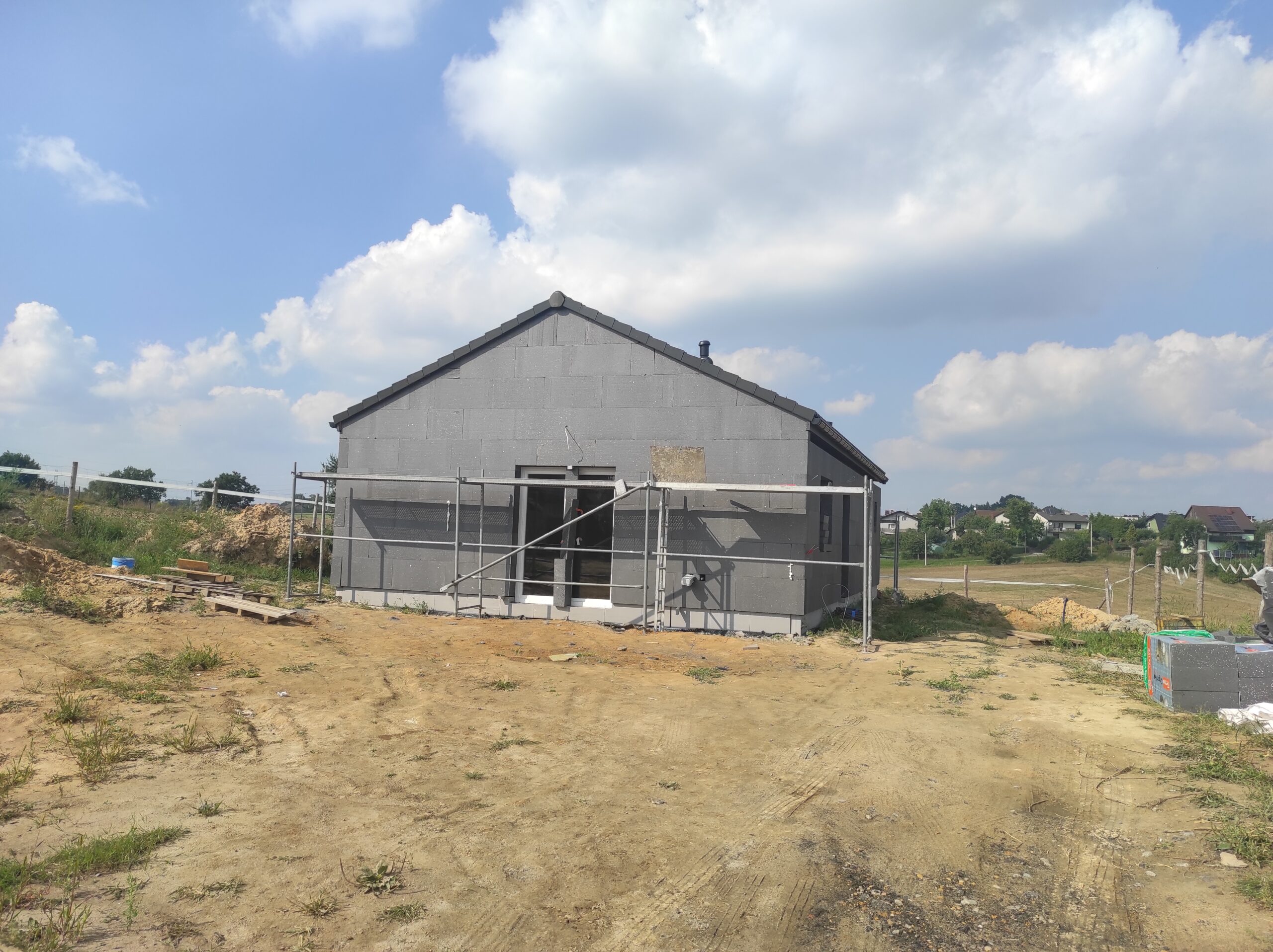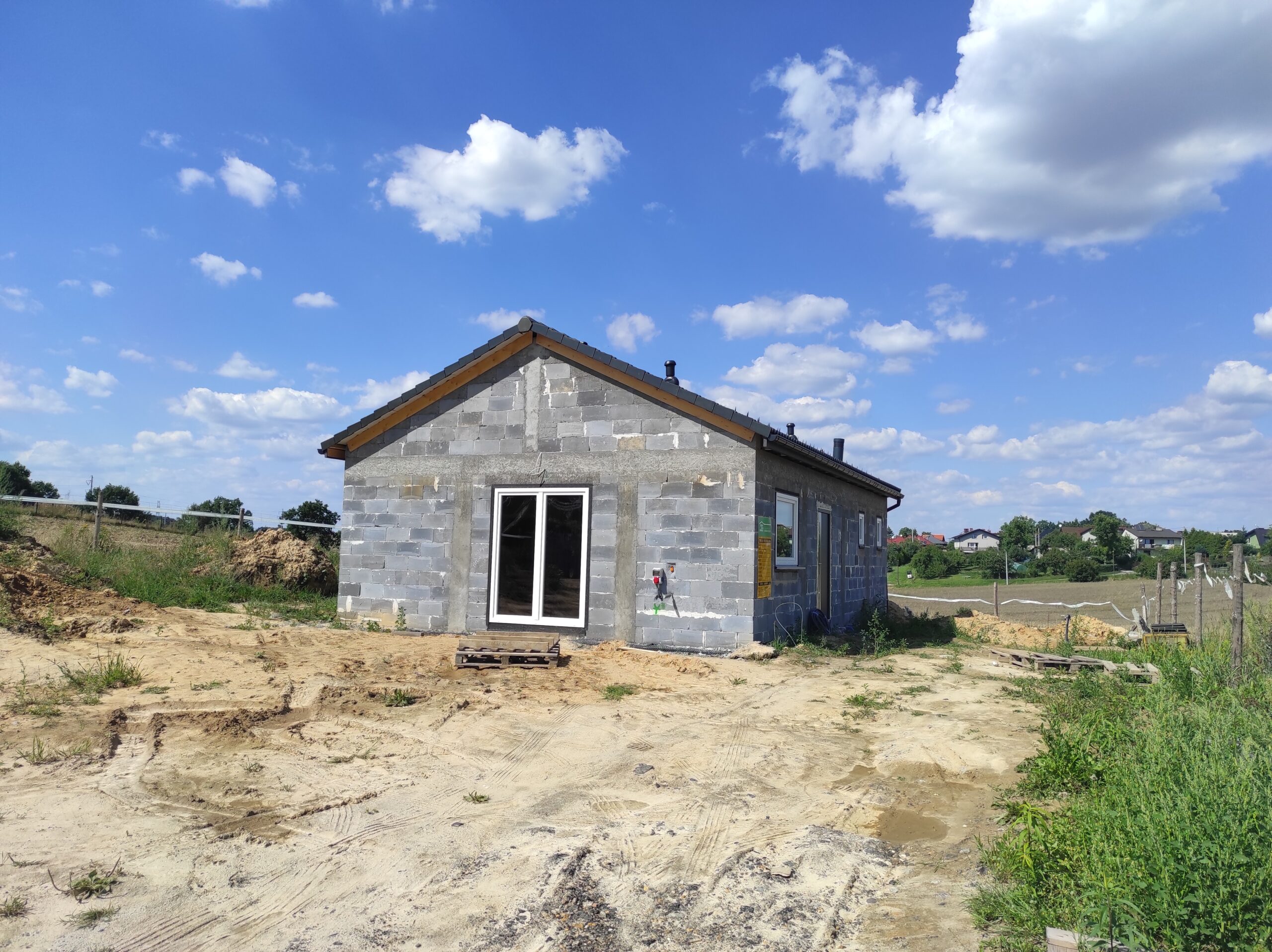 Casă cu o suprafață de 75 m2 construită pe fundamente tradiționale, adică grinzi turnate cu armătură și ziduri de fundație, cu izolație din polistiren Aqua și hidroizolație. Zidurile de susținere și cele despărțitoare au fost realizate din cărămizi ceramice cu grosimea de 24 cm, respectiv 12 cm. Structura acoperișului a fost realizată cu grinzi prefabricate, iar acoperișul clădirii a fost acoperit cu țiglă betonată ondulată de culoare grafit.