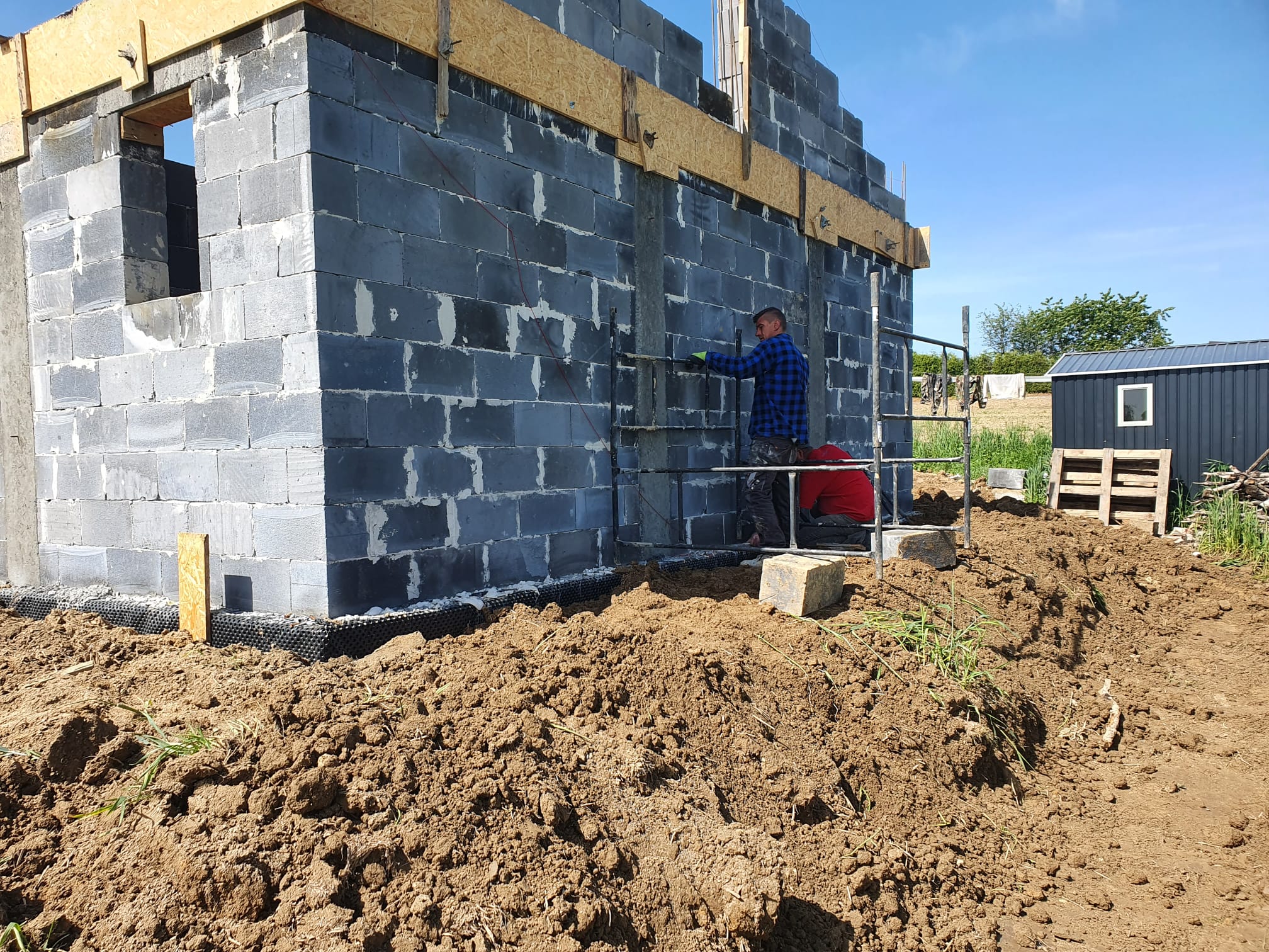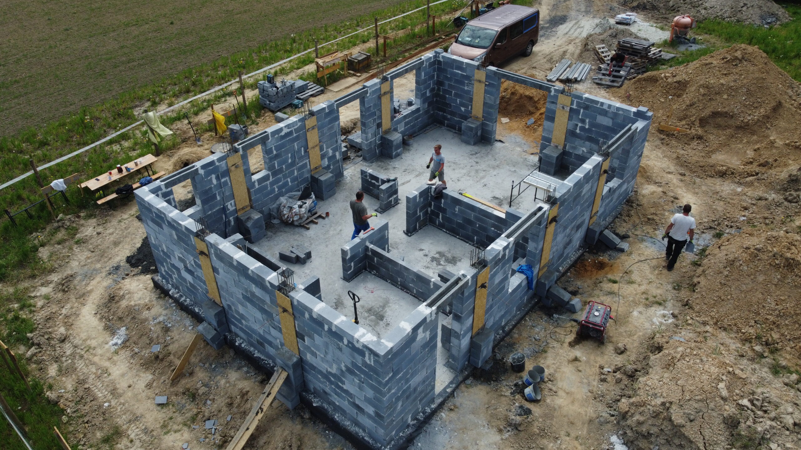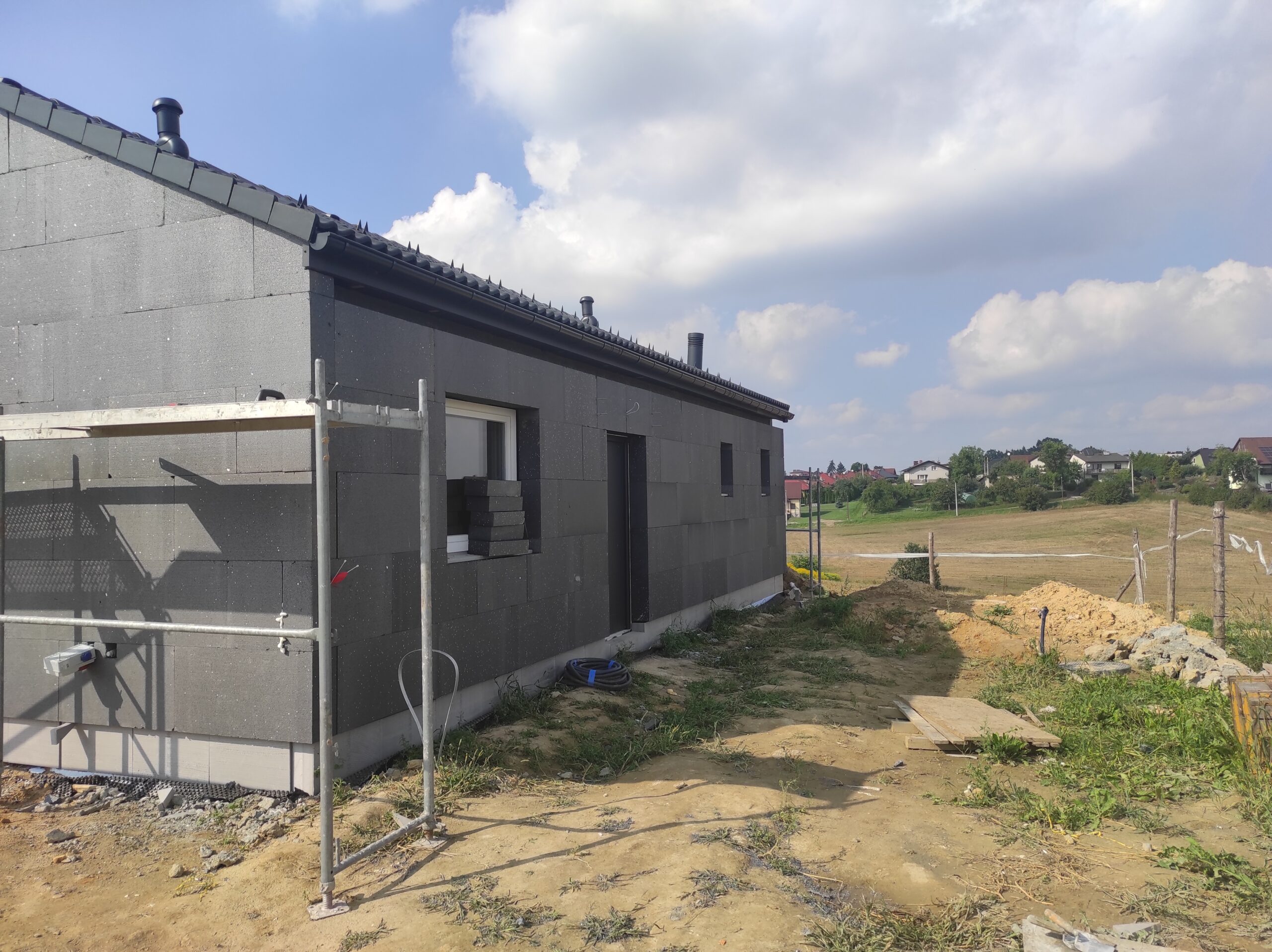 Casă cu o suprafață de 75 m2 construită pe fundamente tradiționale, adică grinzi turnate cu armătură și ziduri de fundație, cu izolație din polistiren Aqua și hidroizolație. Zidurile de susținere și cele despărțitoare au fost realizate din cărămizi ceramice cu grosimea de 24 cm, respectiv 12 cm. Structura acoperișului a fost realizată cu grinzi prefabricate, iar acoperișul clădirii a fost acoperit cu țiglă betonată ondulată de culoare grafit.