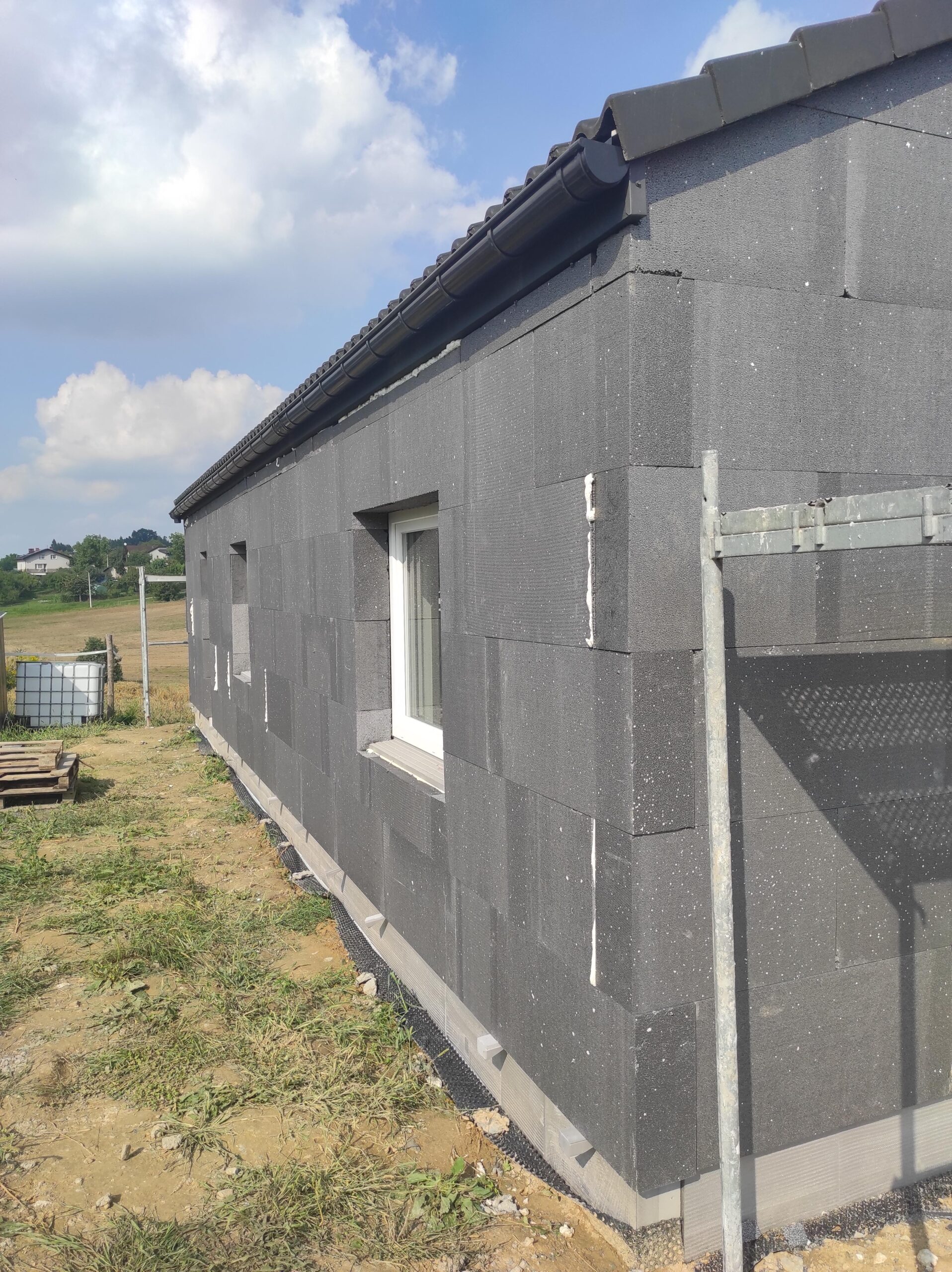 Pentru izolarea pereților exteriori s-a folosit polistiren pentru fațadă cu grosimea de 20 cm, iar acoperișul a fost izolat cu spumă PUR de 25 cm. Pentru finisarea fațadei s-a folosit tencuială siliconică.