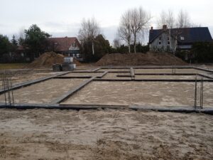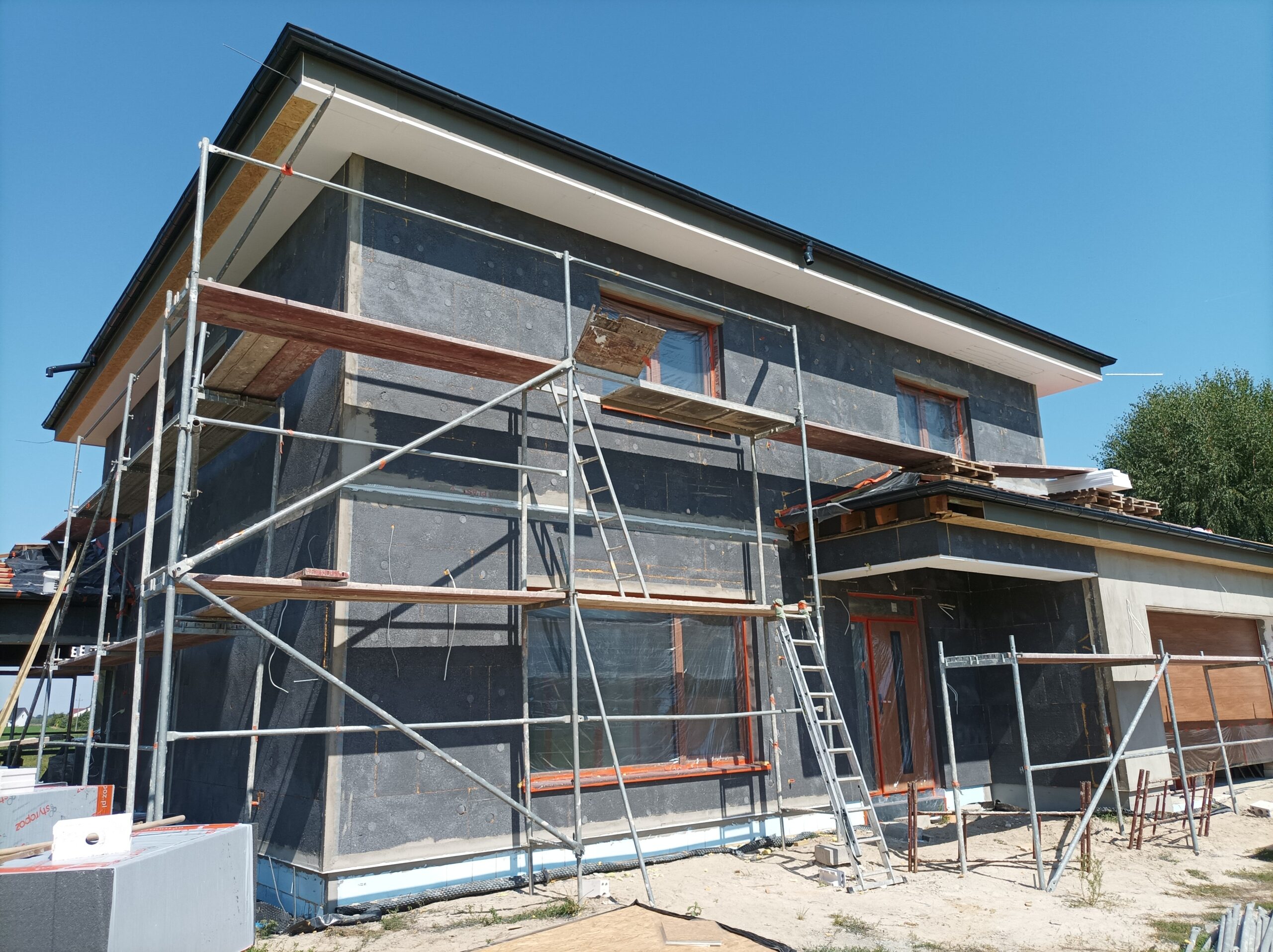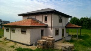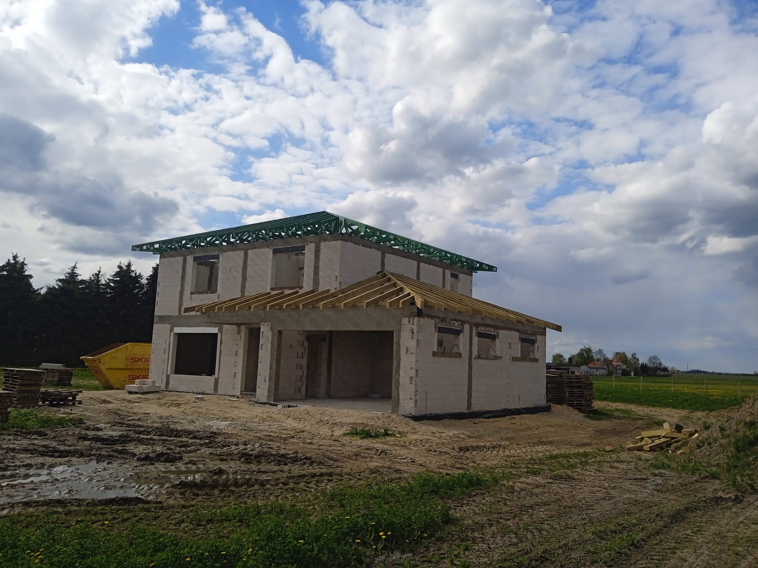 Casă cu o suprafață de 241 m2 ridicată pe fundații tradiționale, adică benzi armate și pereți de fundație izolați termic. Pereții portanți și despărțitori au fost realizați din blocuri silicat cu grosimea de 24 cm, respectiv 12 cm. Plafon cu grinzi dense de tip Teriva. Structura acoperișului a fost realizată din ferme prefablicate. Acoperișul a fost acoperit cu țiglă betonată plată de culoare grafit.