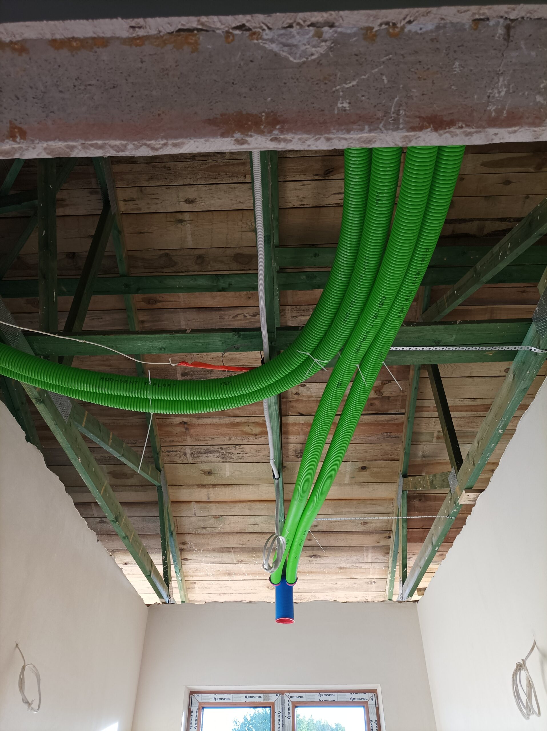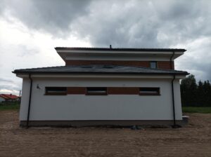 Ca parte a montajului termoizolant al tâmplăriei ferestrelor a fost instalat un sistem de ferestre tripan eficiente energetic cu profile Bluevolution cu 6 camere și adâncimea de 82 mm, precum și pervaze termoizolante. Ferestrele sunt echipate cu jaluzele electrice încastrate. În clădire au fost realizate instalații electrice, telecomunicații, apă-canalizare și instalație de recuperare a căldurii. În plus, au fost montate instalații pentru paratrăsnete și sistem de alarmă. Încălzirea casei se va face prin intermediul unei pompe de căldură aer-aer și încălzire electrică.