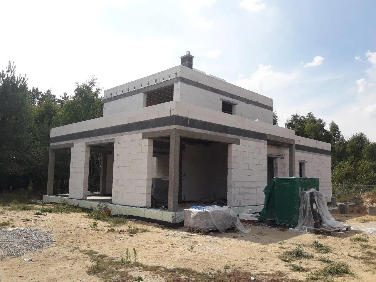 Casă cu o suprafață de 228 metri pătrați. Clădirea a fost amplasată pe fundații continue. Zidurile fundației au fost realizate conform proiectului din blocuri de beton celular ușurat Czamaninek. Pereții portanți cu grosimea de 24 cm și pereții despărțitori (12 cm) au fost realizați din blocuri de beton celular H+H Gold+. Deasupra parterului a fost utilizată o planșeu cu grinzi dense Teriva Base, iar deasupra etajului un planșeu din lemn.