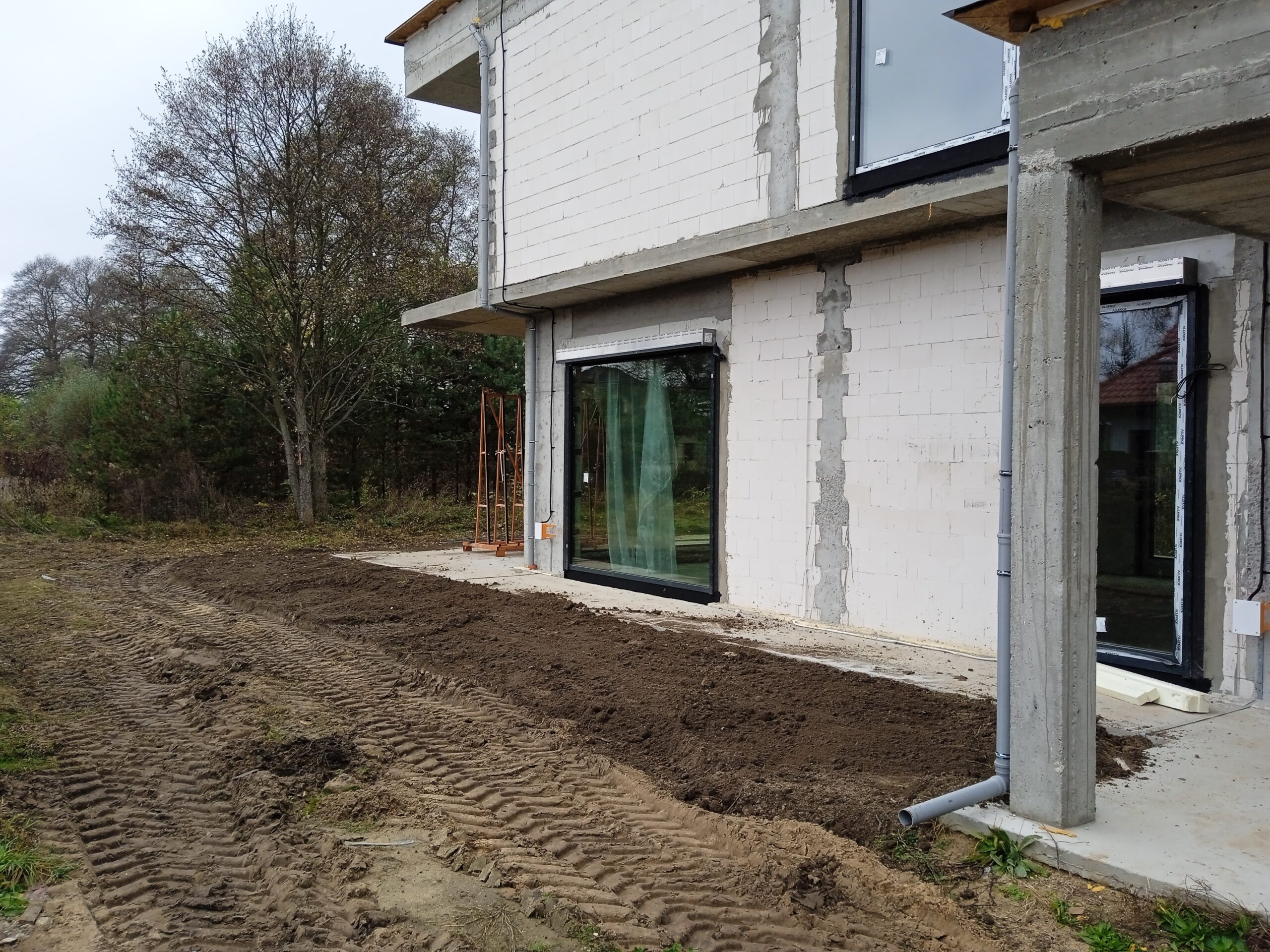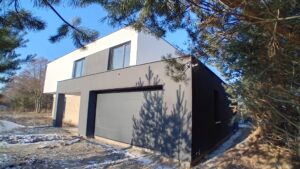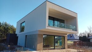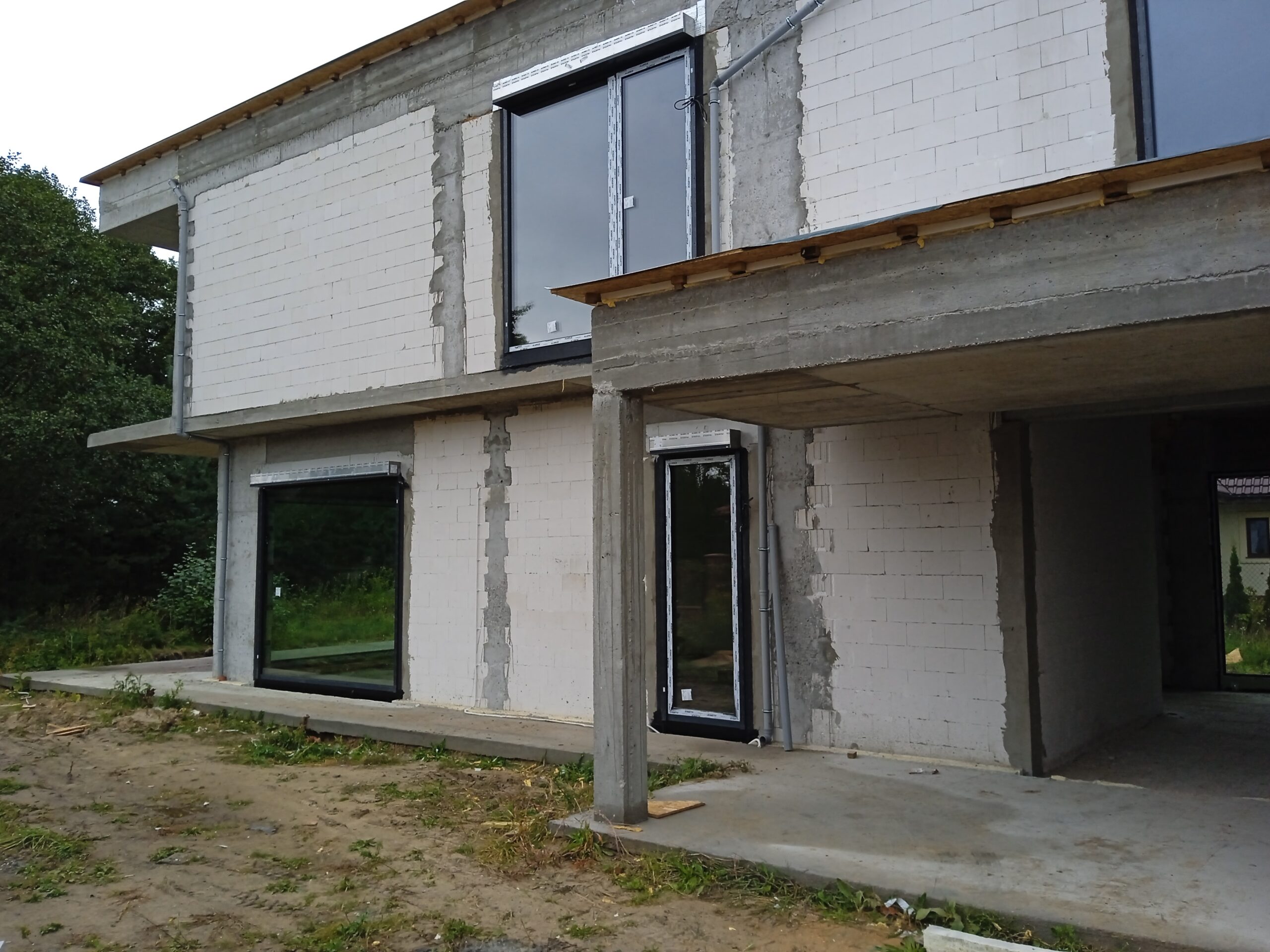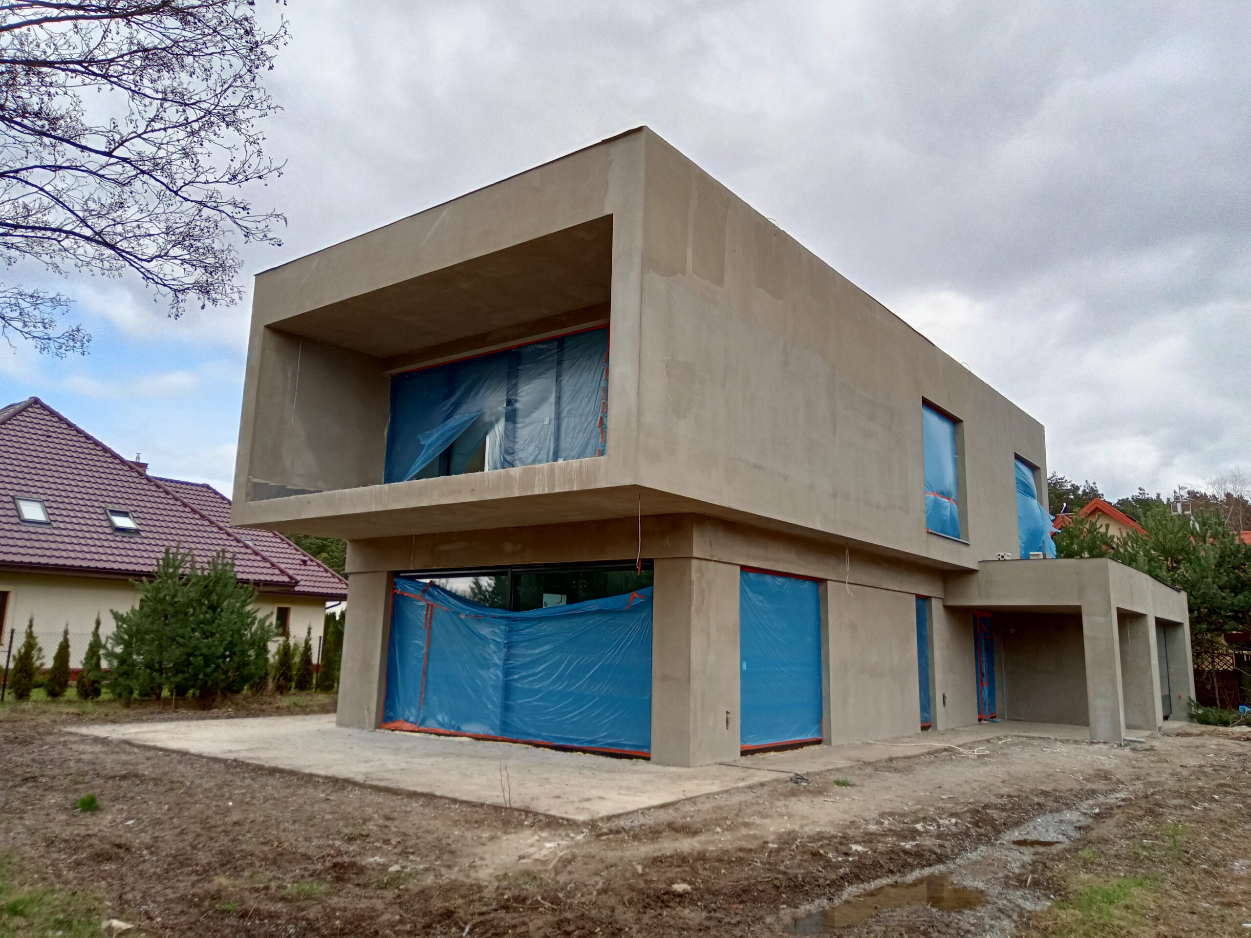 Casă cu o suprafață de 221 m2 construită pe o placă de fundație în armătură împreună cu termoizolație de 15 cm grosime. Pereții portanți și cei despărțitori au fost realizați din blocuri silicatice cu grosimi de 25 cm, respectiv 12 cm. Planșeu monolitic. Acoperișul clădirii este plat.
