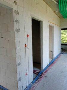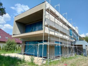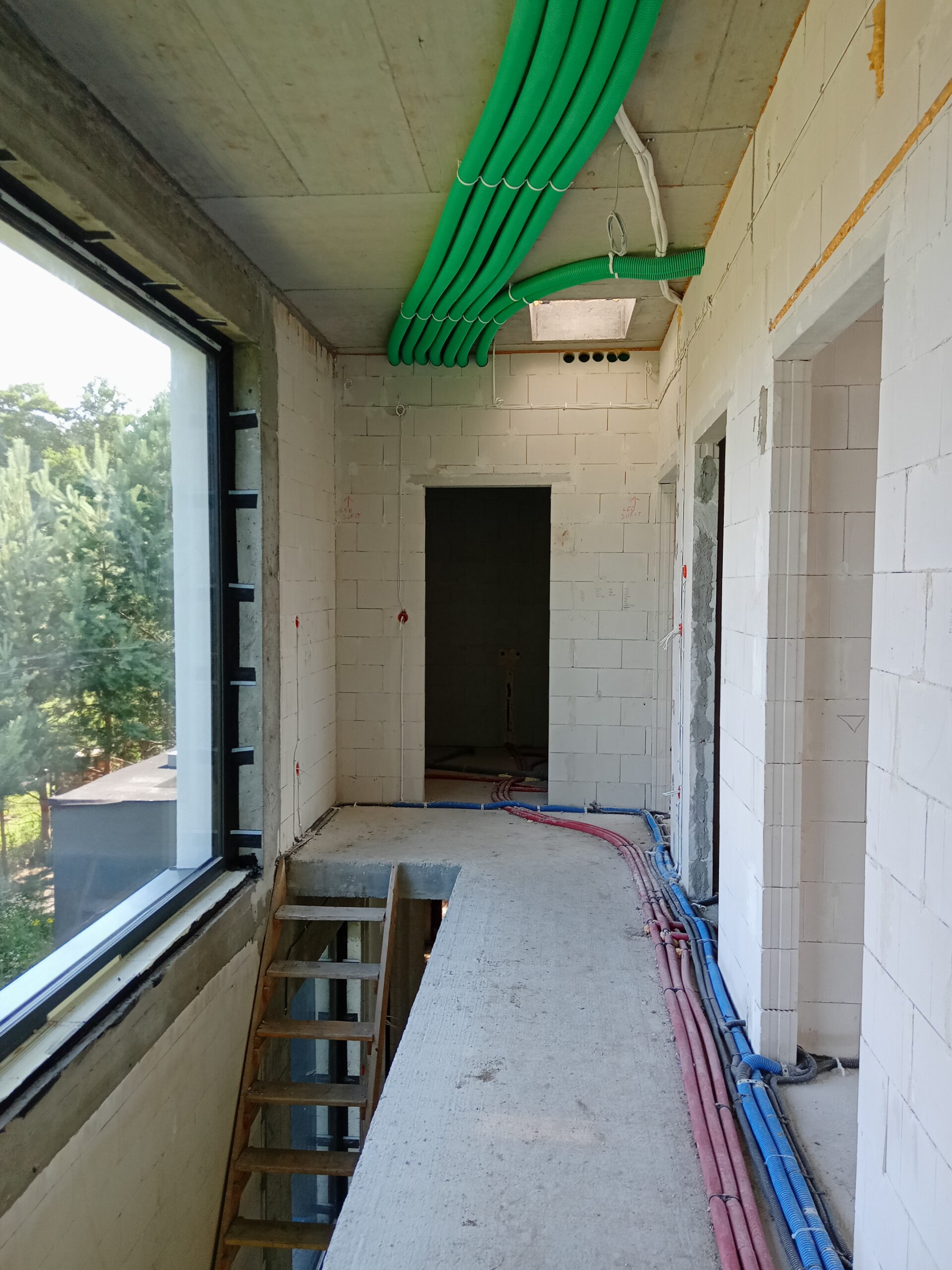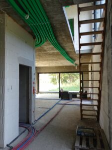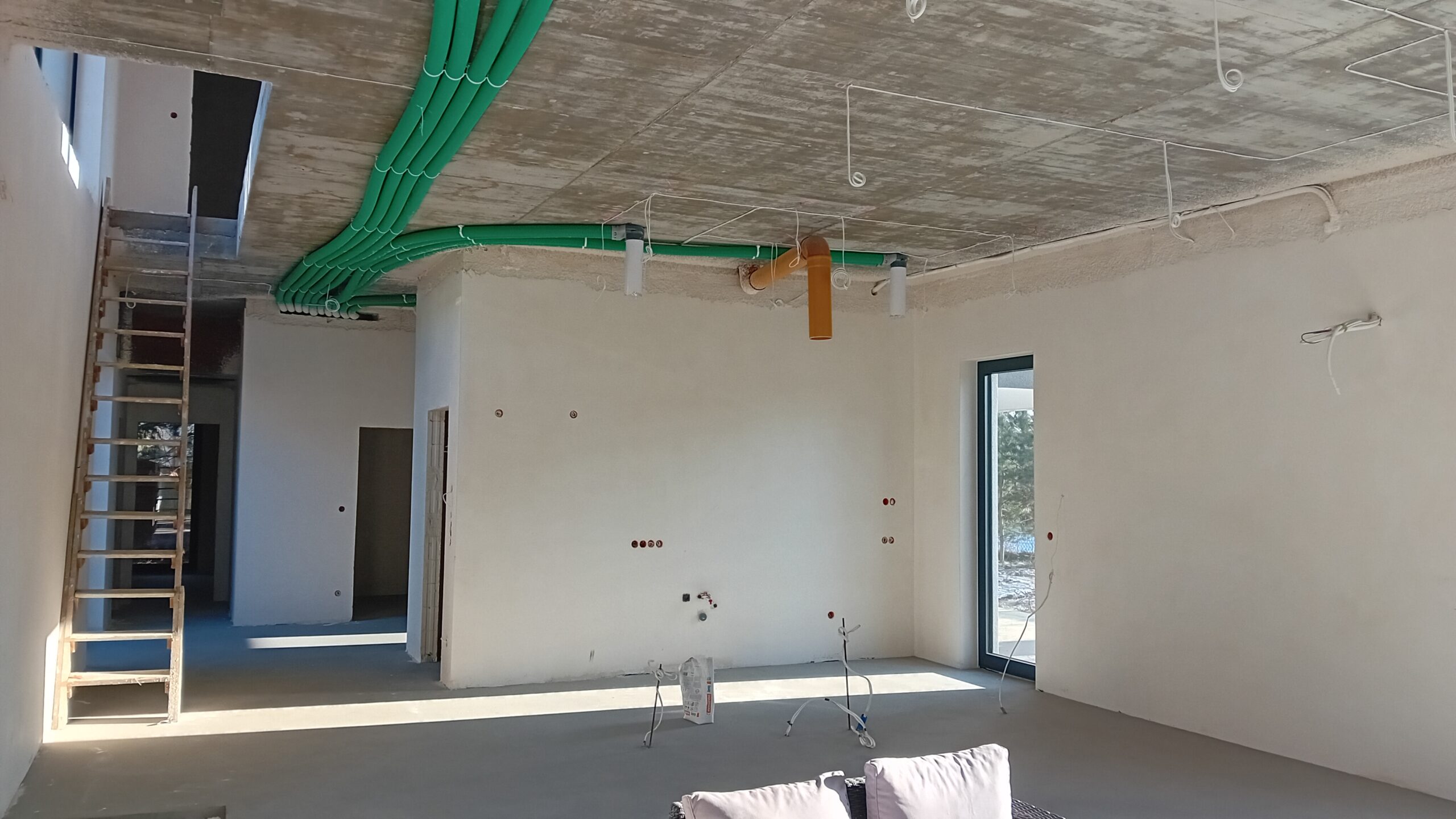 În clădire s-a efectuat montajul rulourilor electrice îngropate cu acționare și montajul cald al ferestrelor folosind benzi parobarieră, pervazuri calde din XPS și ancadramente din Klinarit. Casa este echipată cu instalație electrică, instalație teletehnică, instalație de apă-canal, instalație de recuperare a căldurii și instalație de pompă de căldură aer-aer. De asemenea, s-a realizat tubulatura pentru instalația fotovoltaică, instalația de climatizare și sistemul de monitorizare.