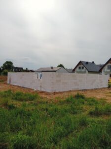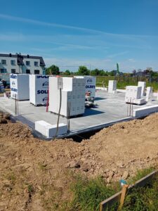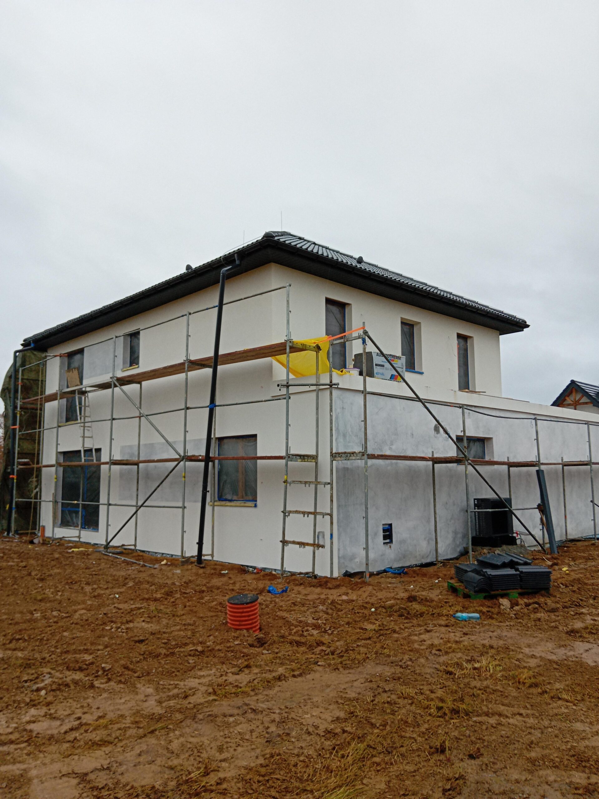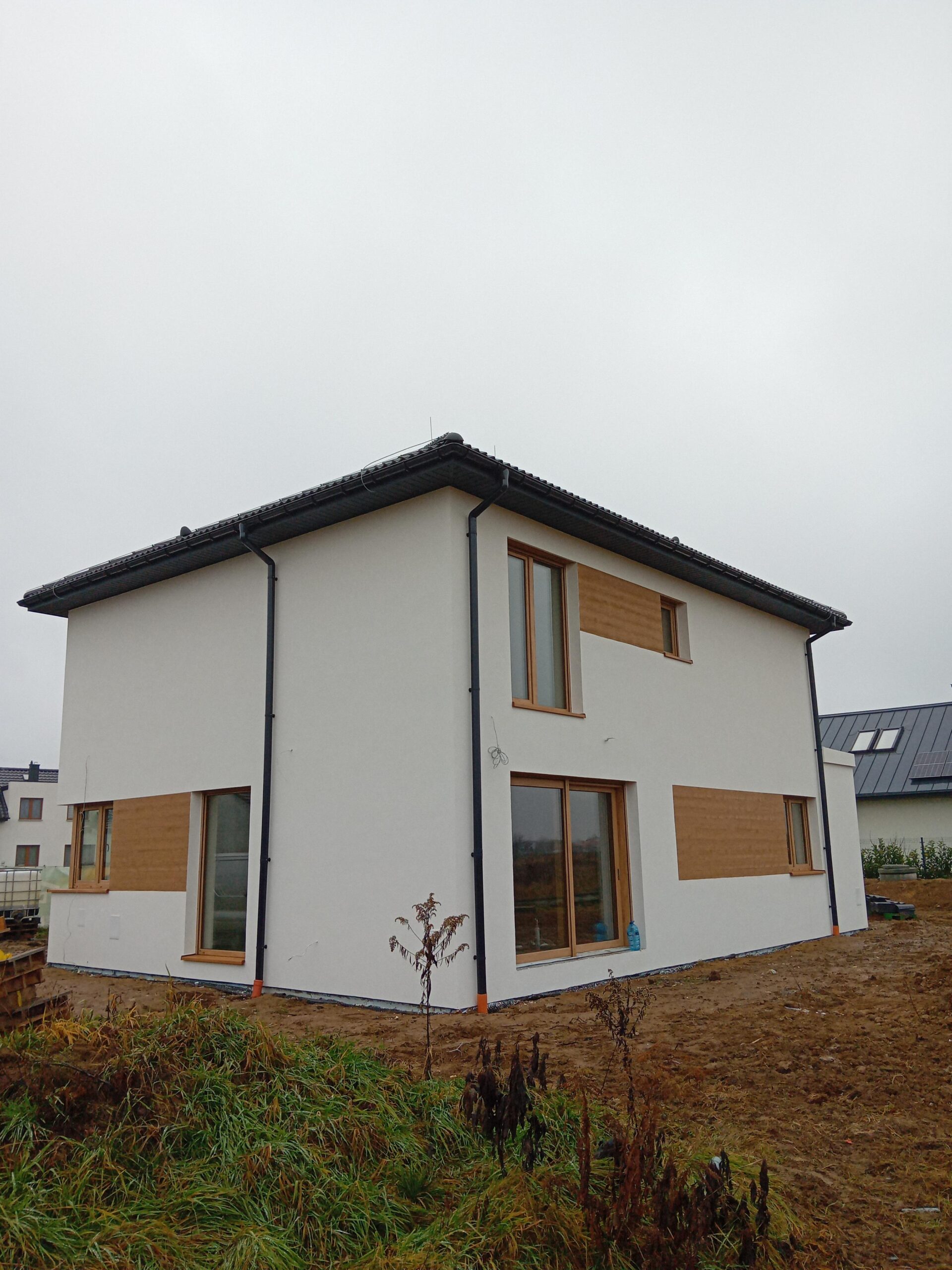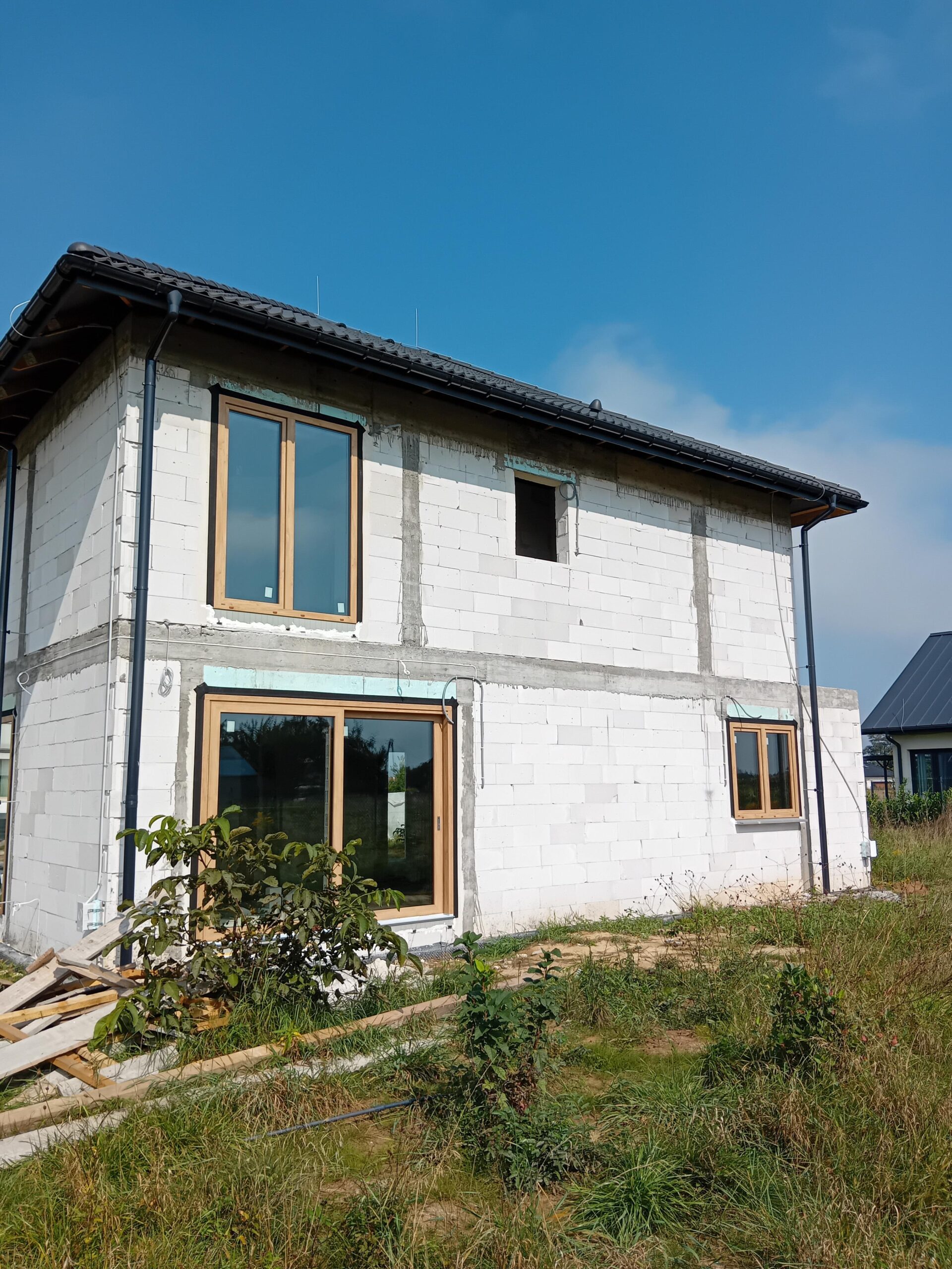 Casa cu o suprafață de 171 m2 construită pe fundații tradiționale, adică pe benzi armate și ziduri de fundație. Pereții portanți și compartimentările au fost realizați din beton celular cu grosimea de 24 cm, respectiv 12 cm. Structura acoperișului a fost realizată cu grinzi prefabicate din lemn prelucrat pe patru fețe. Acoperișul clădirii a fost îmbrăcat cu țiglă beton ondulată de culoare grafit. În cadrul montajului termoizolant al tâmplăriei ferestrelor a fost instalat un sistem de ferestre cu trei foi de sticlă, eficiente energetic, cu profile cu 6 camere și adâncime de 82 mm. De asemenea, au fost montate jaluzele cu comandă electrică. În clădire au fost realizate instalațiile electrice, tehnice, sanitare, instalația de încălzire cu pompă de căldură precum și instalația de recuperare a aerului. De asemenea, a fost instalată o tubulatură pentru montarea ulterioară a panourilor fotovoltaice. Izolația acoperișului clădirii a fost realizată cu spumă poliuretanică de 25 cm grosime, iar pereții exteriori cu polistiren pentru fațadă de 20 cm grosime. Pentru finisarea fațadei clădirii s-a folosit tencuială siliconică albă.