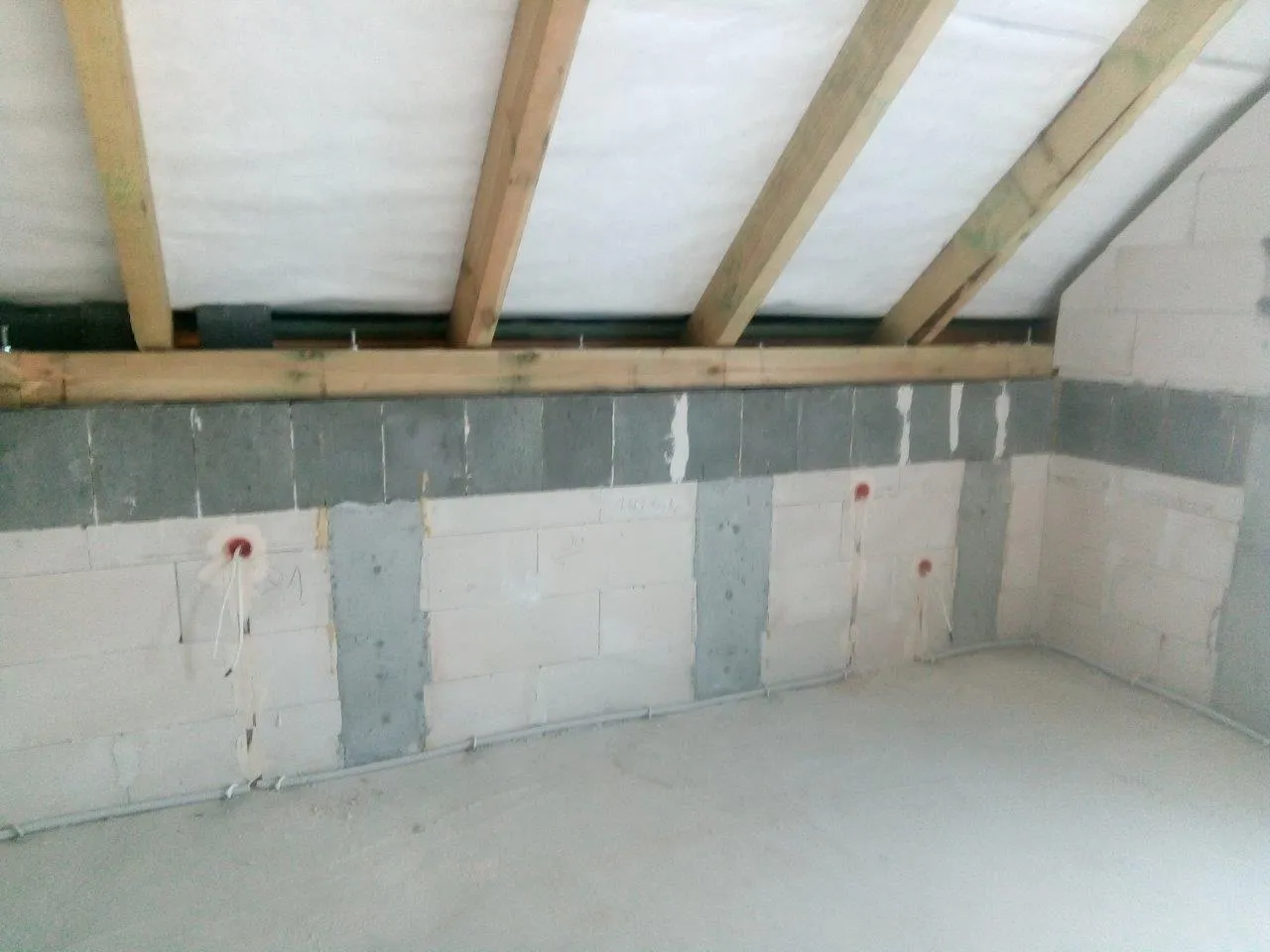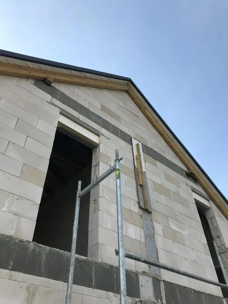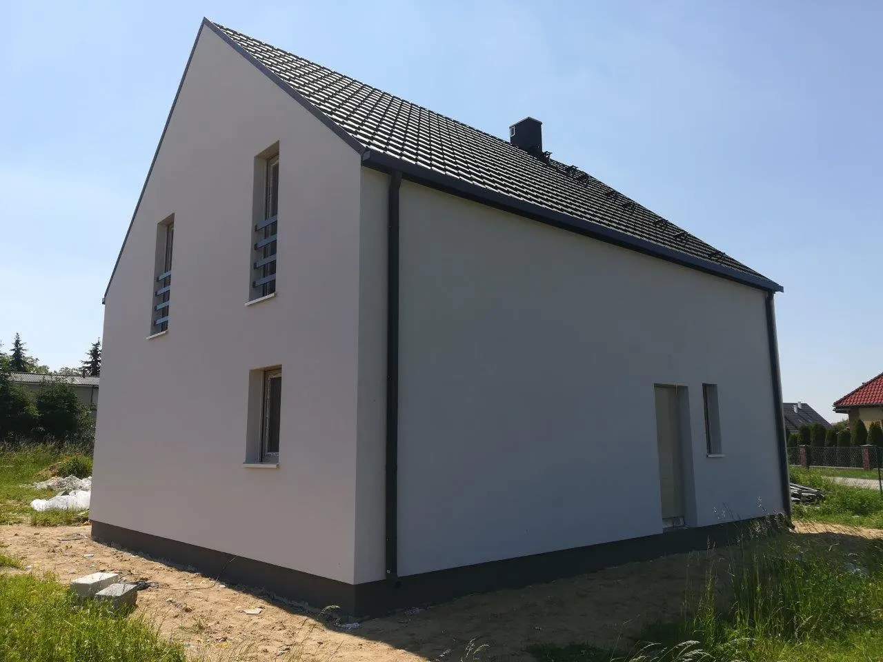 Izolația acoperișului a fost realizată prin pulverizarea spumei PUR într-un strat de 20 cm, iar pereții exteriori au fost izolați cu polistiren grafitat de 20 cm grosime. Pentru finisajul exterior al clădirii s-a folosit tencuială siliconică, iar pe soclu, cu o înălțime de 25 cm, s-a aplicat tencuială mozaicată.