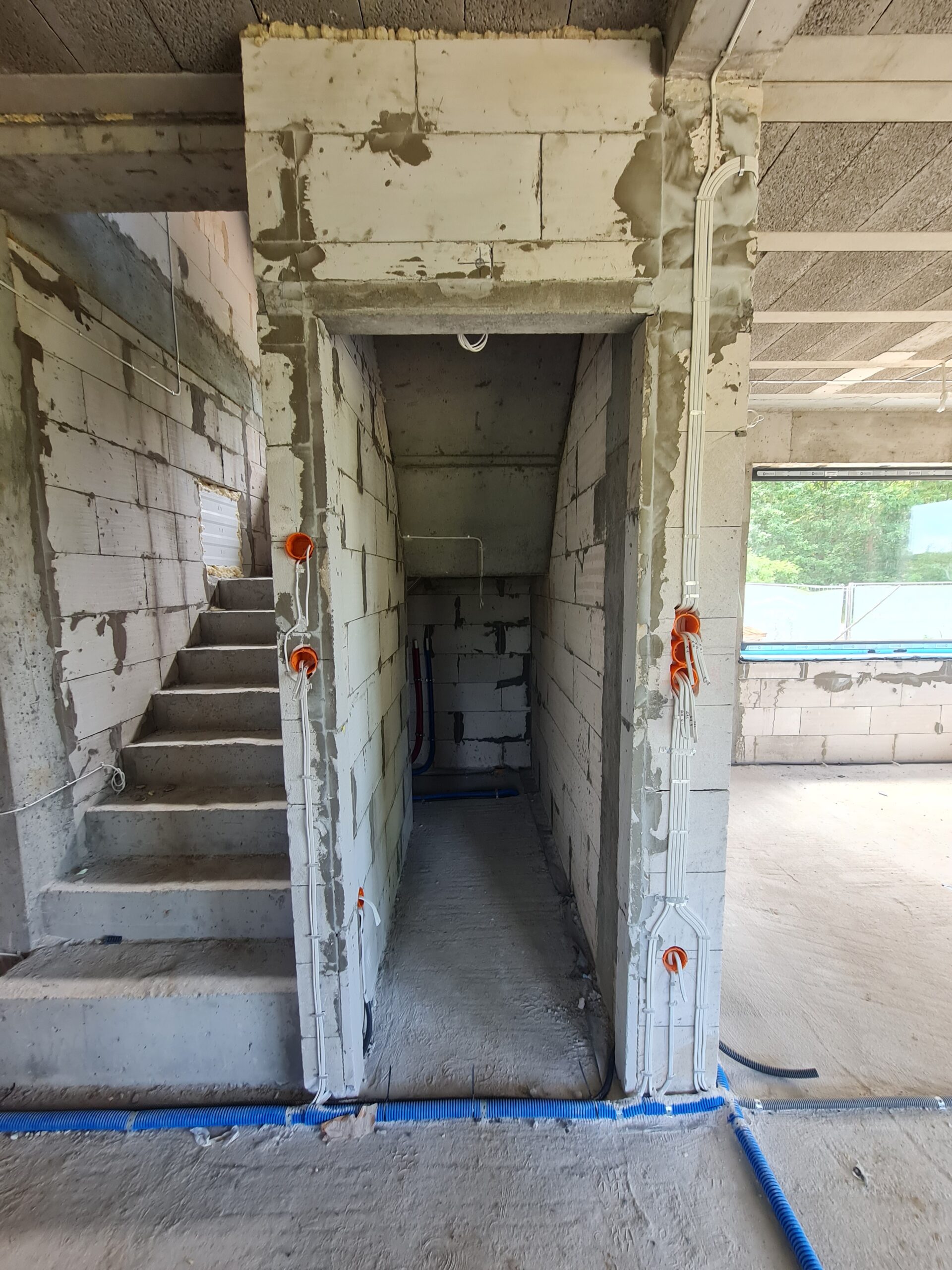 După efectuarea lucrărilor pregătitoare necesare, a fost realizată o placă de fundație armată cu grosimea de 15 cm, cu izolație termoizolantă din polistiren extrudat (styrodur) de 15 cm grosime. Zidurile de rezistență și pereții despărțitori ai clădirii au fost zidite din beton celular. Tavanul este tip teriva 24. Structura acoperișului a fost realizată în mod tradițional, iar acoperișul a fost acoperit cu țiglă betonată plană de culoare grafit.