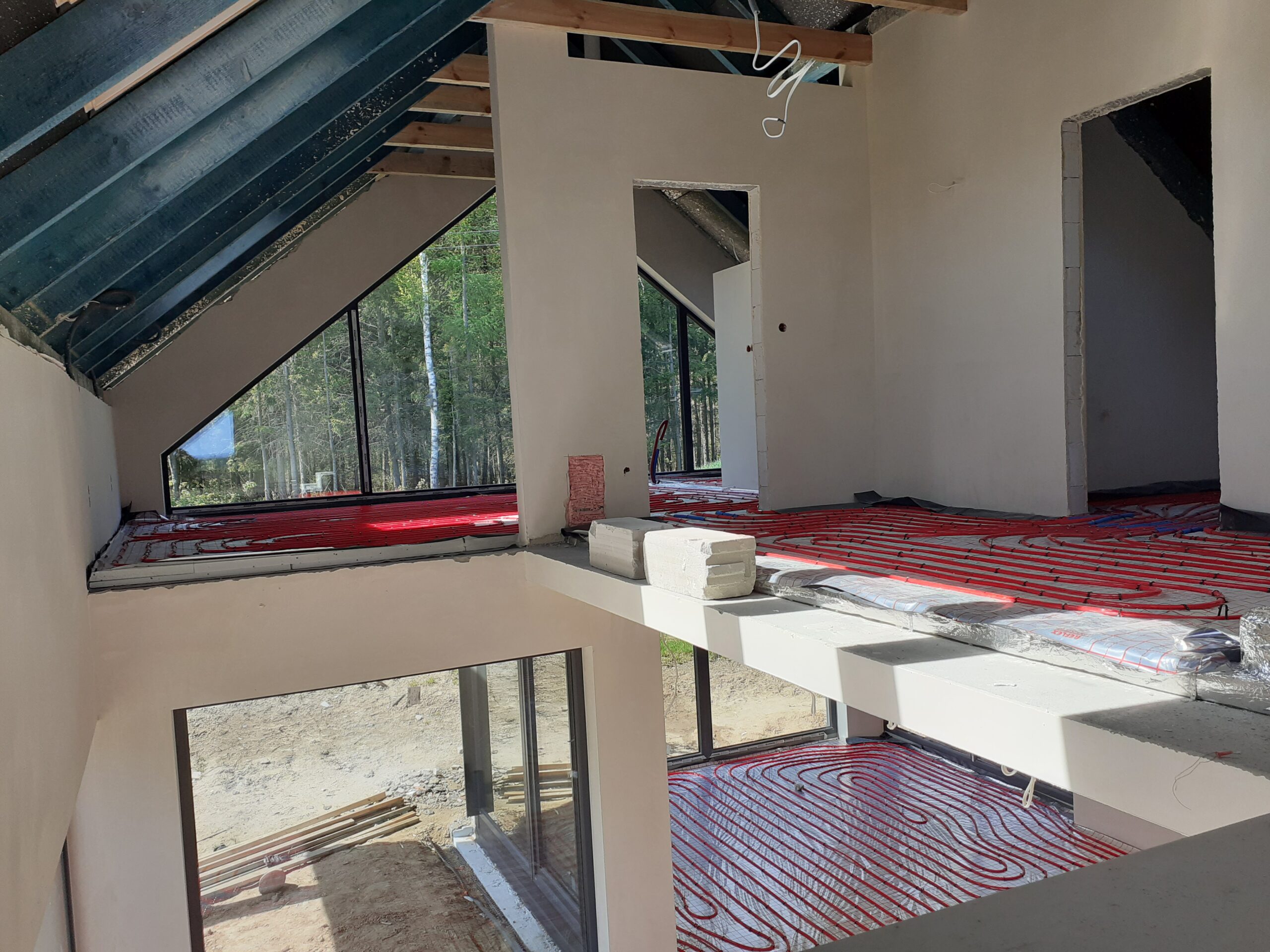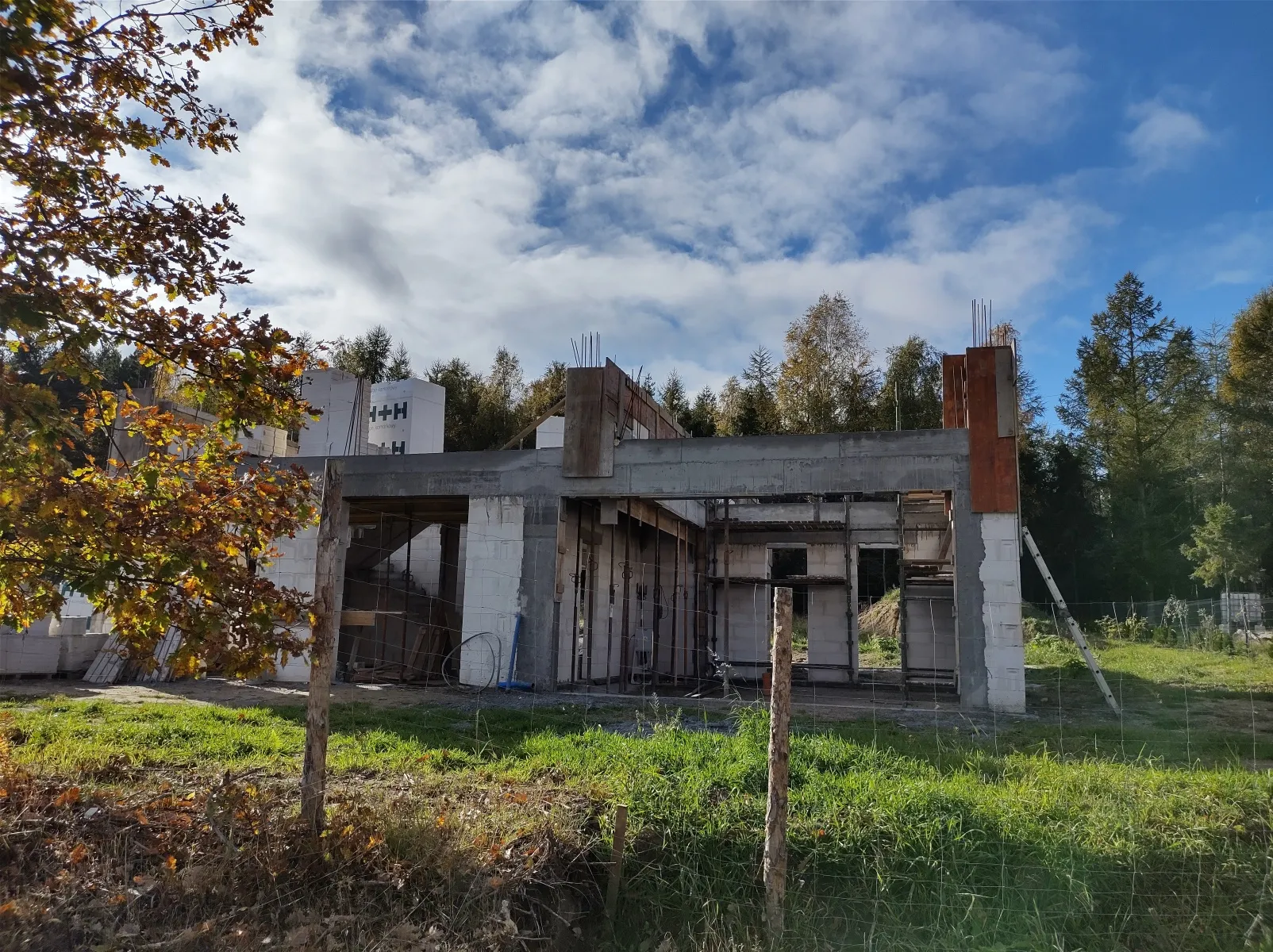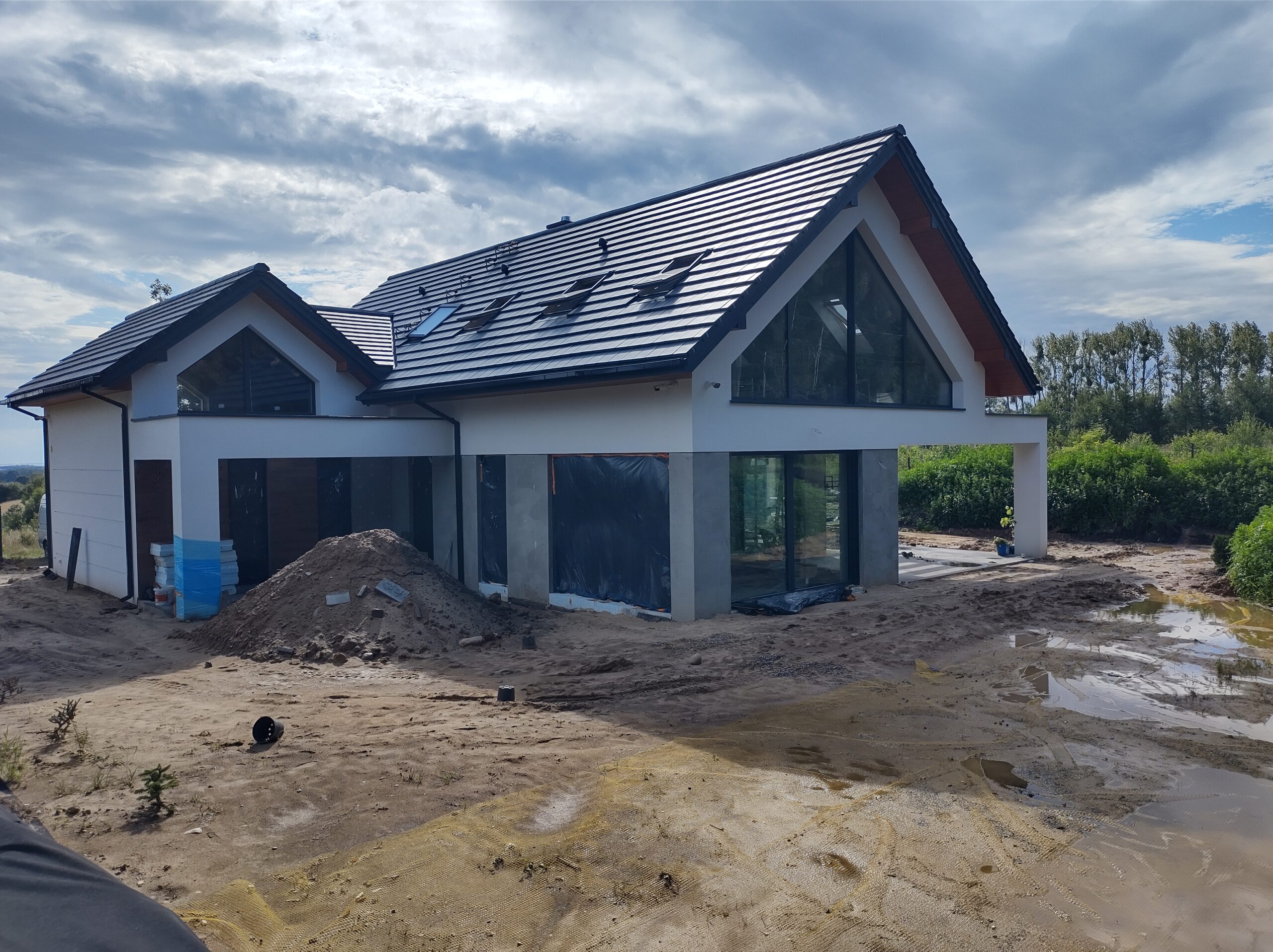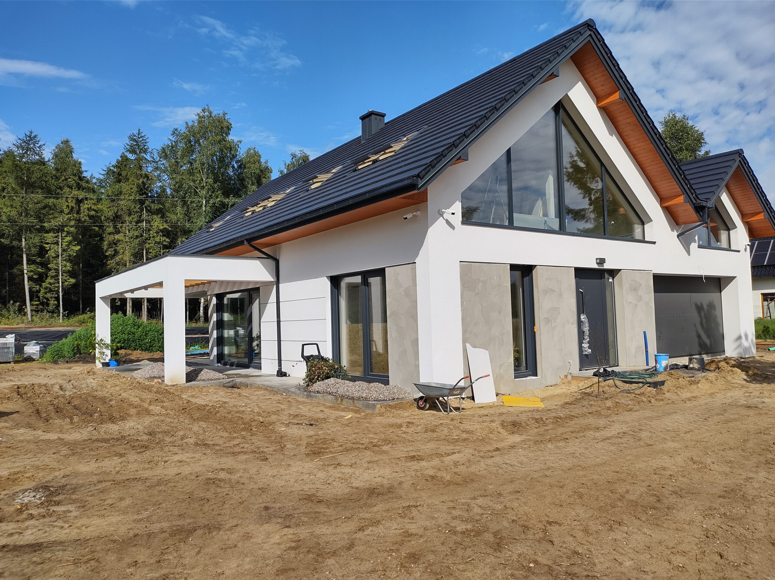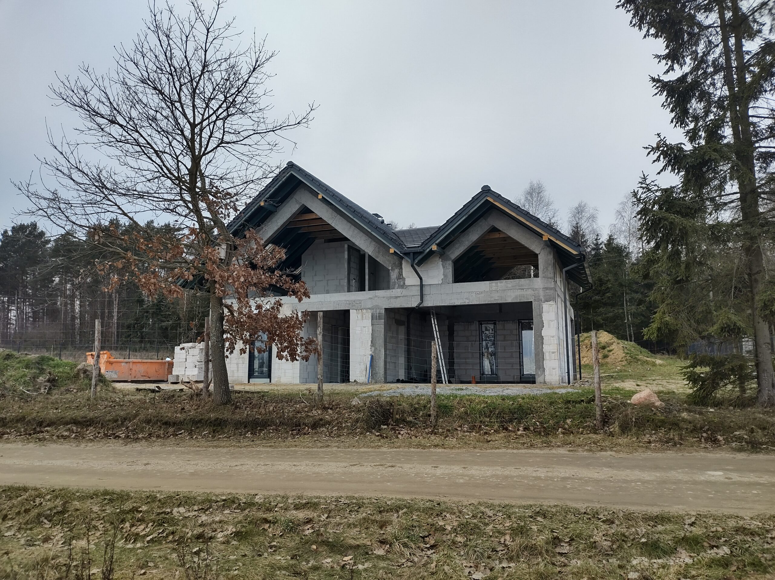 Casă cu o suprafață de 199 m2 construită pe fundații tradiționale, adică pe cureaua de armare și pereții de fundație. Pereții purtători și despărțitori au fost realizați din beton celular cu grosimi de 24 cm și respectiv 12 cm. Structura acoperișului a fost realizată în mod tradițional conform proiectului. Acoperișul clădirii a fost acoperit cu țiglă ceramică plată de culoare antracit angobat.