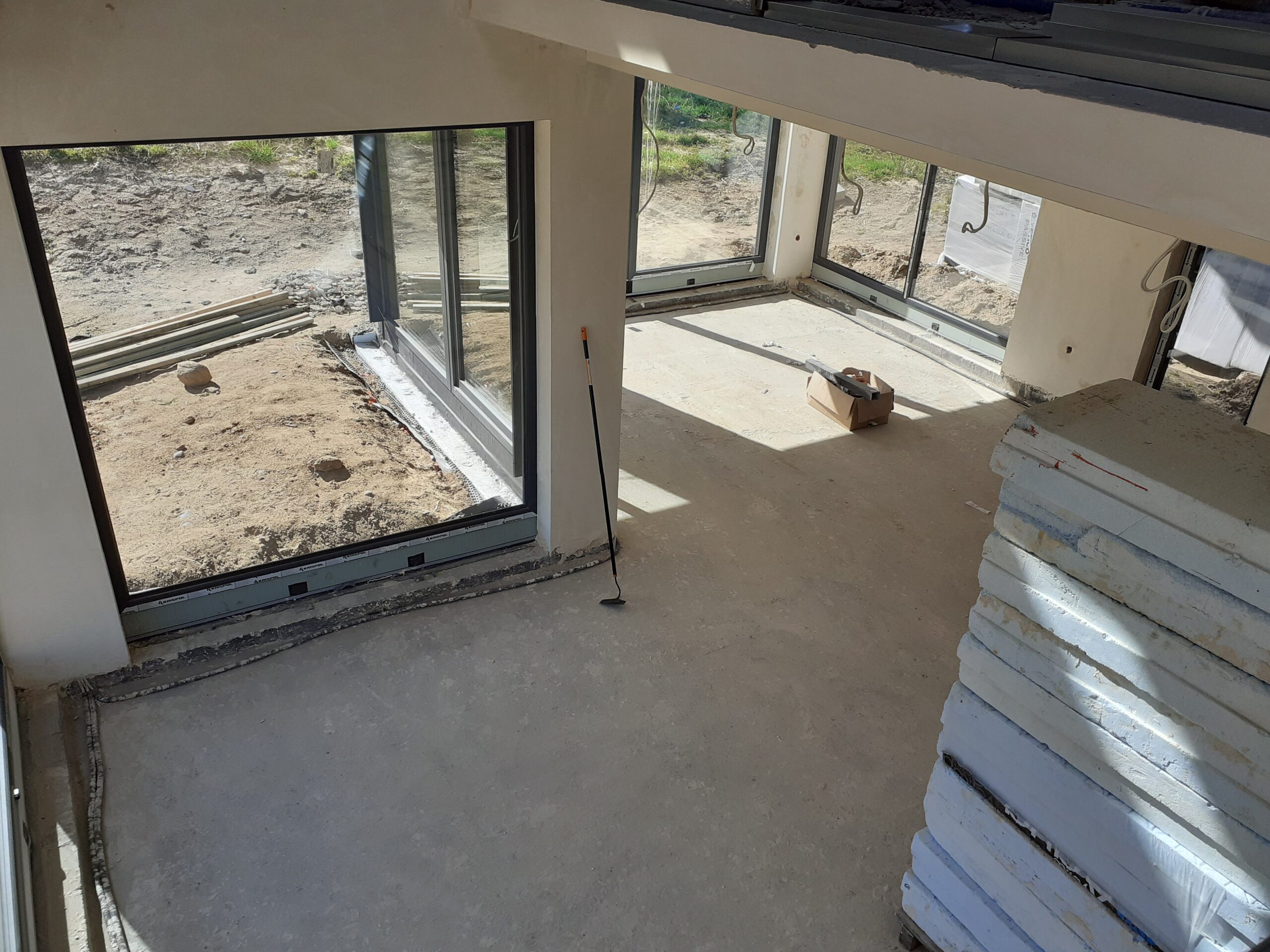 Izolarea podului clădirii a fost realizată cu spumă PUR de 25 cm grosime, iar pereții exteriori – cu polistiren grafitat de 20 cm grosime. Pentru finisarea fațadei clădirii a fost folosit tencuiala siliconică deschisă la culoare și două tipuri de gresie: albă și cu aspect lemnos.