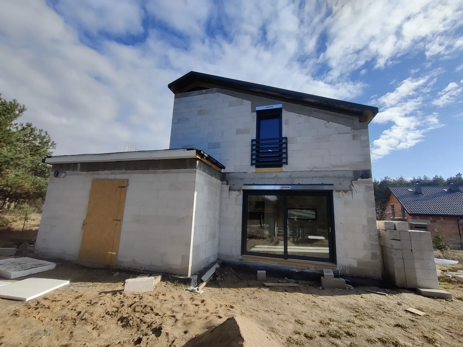 Casa, ridicată pe fundații tradiționale, adică pe benzi armate și ziduri de fundație. Pereții au fost realizați din beton celular și zidărie pe adeziv cu strat subțire de clasa M5. În clădire s-a executat planșeu cu grinzi dense de tip Teriva. Acoperișul clădirii este acoperit cu tablă Click Connection Plus lucioasă. A fost realizat un trecător pentru instalația fotovoltaică. În clădire se găsesc de asemenea scări monolitice din beton armat către etaj.