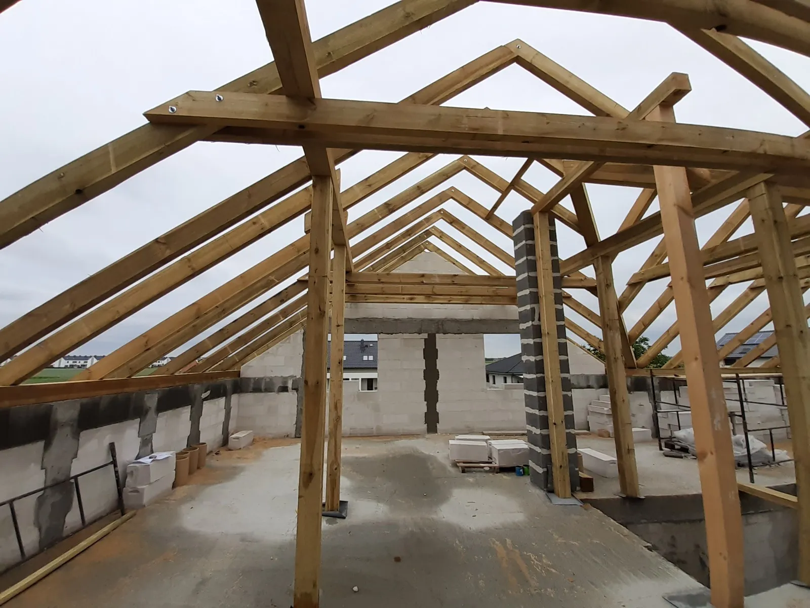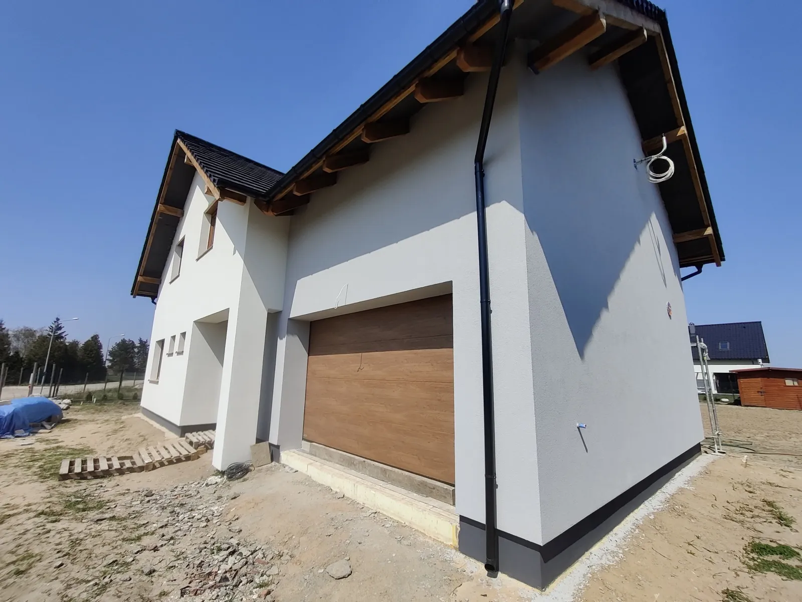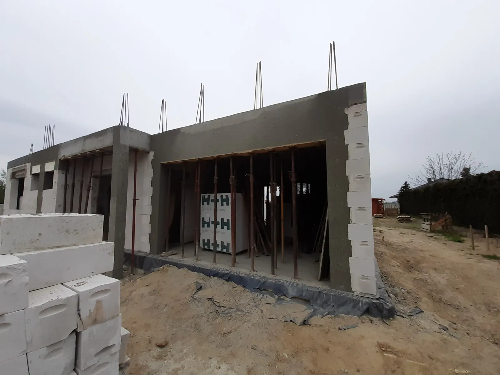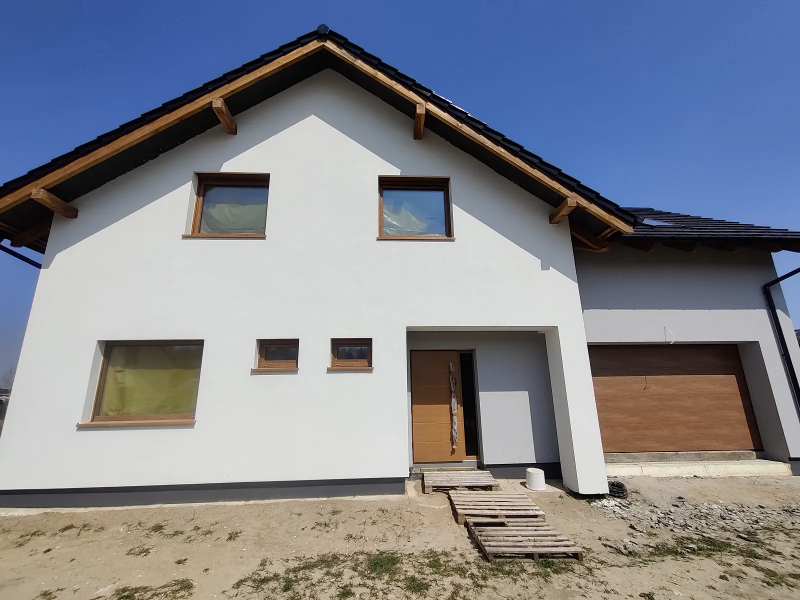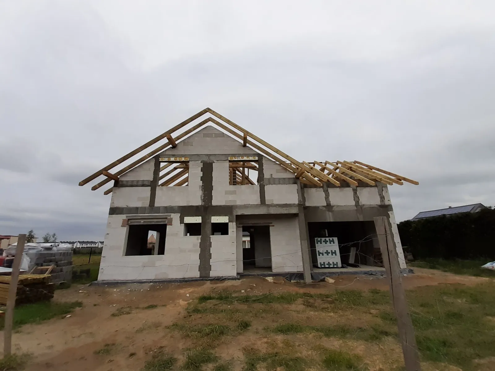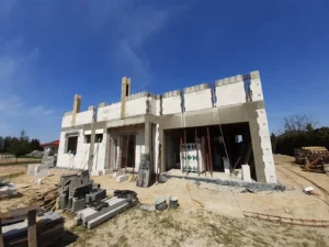 Casa cu o suprafață de 167 m2 construită pe o placă de fundație armată. Atât pereții portanți, cât și cei despărțitori au fost realizați din blocuri de beton celular pe un adeziv cu strat subțire clasa M5. Plafonul este de tip teriva, scările spre etaj sunt din beton armat monolitic. Grinda acoperișului a fost realizată conform proiectului, folosind lemn de conifere impregnat clasa C24. Acoperișul clădirii este acoperit cu țiglă Braas Rubin 9V de culoare antracit.