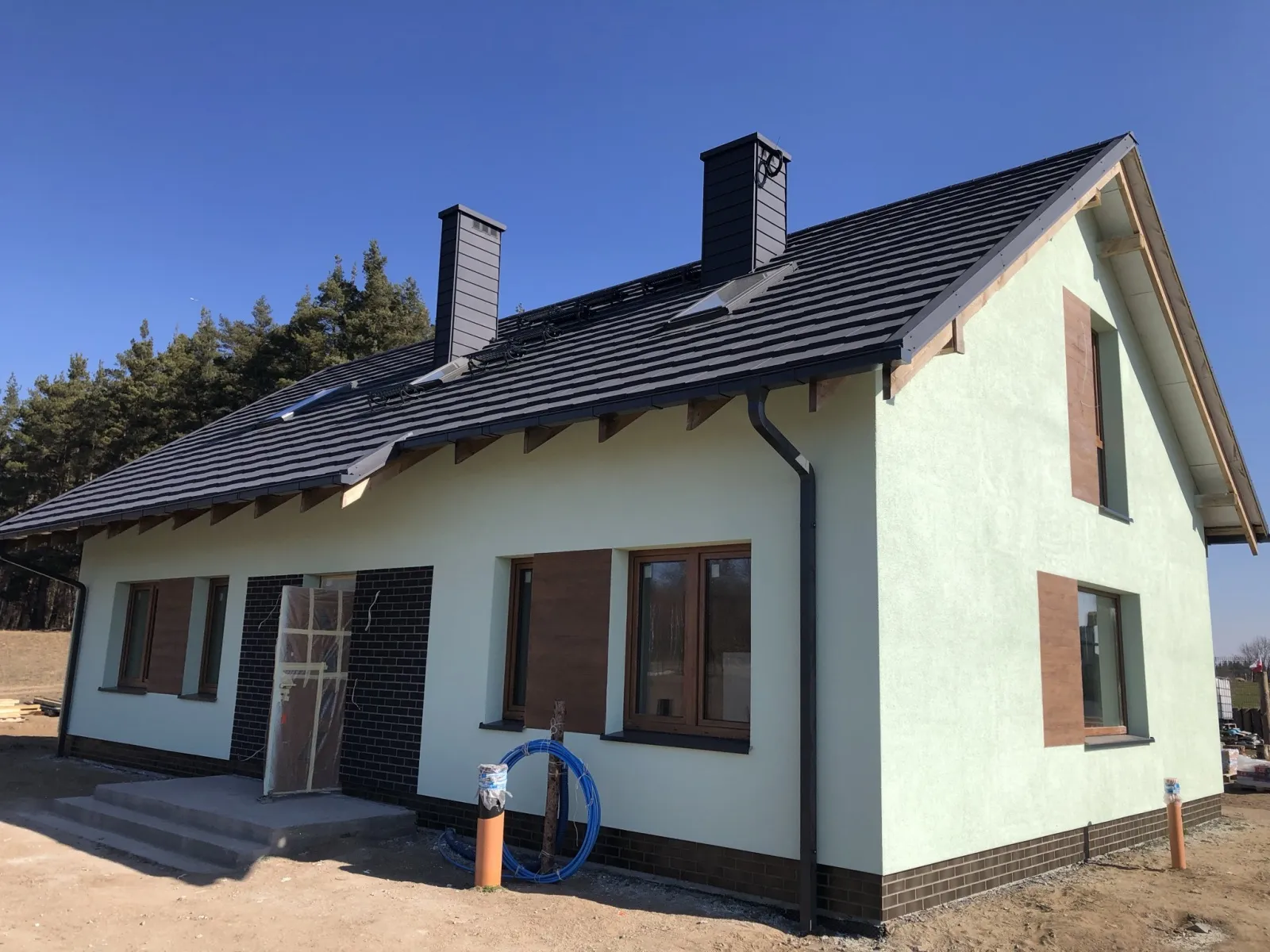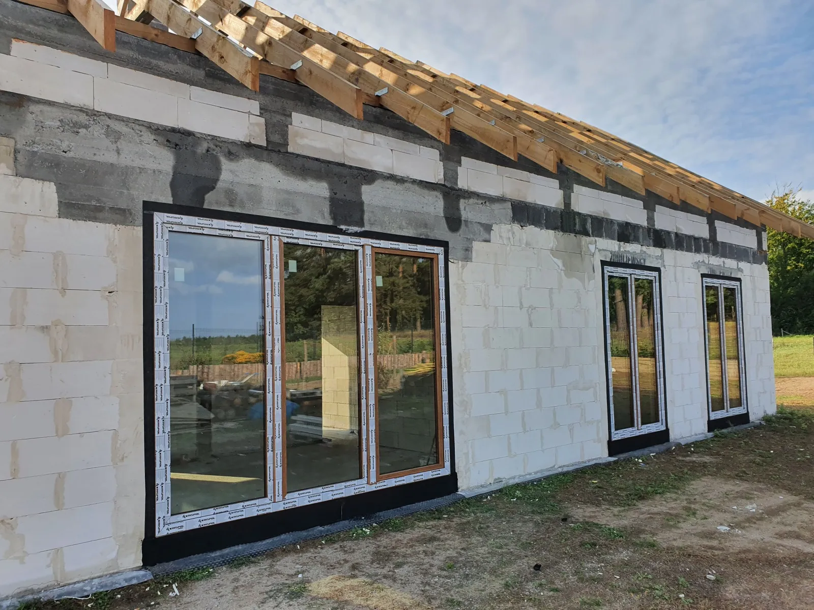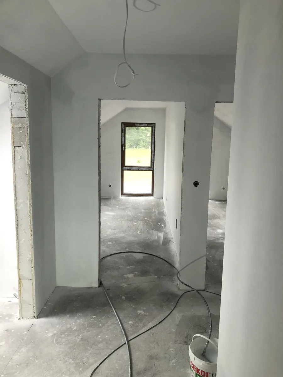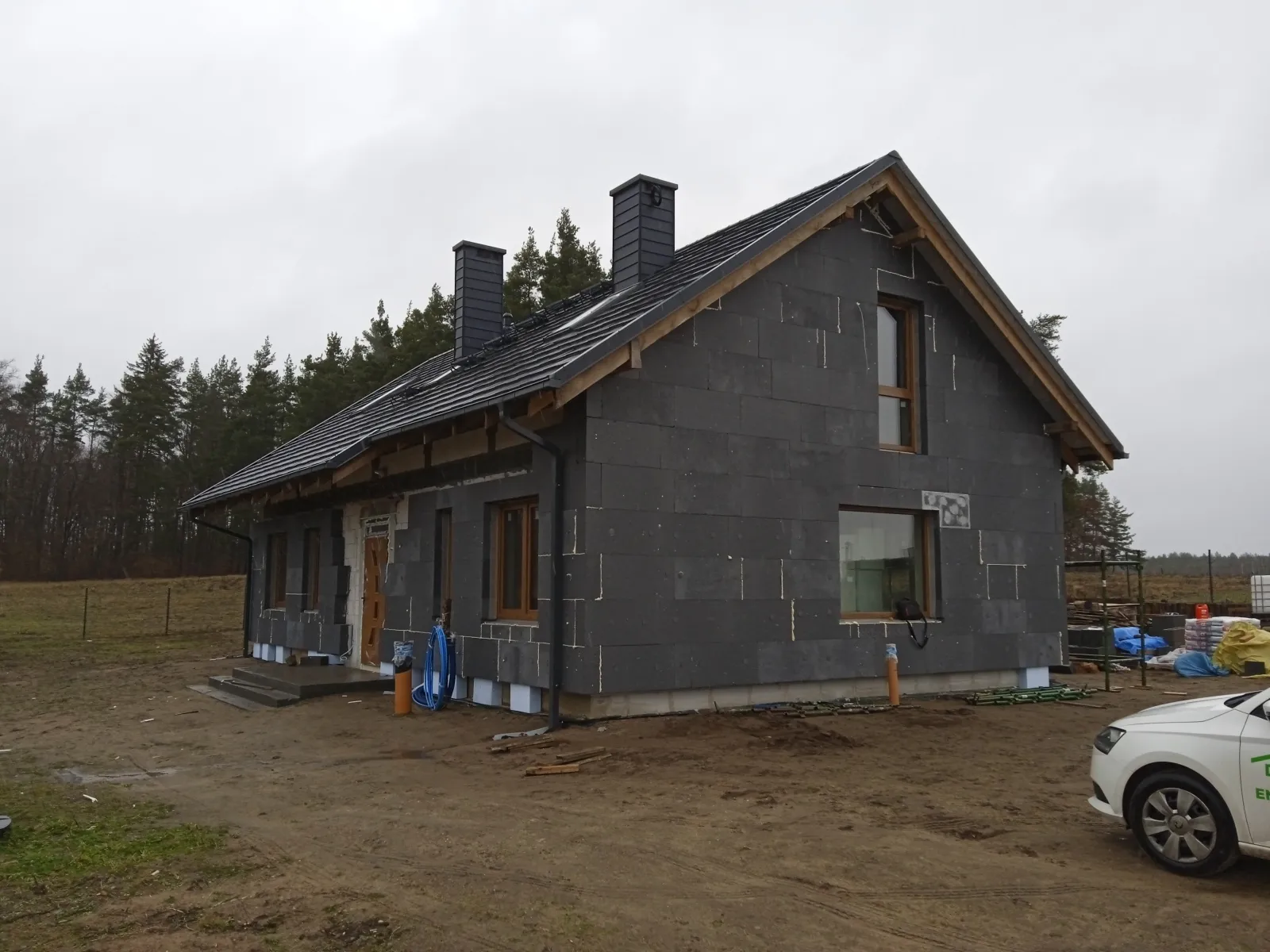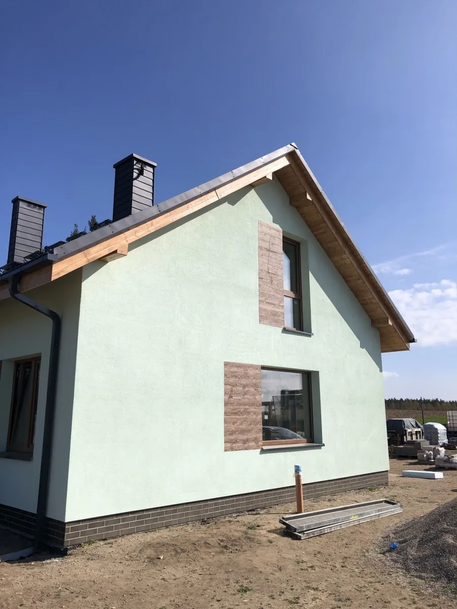 Izolația acoperișului clădirii a fost realizată cu spumă PUR de 22-24 cm grosime, iar izolația pereților exteriori – cu polistiren grafitat de 20 cm grosime. Pentru finisajul fațadei clădirii s-a folosit tencuială siliconică de culoare albă.