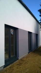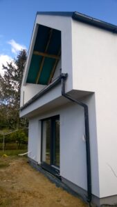 Izolația podului clădirii a fost realizată cu spumă PUR cu grosimea de 25 cm, iar pereții exteriori – cu polistiren grafitat cu grosimea de 20 cm. Pentru finisarea fațadei clădirii s-a folosit tencuială siliconică deschisă la culoare.