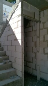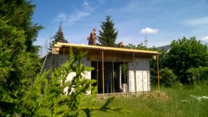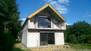 Aici a fost situată o casă cu o suprafață de 140m2 ridicată pe fundații tradiționale, adică pervazuri armate și ziduri de fundație. Pereții de susținere și cei despărțitori au fost realizați din beton celular cu o grosime de 24 cm respectiv 12 cm. Structura acoperișului a fost realizată în mod tradițional conform proiectului. Acoperișul clădirii a fost acoperit cu țiglă betonată plată.