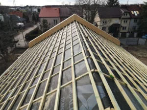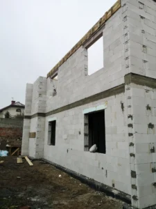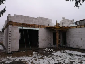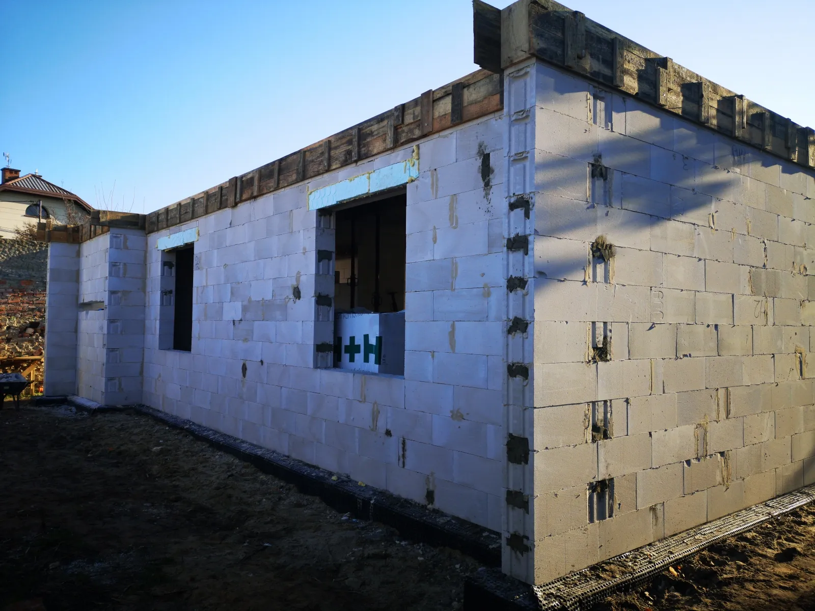 Casă cu o suprafață de 142 m2 construită pe fundații tradiționale, adică pe grinzi armate și cu pereți de fundație izolați. De asemenea, a fost realizată hidroizolația verticală a pereților de fundație. Pereții de susținere și cei despărțitori au fost realizați din beton celular, în timp ce structura acoperișului a fost realizată în mod tradițional, din lemn de conifere impregnat. Acoperișul clădirii a fost acoperit cu tablă tip țiglă Budmat Sara 350.