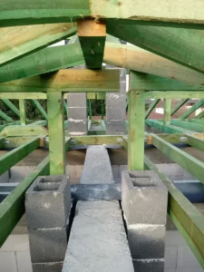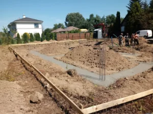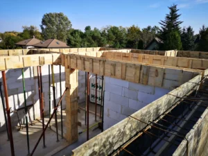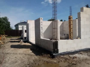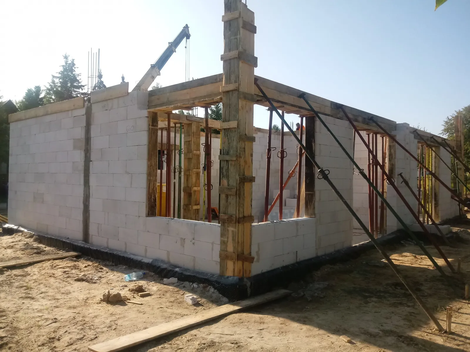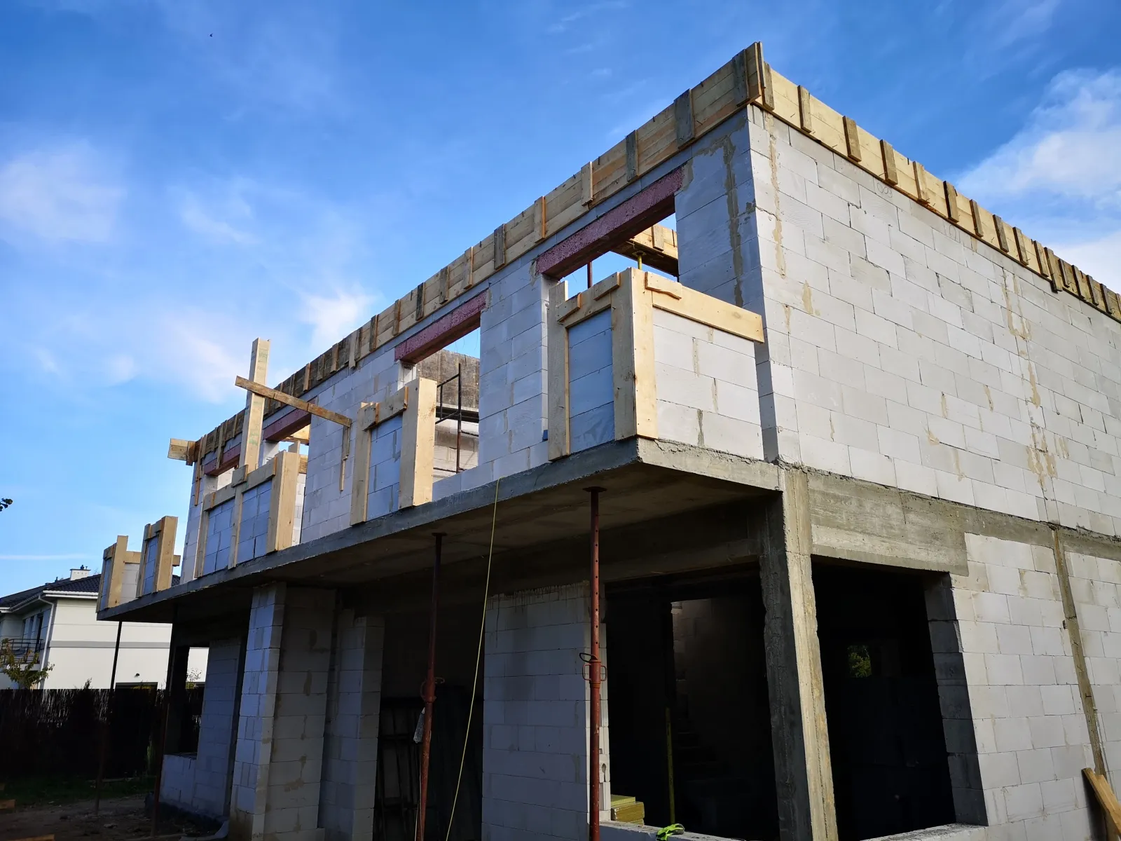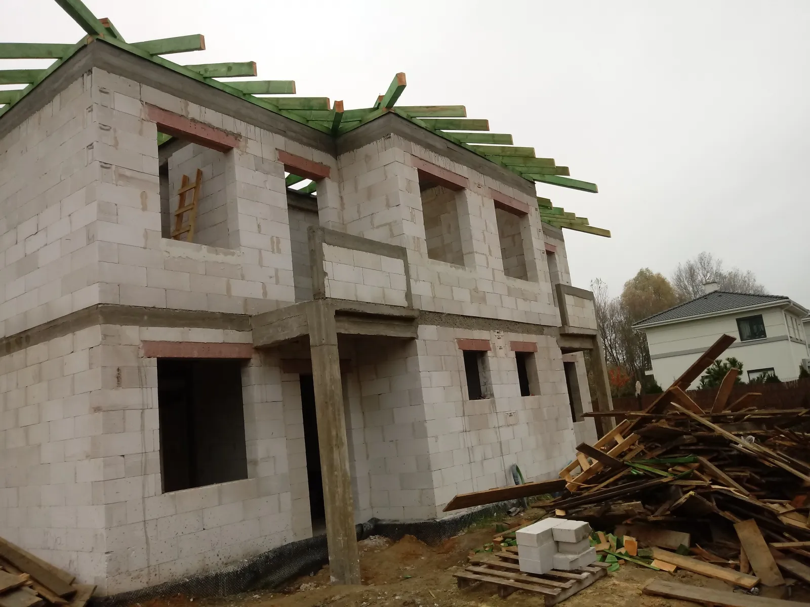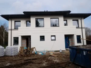 Casa, ridicată pe fundații tradiționale, adică pe benzi armate și ziduri de fundație. Pereții au fost realizați din blocuri de beton celular. Construcția tavanului de deasupra parterului a fost realizată din tavan Teriva Panel. Acoperișul clădirii a fost acoperit cu tabla tip Pruszyński de culoare antracit.