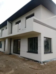 În cadrul montajului termic al tâmplăriei ferestrelor a fost instalat un sistem de ferestre eficiente din punct de vedere energetic cu profile cu 5 camere și o adâncime de 70 mm. În clădire s-au realizat instalațiile electrice, sanitare, o instalație completă de încălzire pe gaz cu apă caldă menajeră (CWU) cu o capacitate de 120 l. Izolația acoperișului clădirii a fost realizată cu spumă PUR de 22 cm grosime, iar pereții exteriori – cu polistiren alb de 15 cm grosime. Pentru finisarea fațadei clădirii s-a folosit tencuială acrilică.