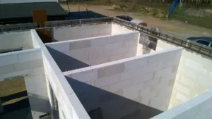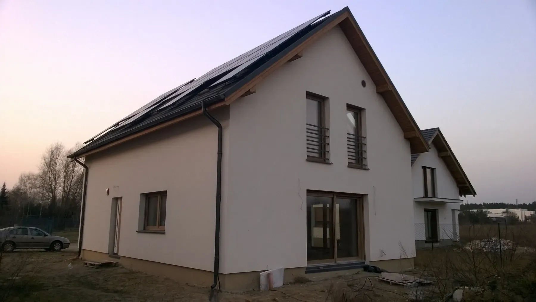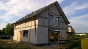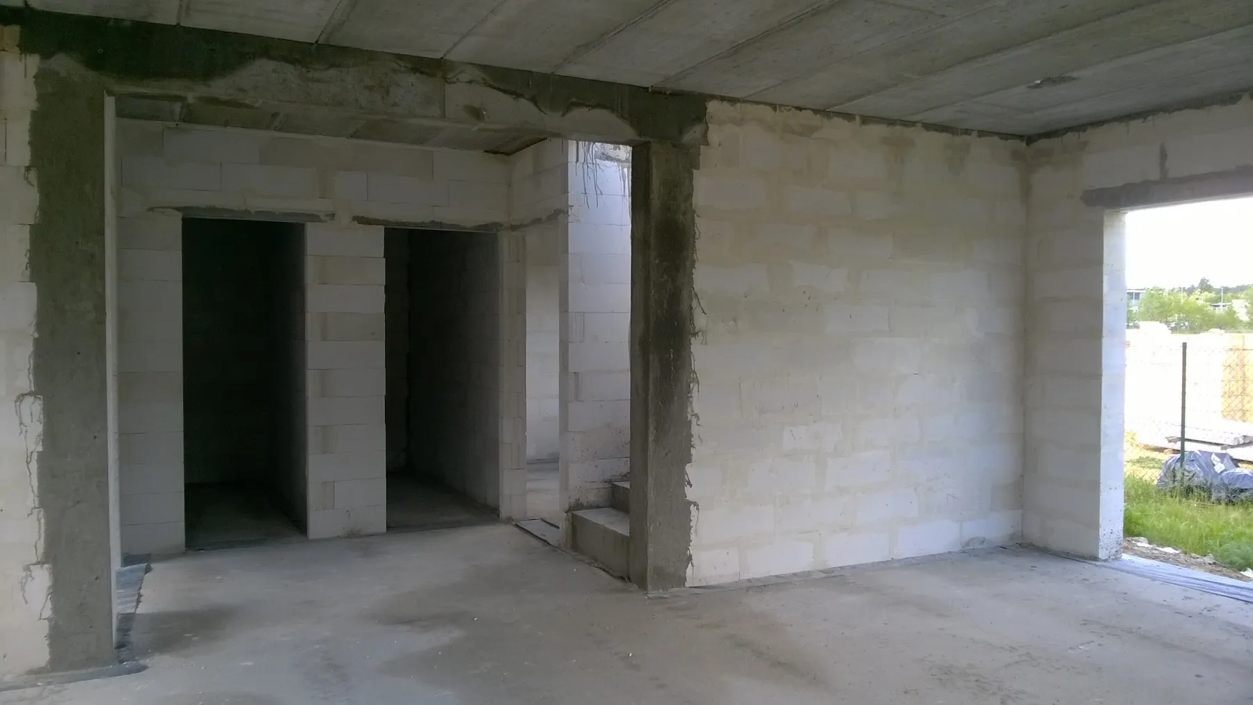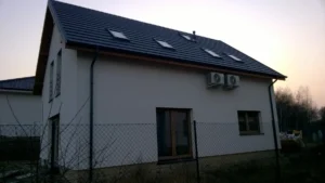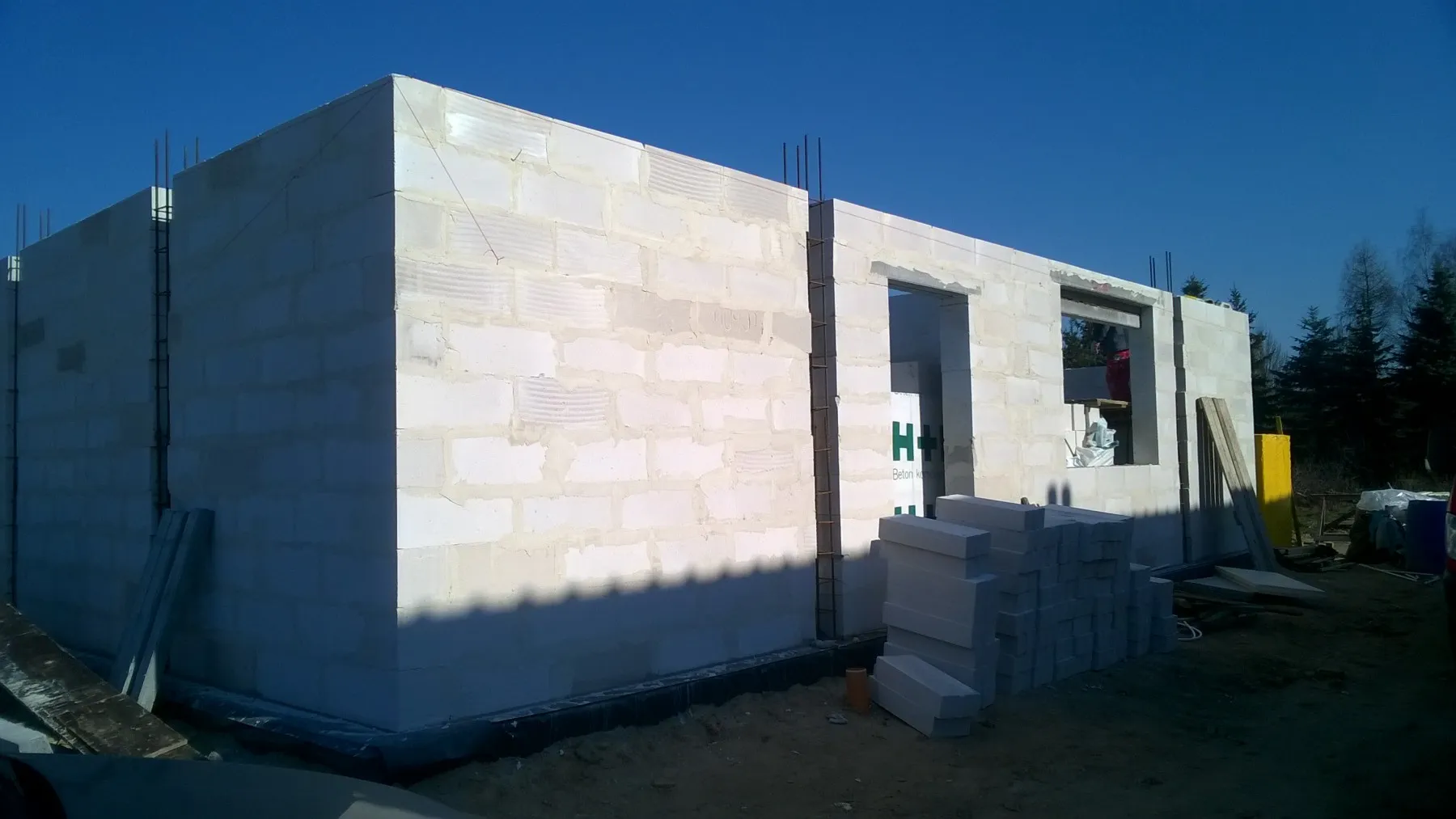 Casă cu o suprafață de aproape 140 m2 ridicată pe o placă de fundație armate cu izolație termică eficientă de 15 cm de styrodur XPS 300. Pereții de rezistență au fost realizați din beton celular, în timp ce pereții despărțitori au fost realizați din beton celular și silicat. Acoperișul a fost realizat ca o construcție tradițională din lemn de conifere, acoperit cu tablă fălțuită plată Novatik Premium. Planșeul a fost realizat din panouri prefabricate conform proiectului. A fost realizată și construcția scărilor monolit din beton armat.
