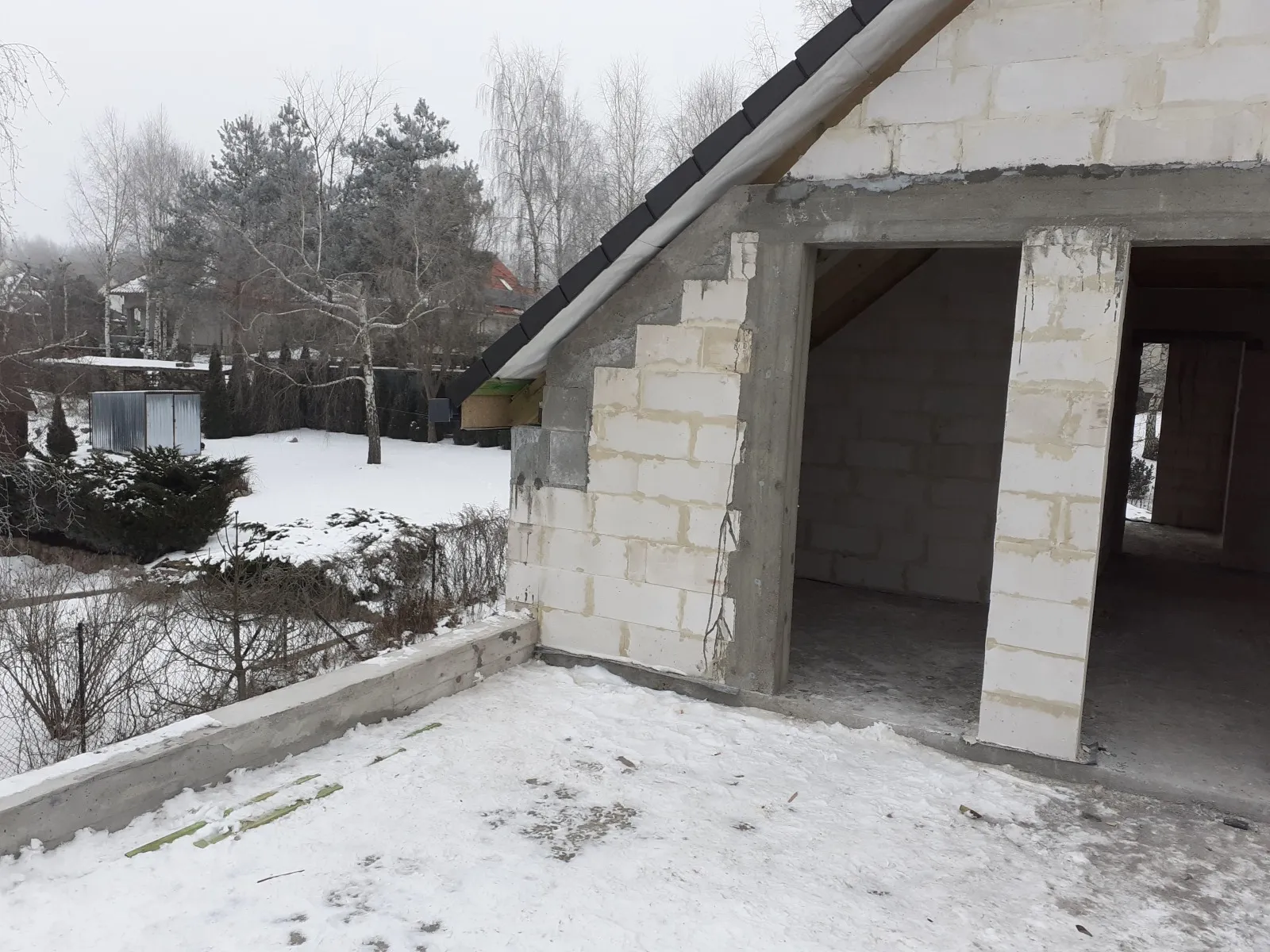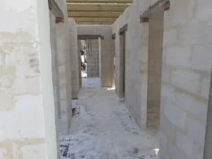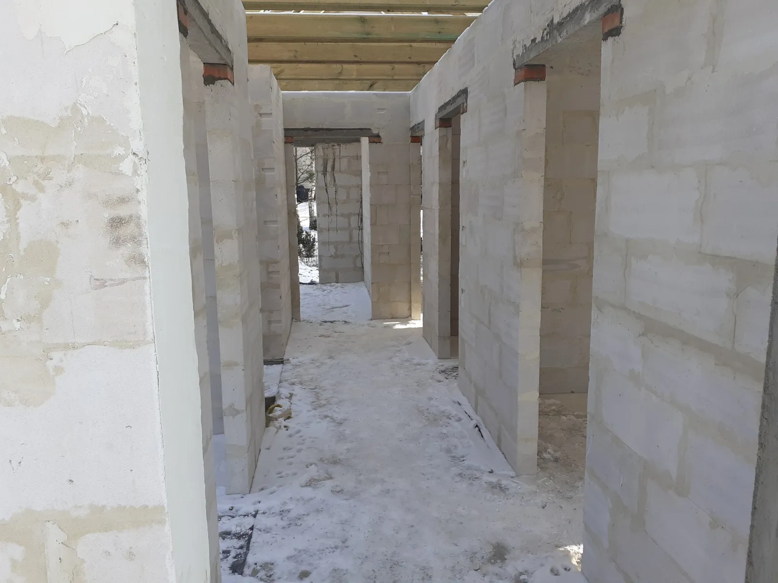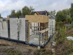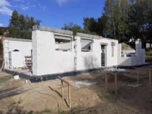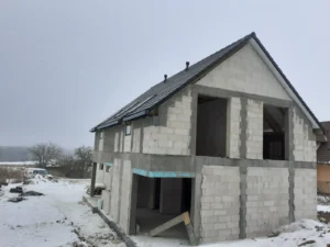 Casă cu suprafața de 157 m2 ridicată pe o placă de fundație armata și umplută cu beton C20/25 cu grosimea de 30 cm. Atât pereții de susținere, cât și pereții despărțitori au fost realizați din beton celular cu grosimile corespunzătoare de 24 și 12 cm. S-a folosit plafoane tip Teriva Panel. Structura din lemn a acoperișului a fost realizată din lemn de conifer impregnat. Acoperișul clădirii a fost acoperit cu țiglă betonată Braas Teviva de culoare grafit.