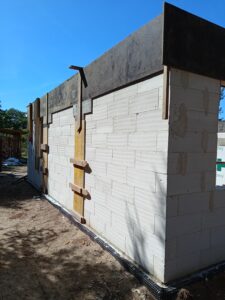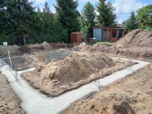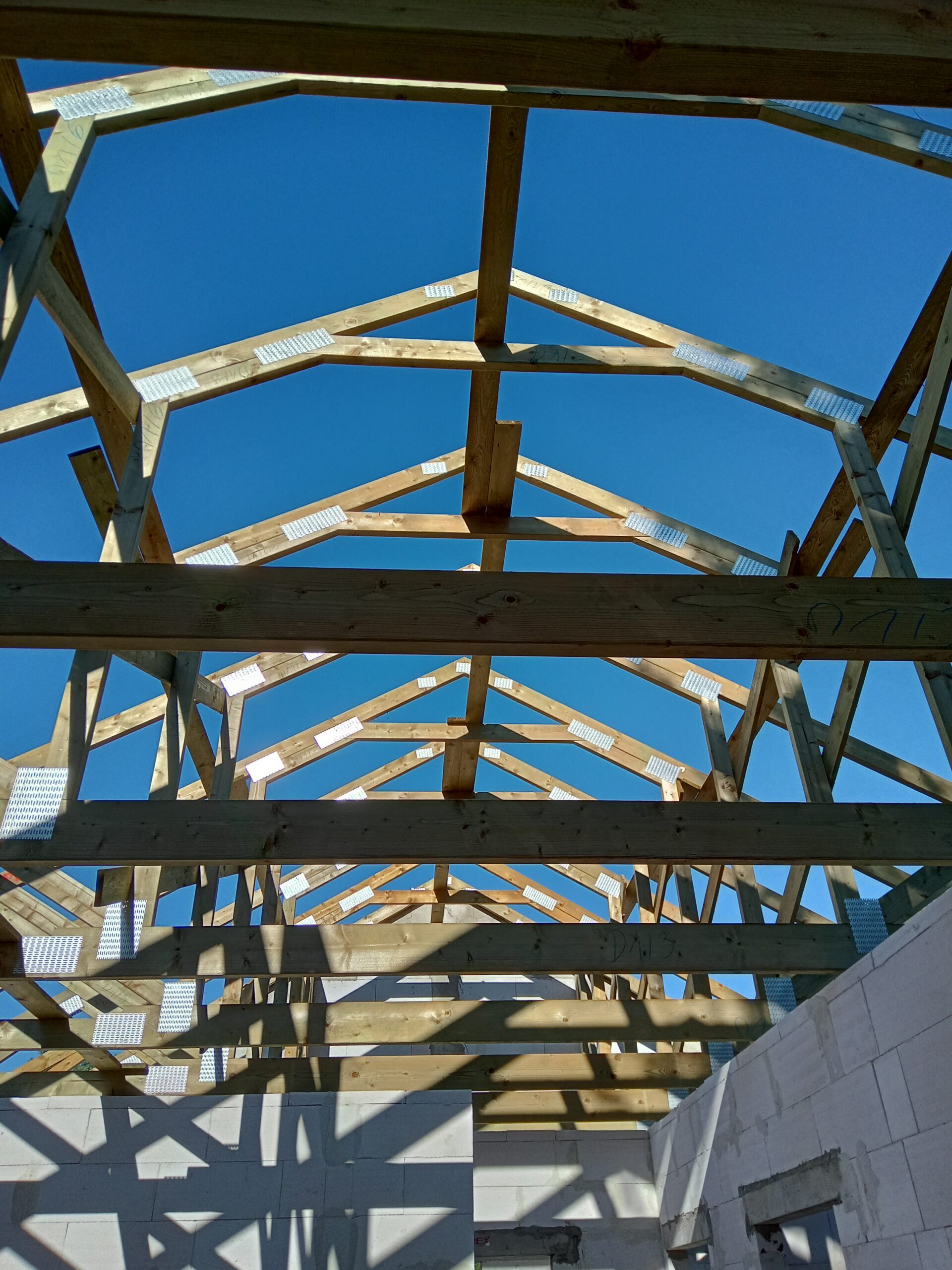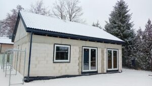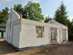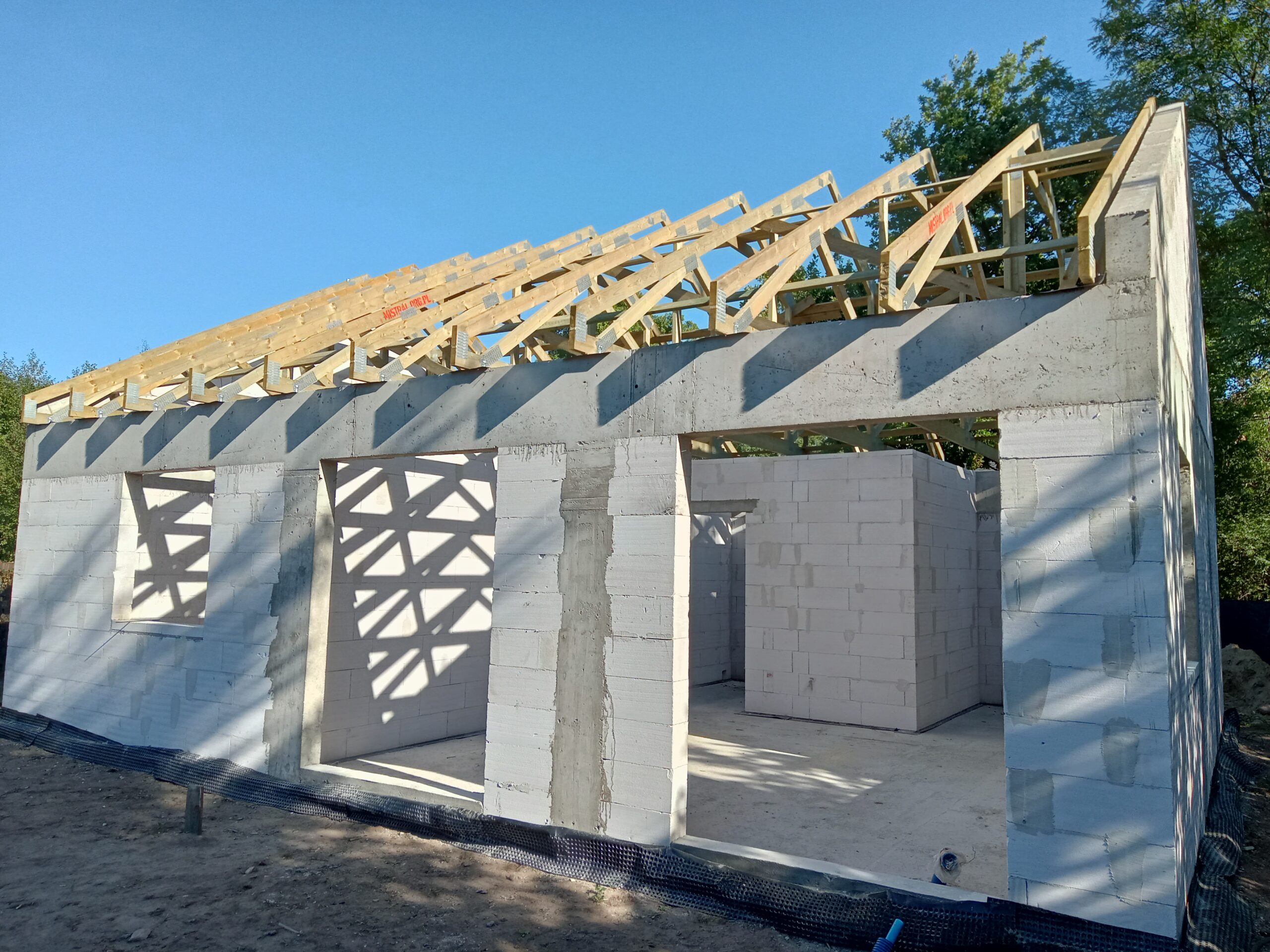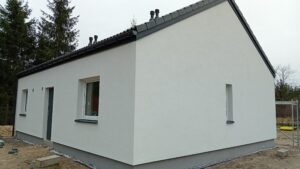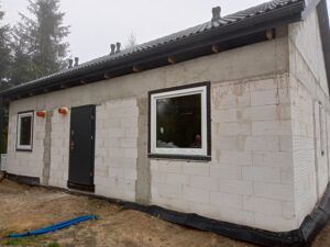 Casă cu o suprafață de 73 m2 ridicată pe fundații tradiționale, adică benzi de armare și pereți de fundație izolați. Pereții portanți și despărțitori au fost realizați din beton celular, în timp ce structura acoperișului a fost realizată din ferme prefabricate din lemn șlefuit pe patru părți. Acoperișul clădirii este acoperit cu țiglă beton ondulată de culoare grafit.