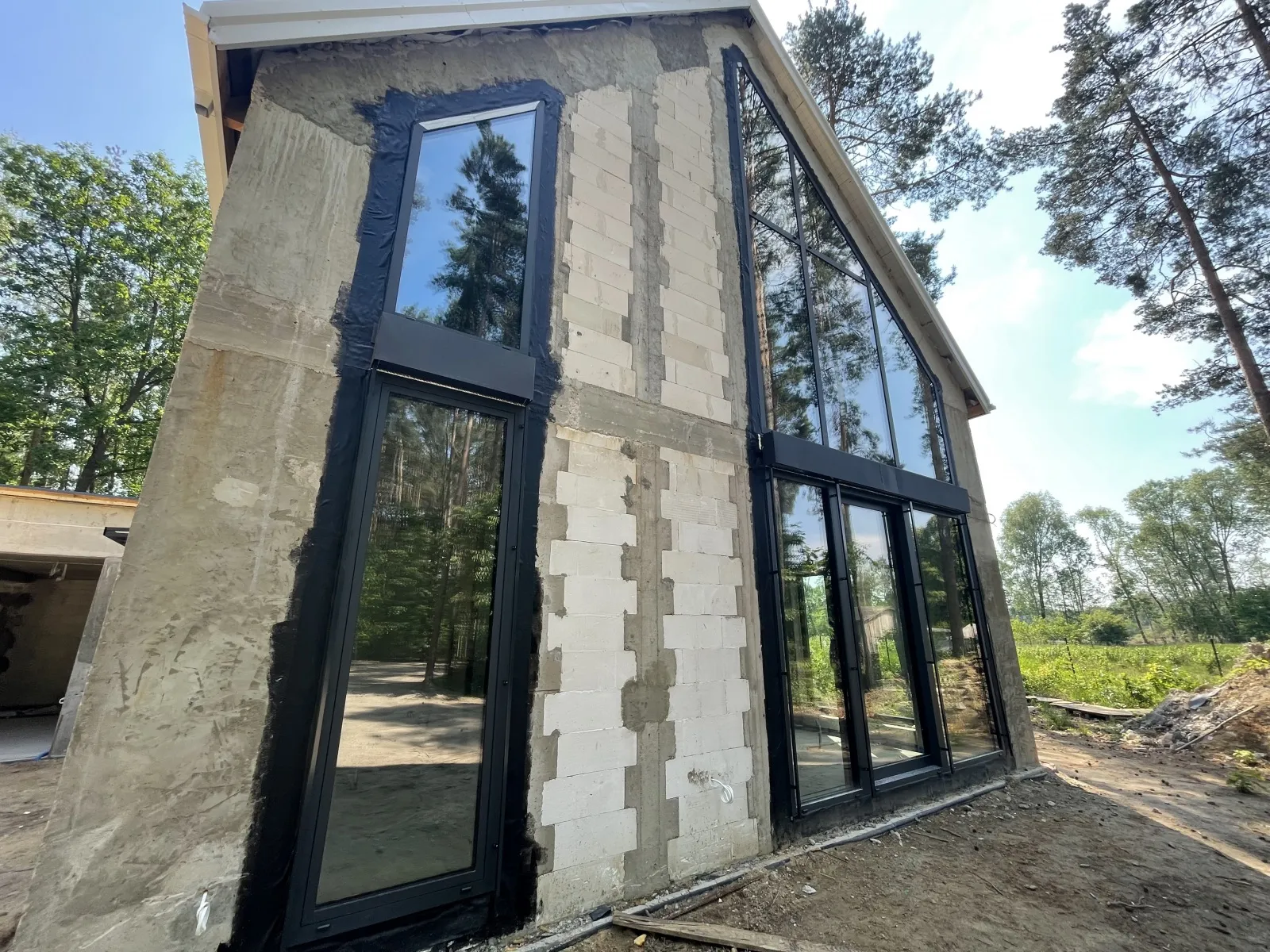 Casă cu o suprafață de 192 m2 construită pe fundații tradiționale, adică benzi armate și pereți fundaționali izolați. Pereții portant și despărțitori au fost realizați din blocuri de silicat, iar plafonul este un plafon cu grinzi dense, monolit conform proiectului. Structura acoperișului a fost realizată tradițional din lemn de conifere impregnat. Acoperișul clădirii a fost acoperit cu tablă cu jgheab dublu Pruszyński.