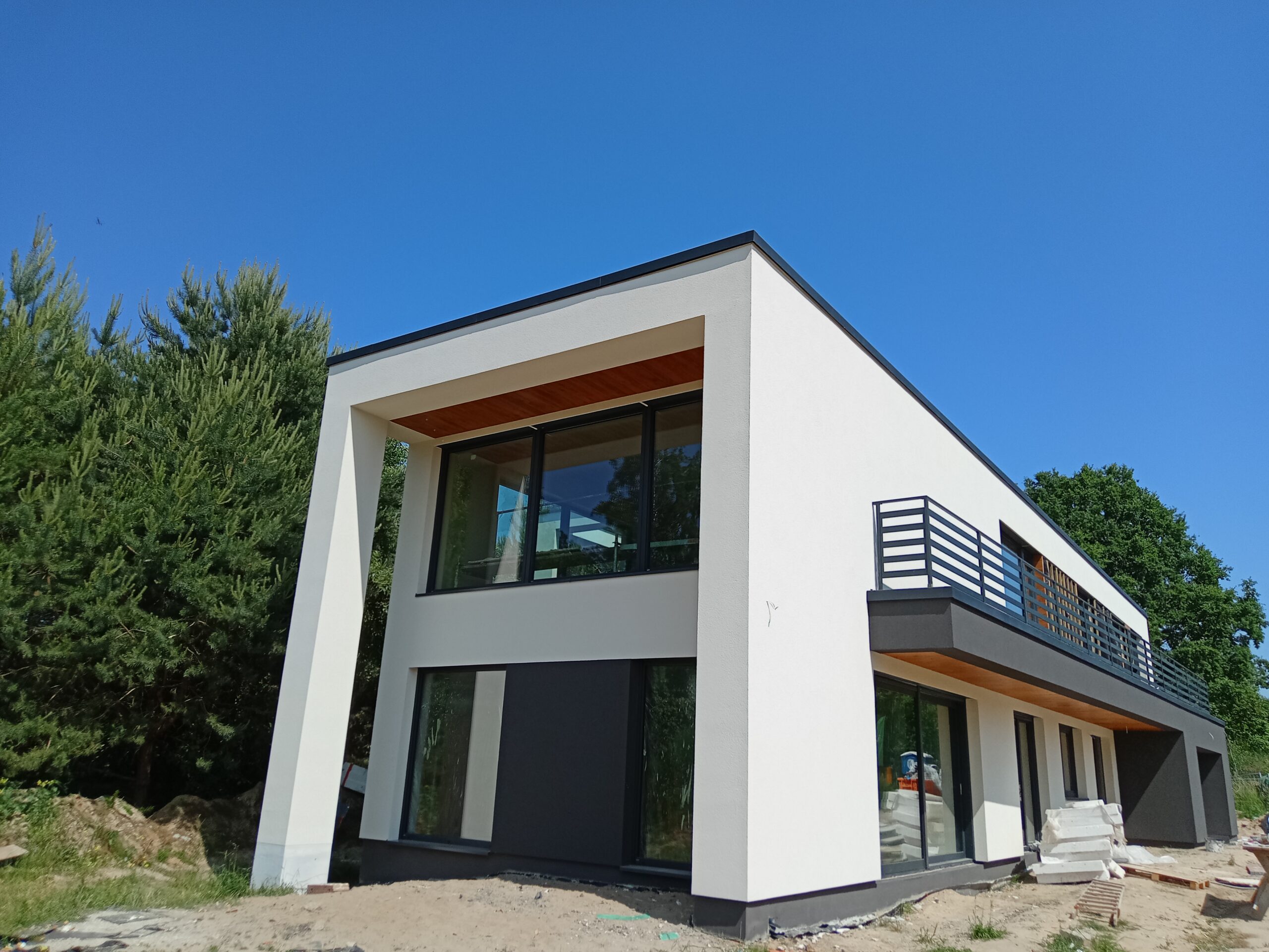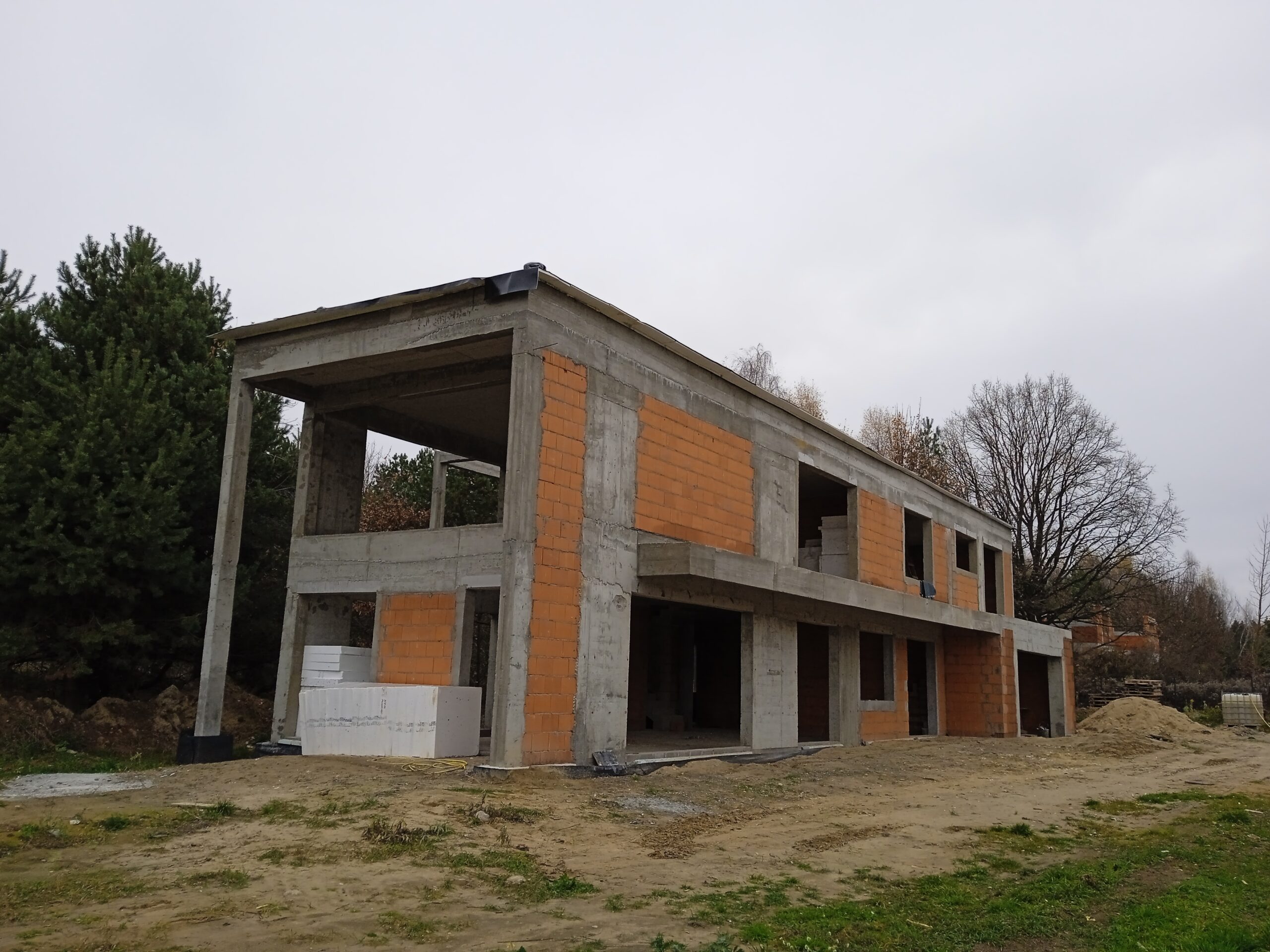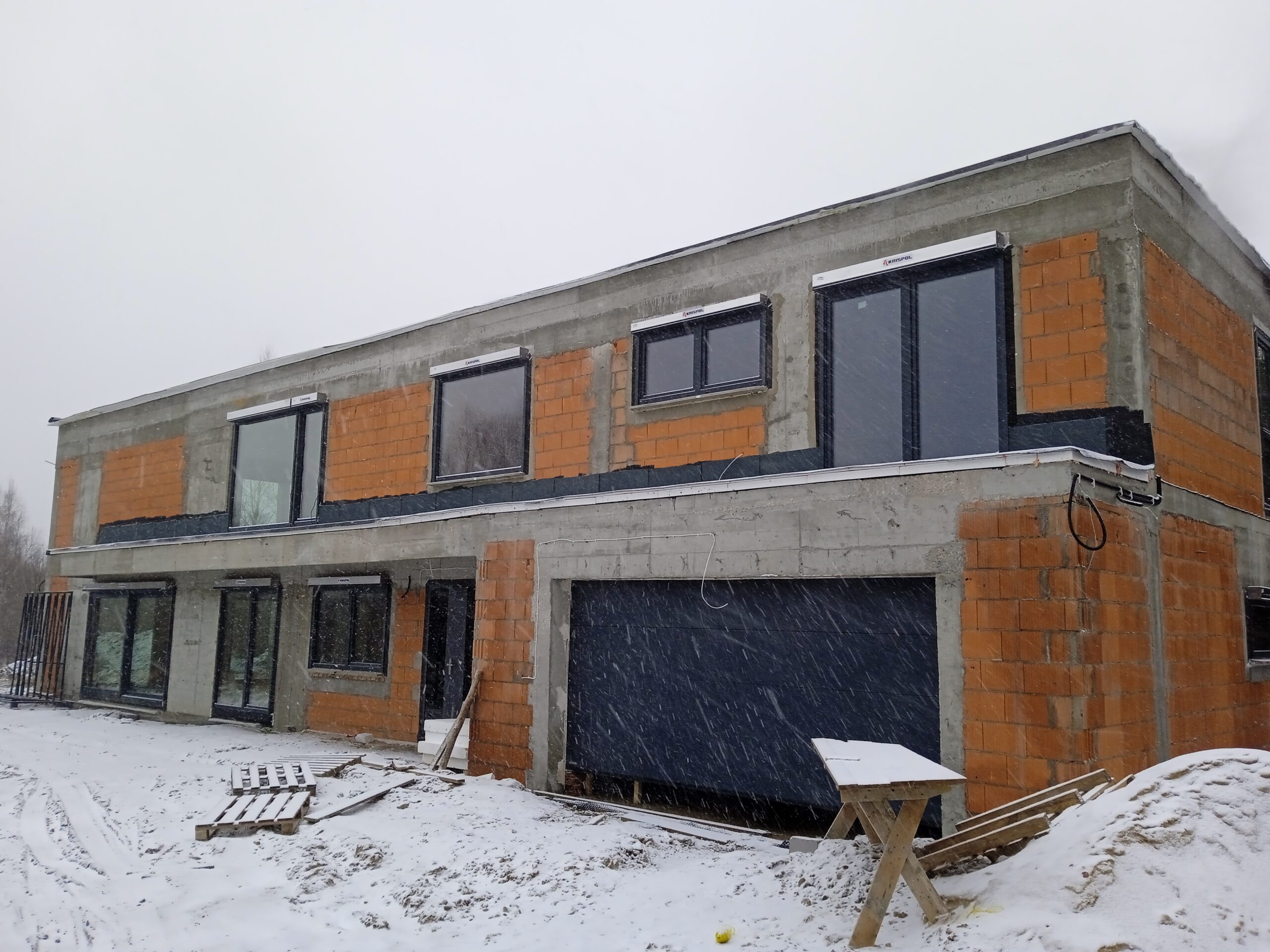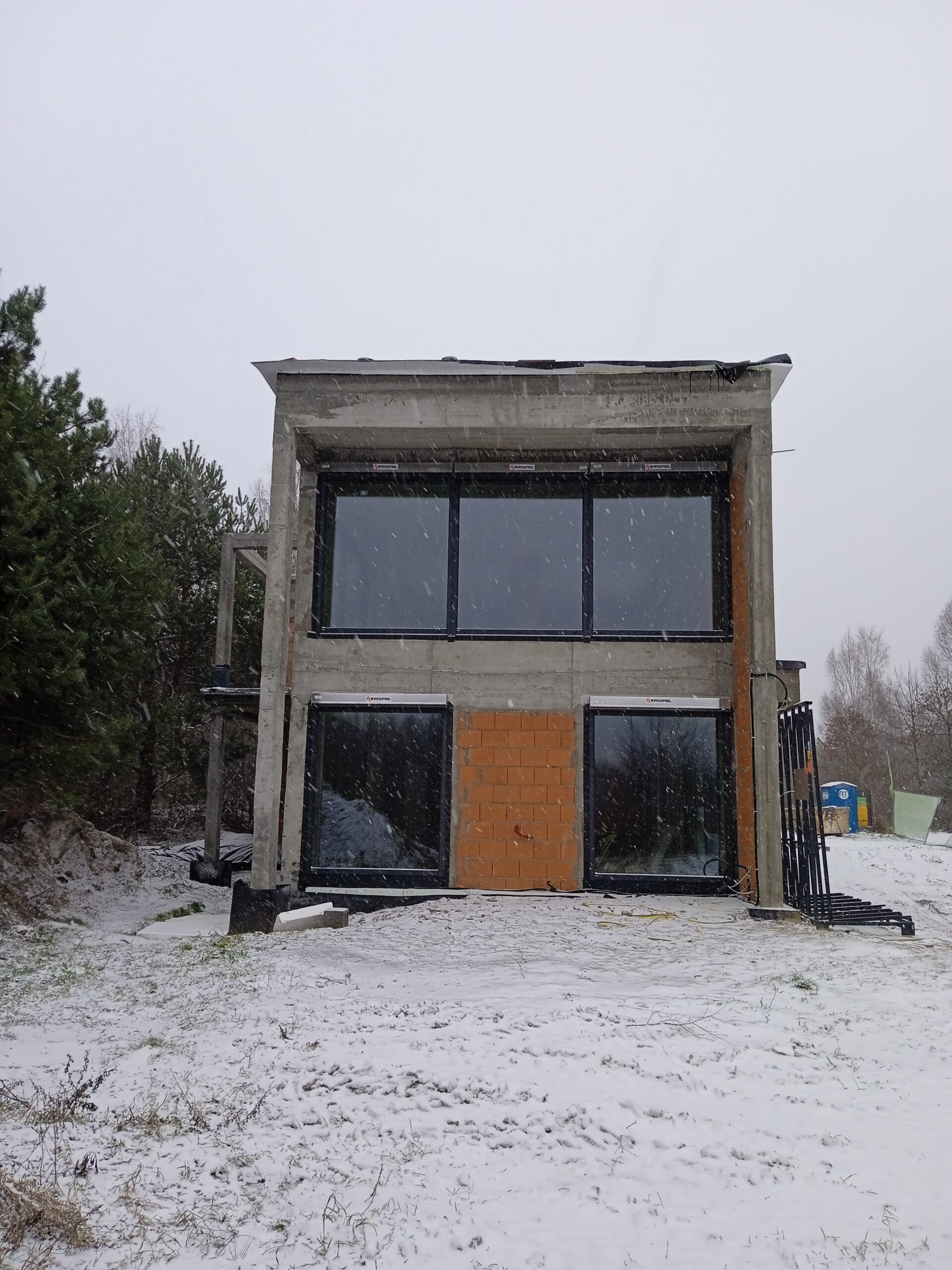 Casă cu o suprafață de 329 m2 ridicată pe fundații tradiționale, adică benzi armate și pereți de fundație, cu izolație din polistiren Aqua cu grosimea de 15 cm. Pereții au fost realizați din blocuri ceramice, iar plafonul este monolitic din beton armat. Acoperiș plat.