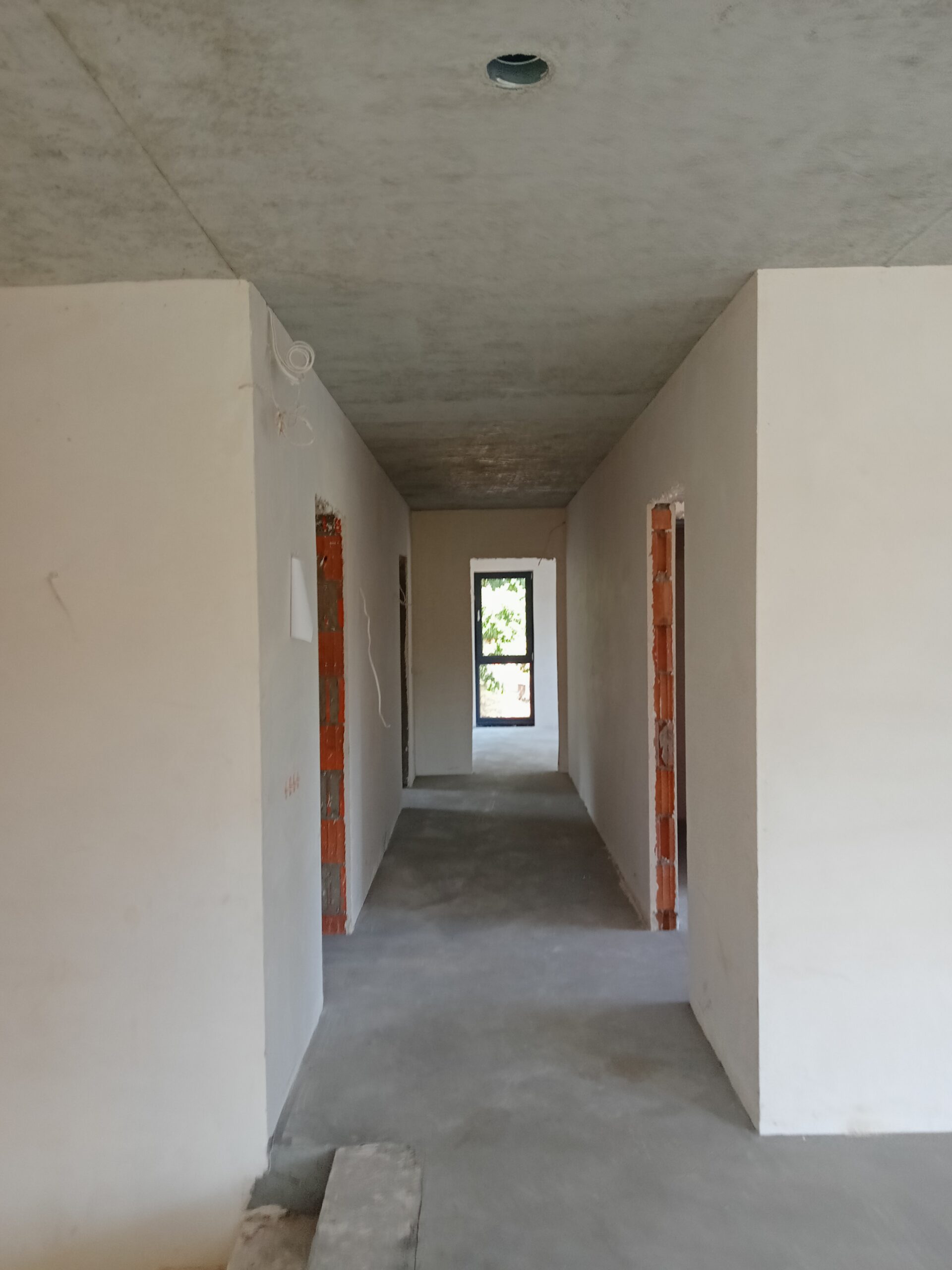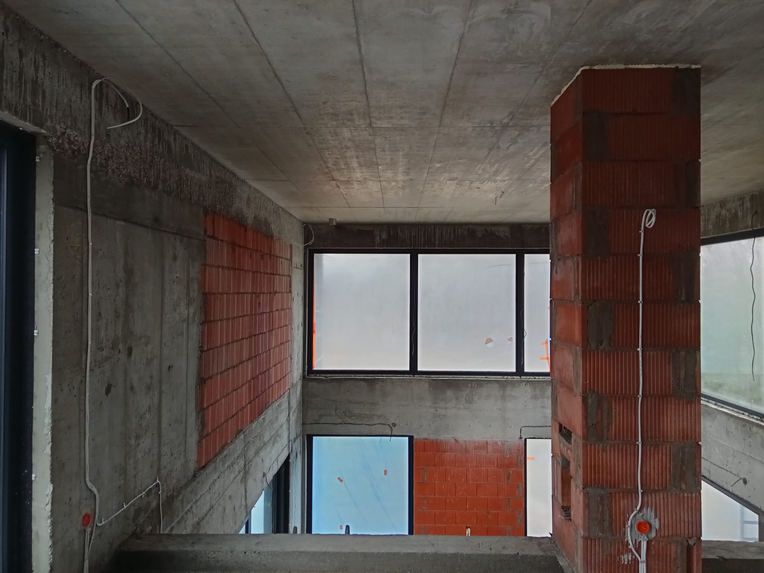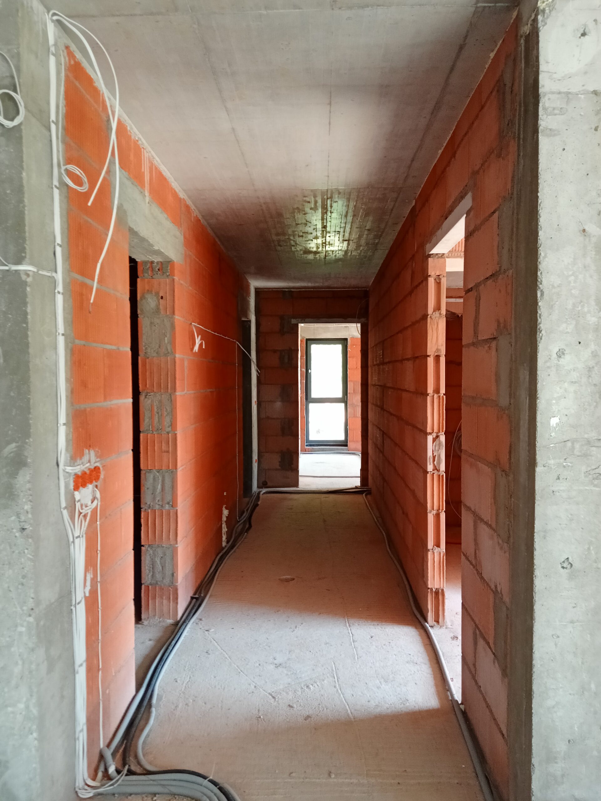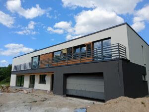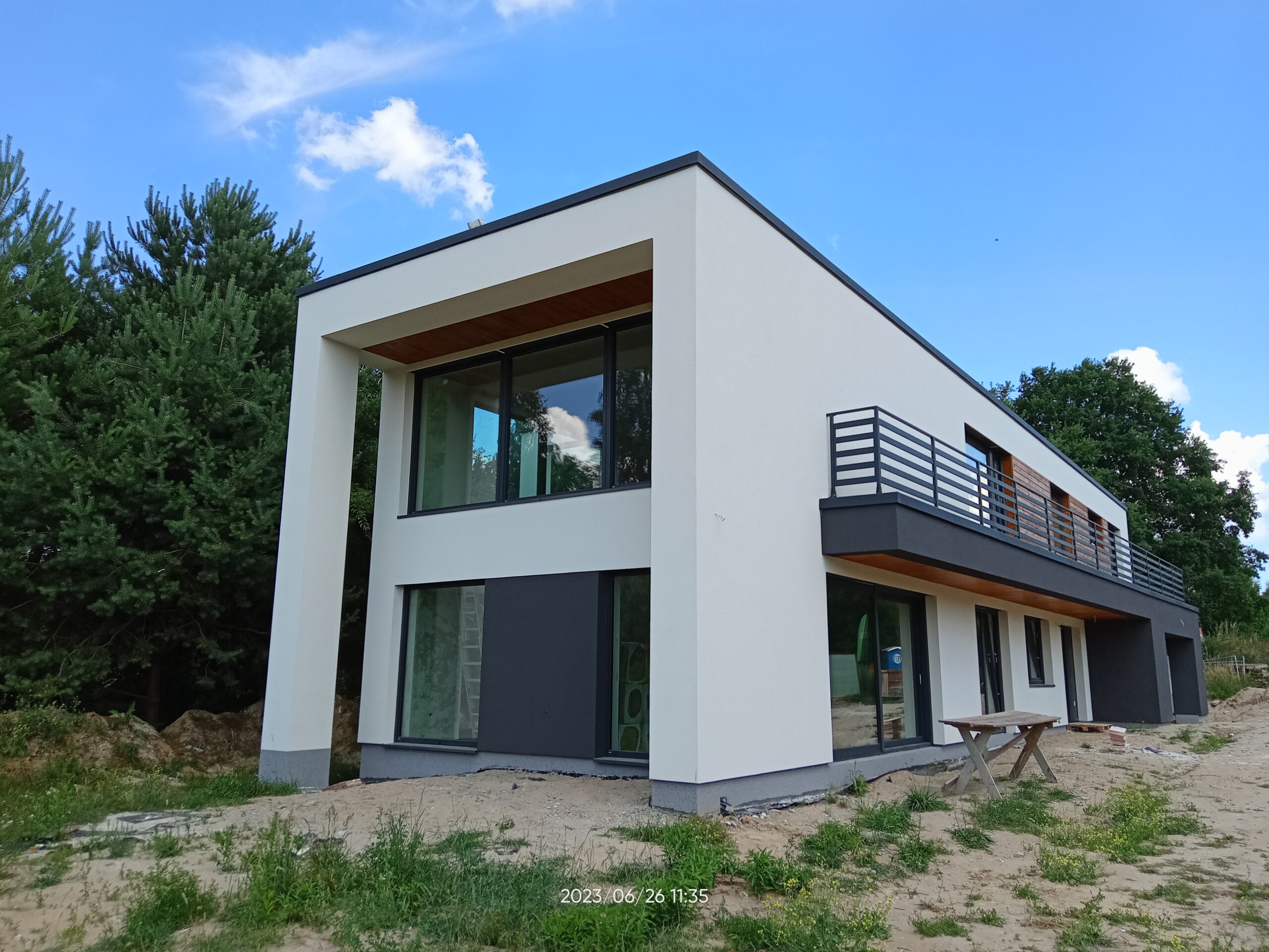 Casă cu o suprafață de 329 m2 ridicată pe fundații tradiționale, adică benzi armate și pereți de fundație, cu izolație din polistiren Aqua cu grosimea de 15 cm. Pereții au fost realizați din blocuri ceramice, iar plafonul este monolitic din beton armat. Acoperiș plat.