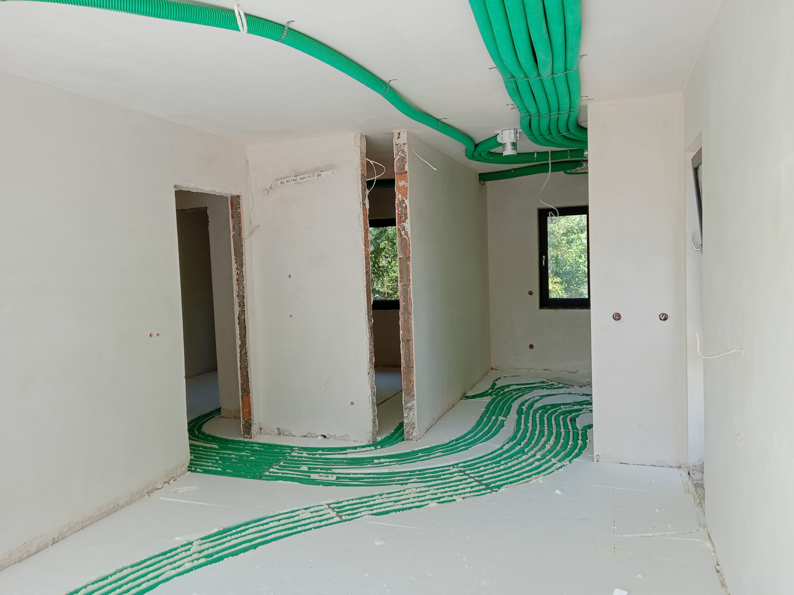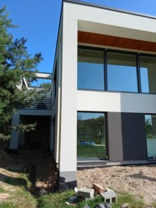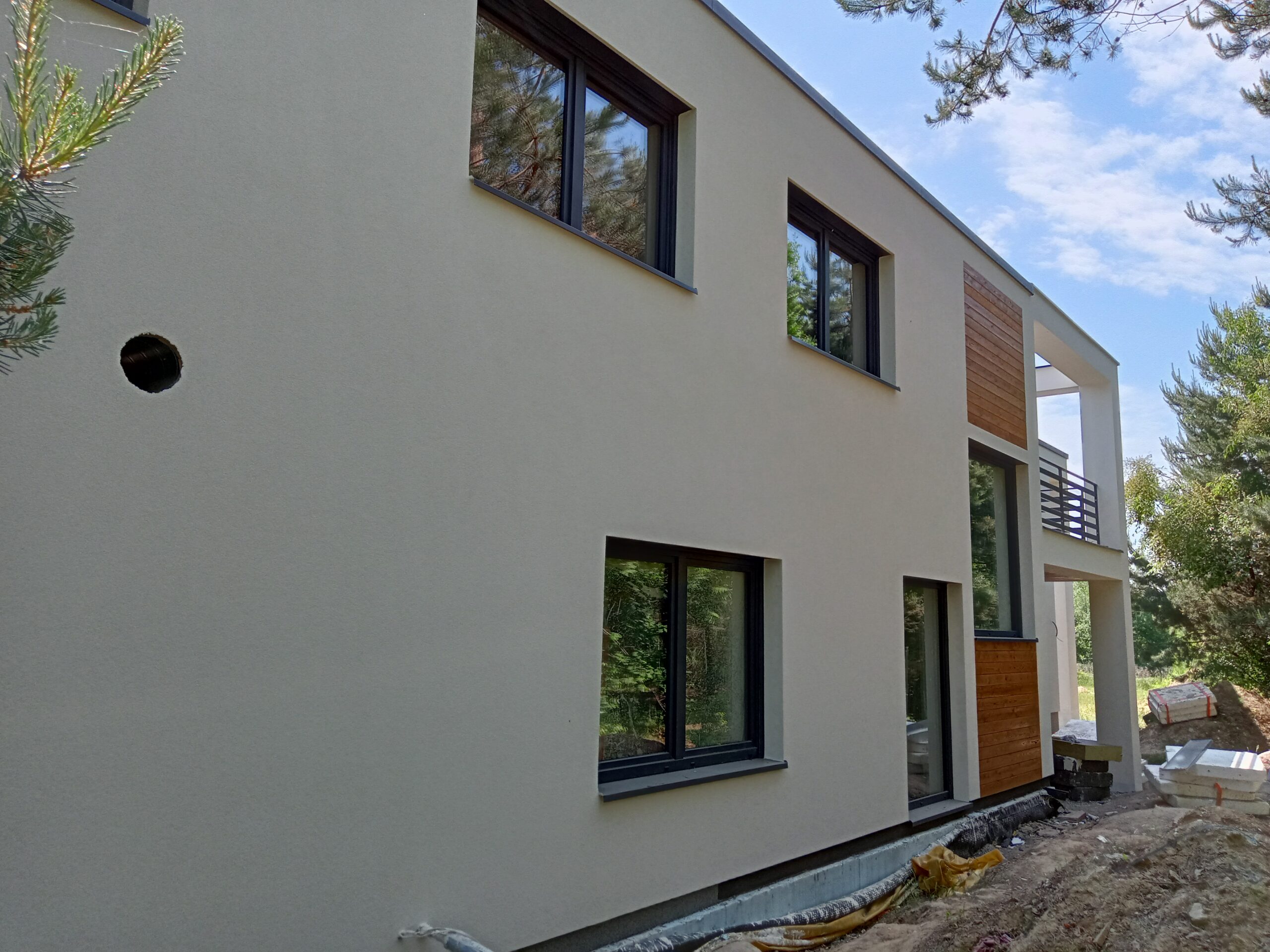 În cadrul montajului termic al tâmplăriei ferestrelor a fost instalat un sistem de ferestre eficiente energetic cu profile cu 6 camere și adâncimea de 82 mm, împreună cu montaj etanș. În plus, ferestrele au fost echipate cu rulouri electrice. În clădire au fost realizate instalațiile electrice, tehnice, de apă și canalizare, instalația de recuperare a căldurii, precum și instalația completă pentru pompă de căldură aer-aer și încălzire în pardoseală. A fost instalat tub flexibil pentru realizarea ulterioară a panourilor fotovoltaice.