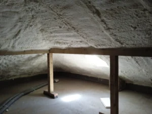 Izolația acoperișului clădirii a fost realizată cu spumă PUR de 25 cm grosime, iar pereții exteriori – cu polistiren grafitat de 20 cm grosime. Pentru finisarea fațadei clădirii s-a utilizat tencuială siliconică deschisă la culoare.