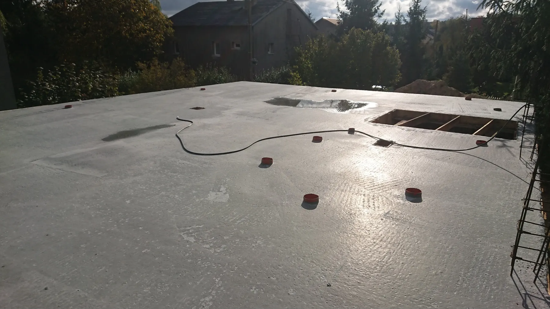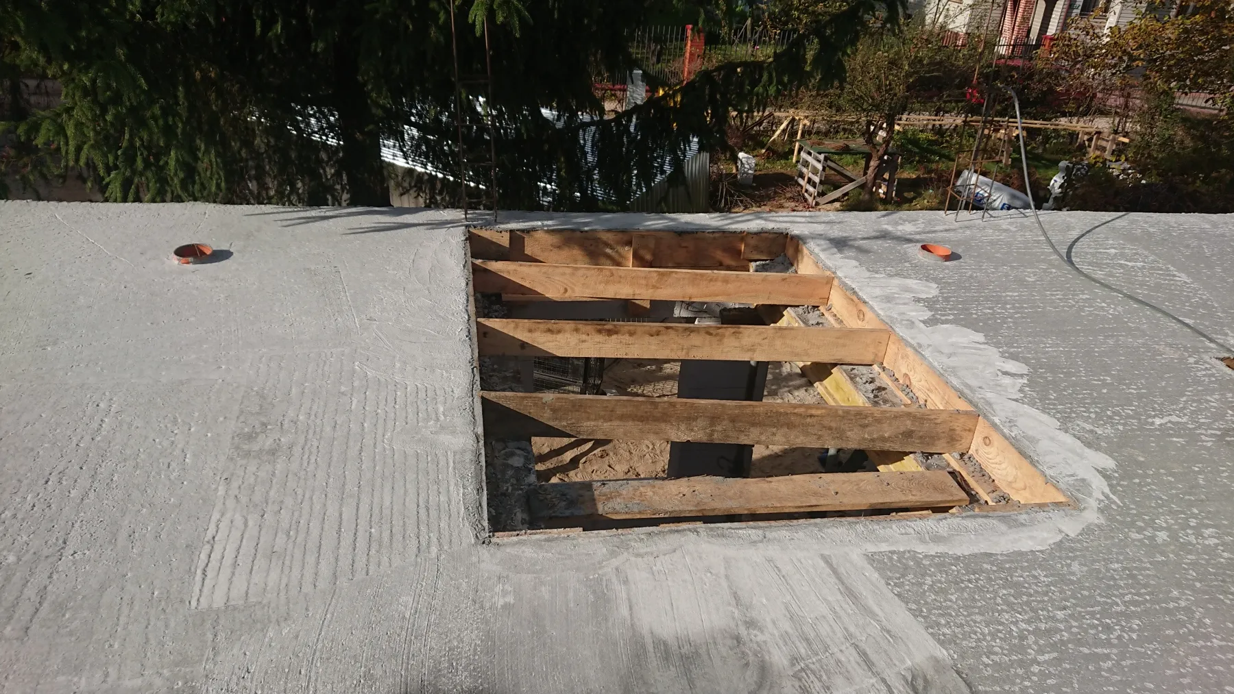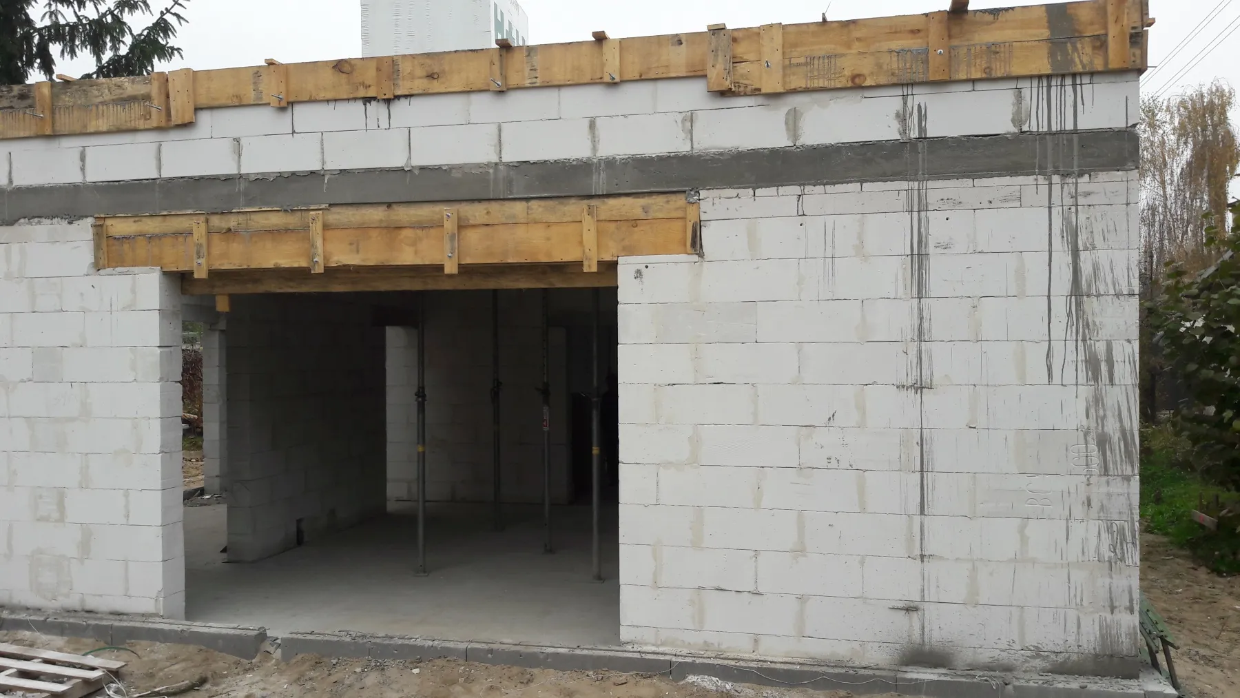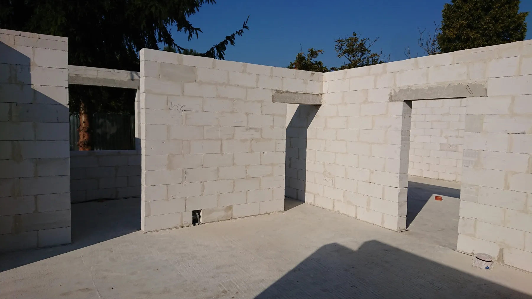 Casa cu o suprafață construită de 102 m2, situată pe o placă de fundație din beton armat izolată cu polistiren extrudat. Peretele exterior al parterului și etajului clădirii a fost construit din beton celular. Tavanul a fost realizat pe șantier, izolat cu polistiren. Structura acoperișului a fost realizată în mod tradițional din lemn de conifere impregnat conform proiectului. Exteriorul acoperișului a fost acoperit cu tablă cutată. A fost montată tâmplăria pentru ferestre și uși, precum și storuri încastrate, automate.