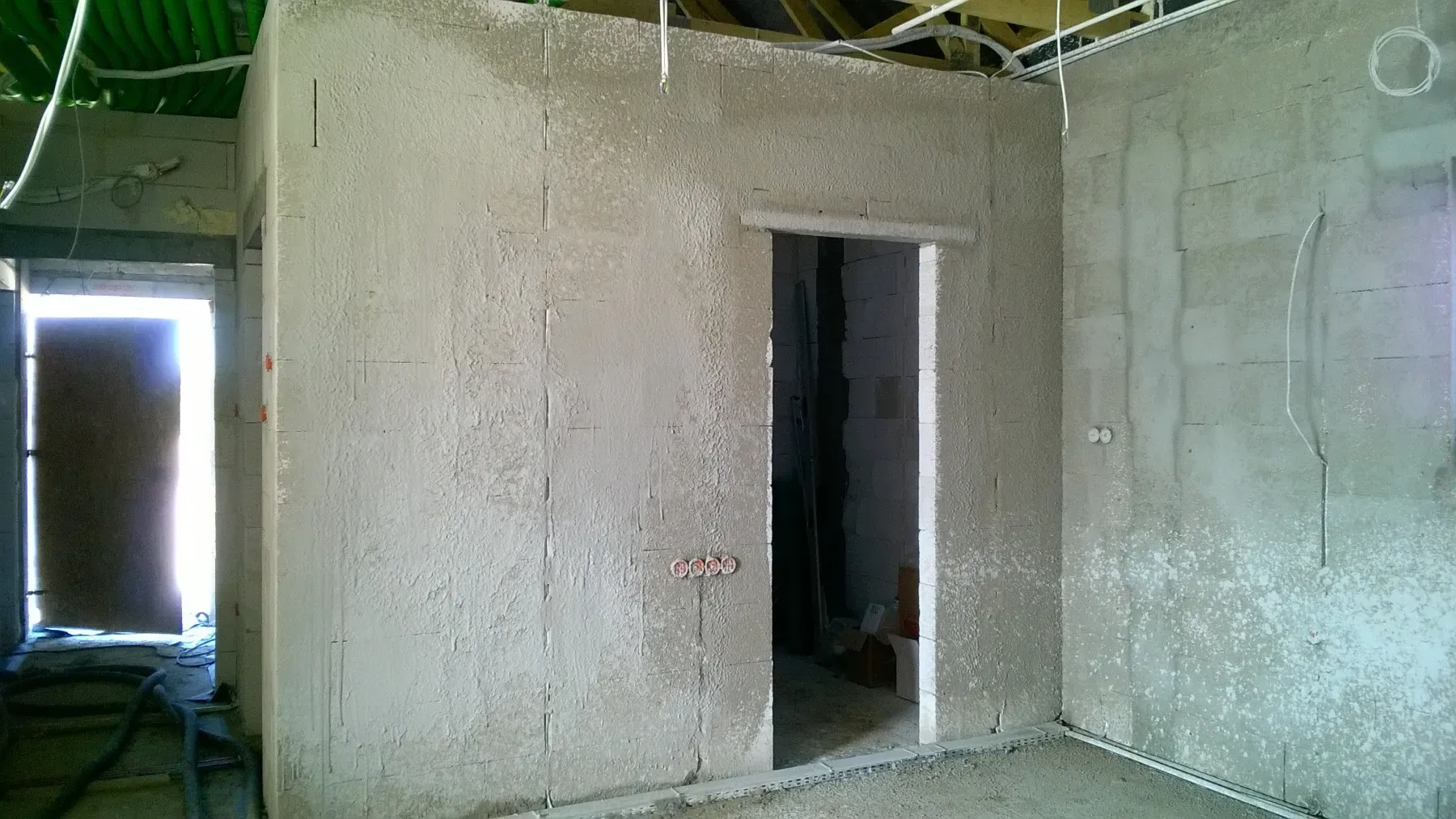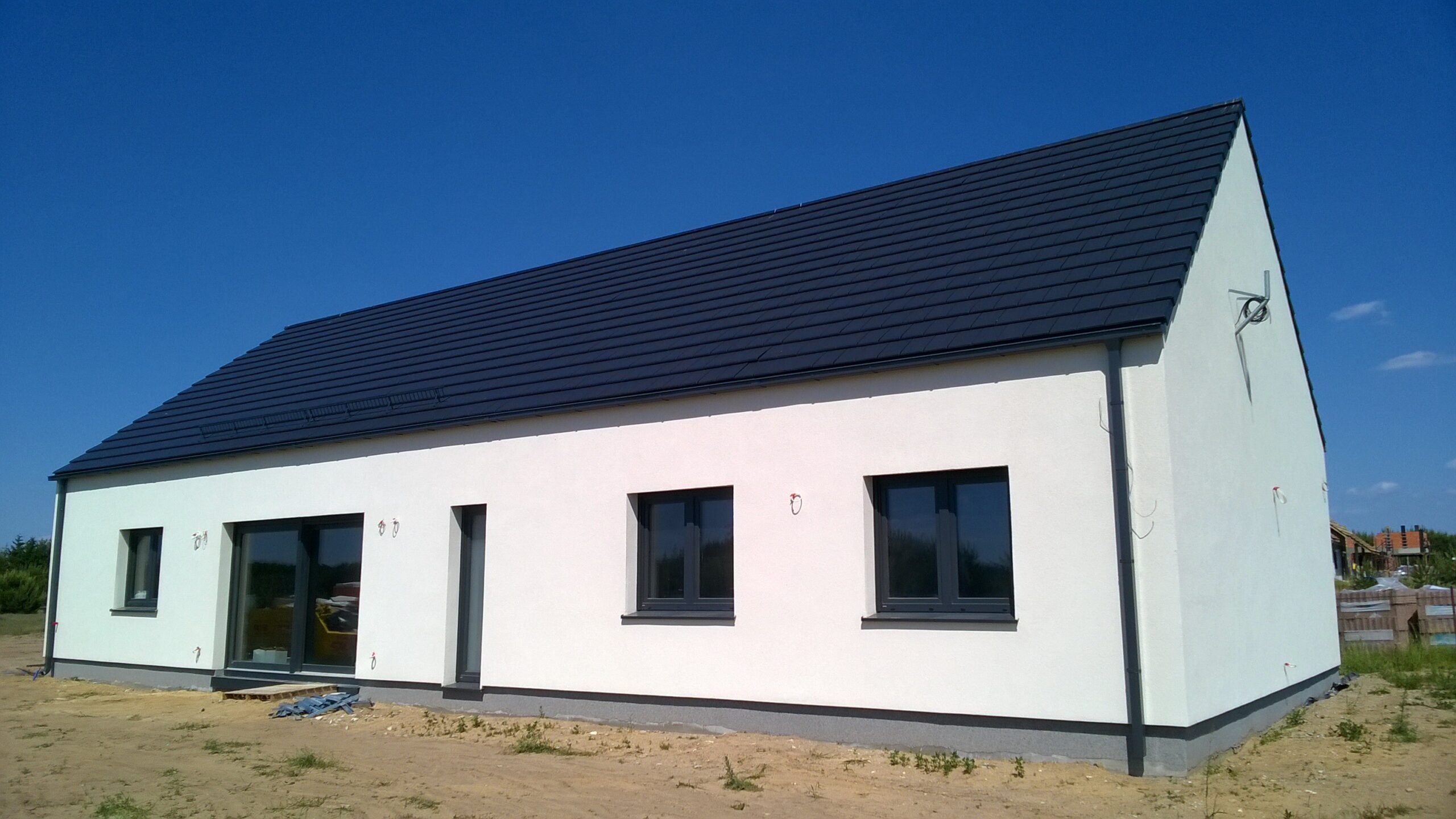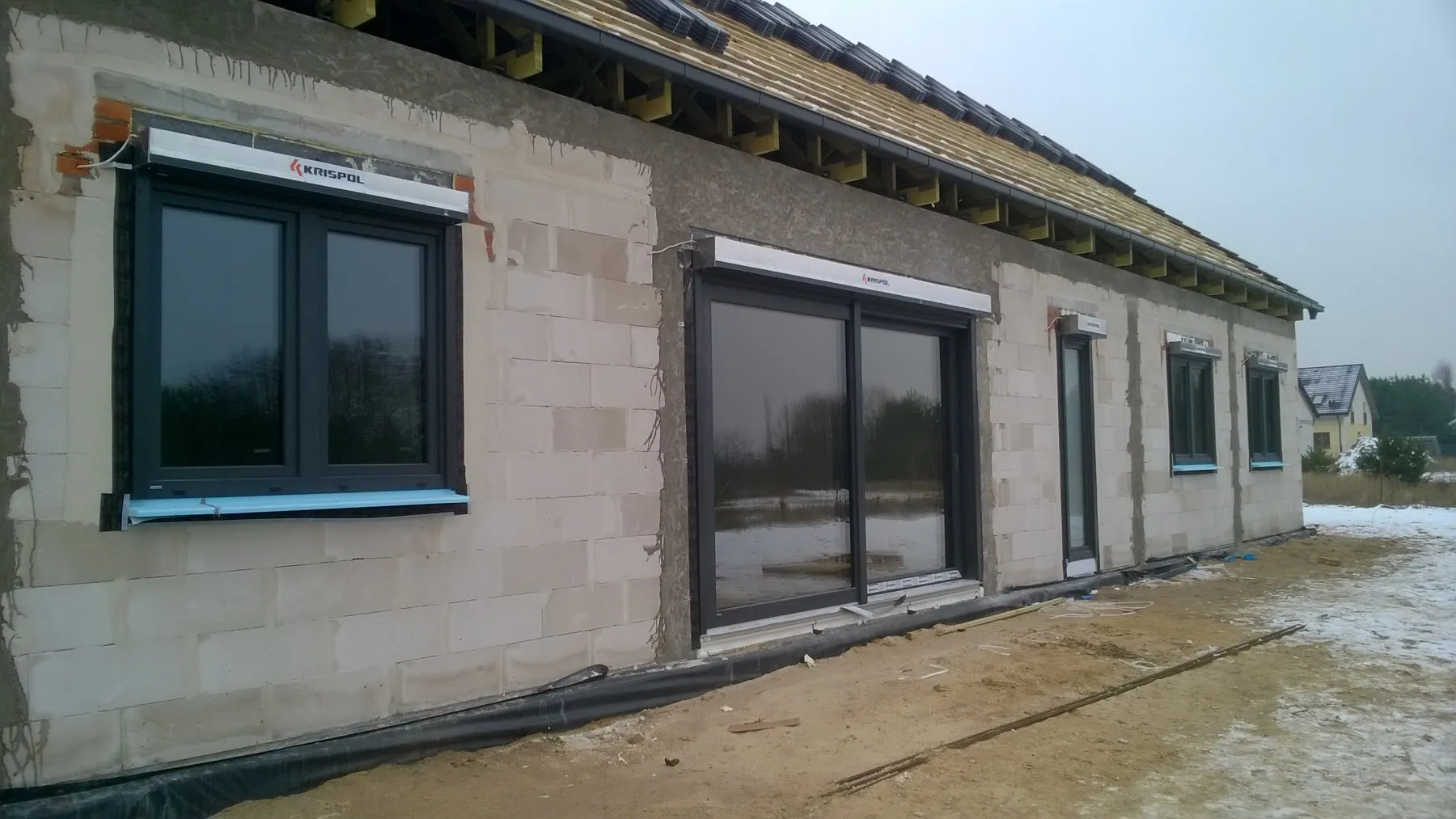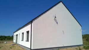 Izolația acoperișului clădirii a fost realizată cu spumă poliuretanică (PUR) de 22 cm grosime, iar pereții exteriori – cu polistiren grafitat de 20 cm grosime, cu lambda 0,031/0,032. Pentru finisarea fațadei clădirii a fost folosit tencuială siliconică de culoare albă.