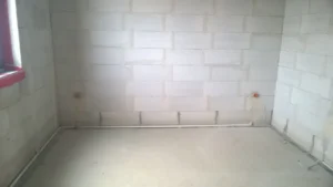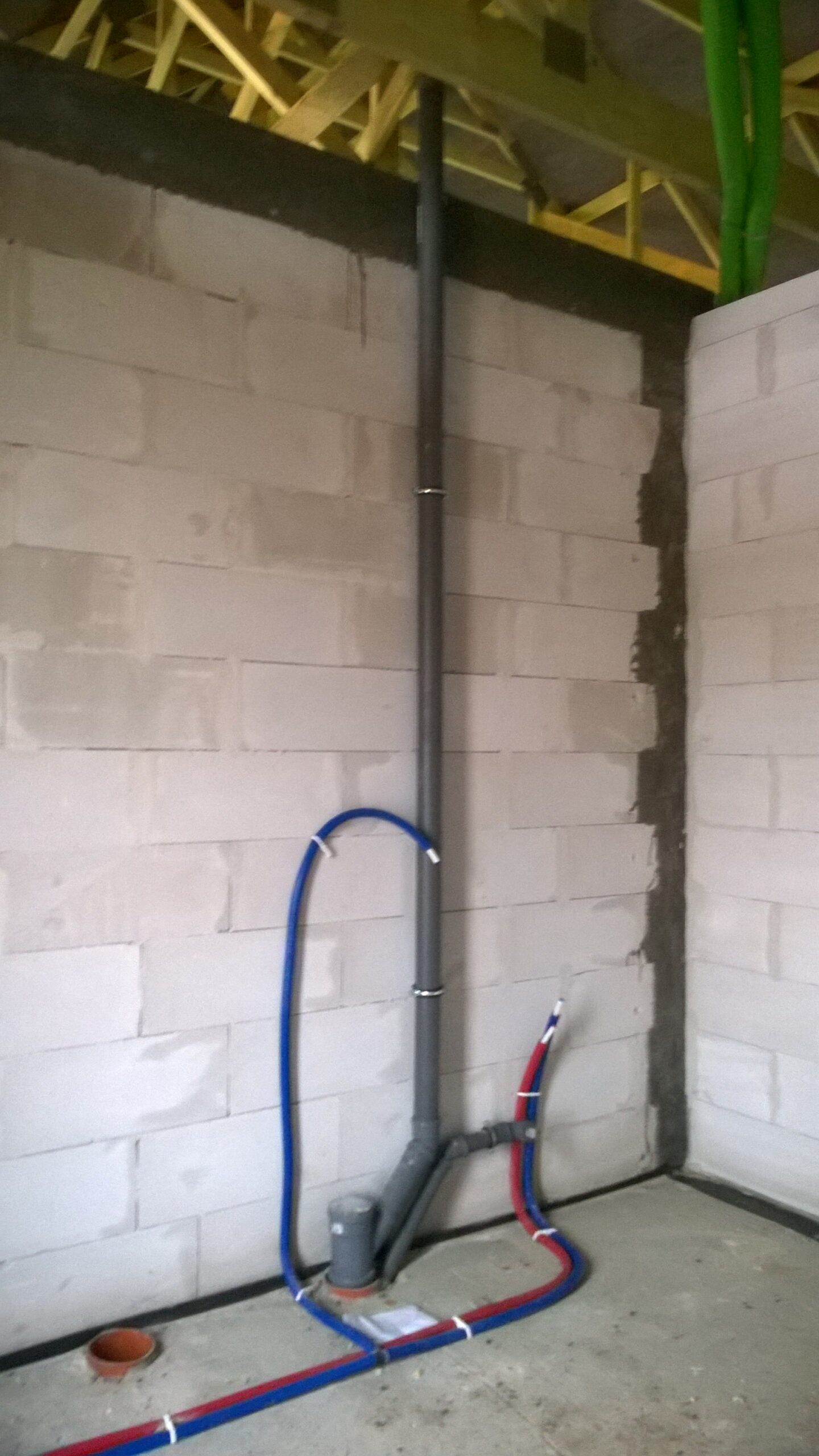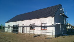 După efectuarea lucrărilor pregătitoare necesare, a fost realizată o placă de fundație armată cu grosimea de 20 cm, pe care a fost așezată o termoizolație de 15 cm grosime din polistiren extrudat XPS 300. Pereții de rezistență exteriori și interiori, cu grosimile de 24 cm respectiv, au fost realizați din beton celular. Învelitoarea acoperișului a fost executată din ferme prefabicate din lemn prelucrat pe patru fețe. Acoperișul clădirii a fost acoperit cu țiglă ceramică Braas Turmalin.