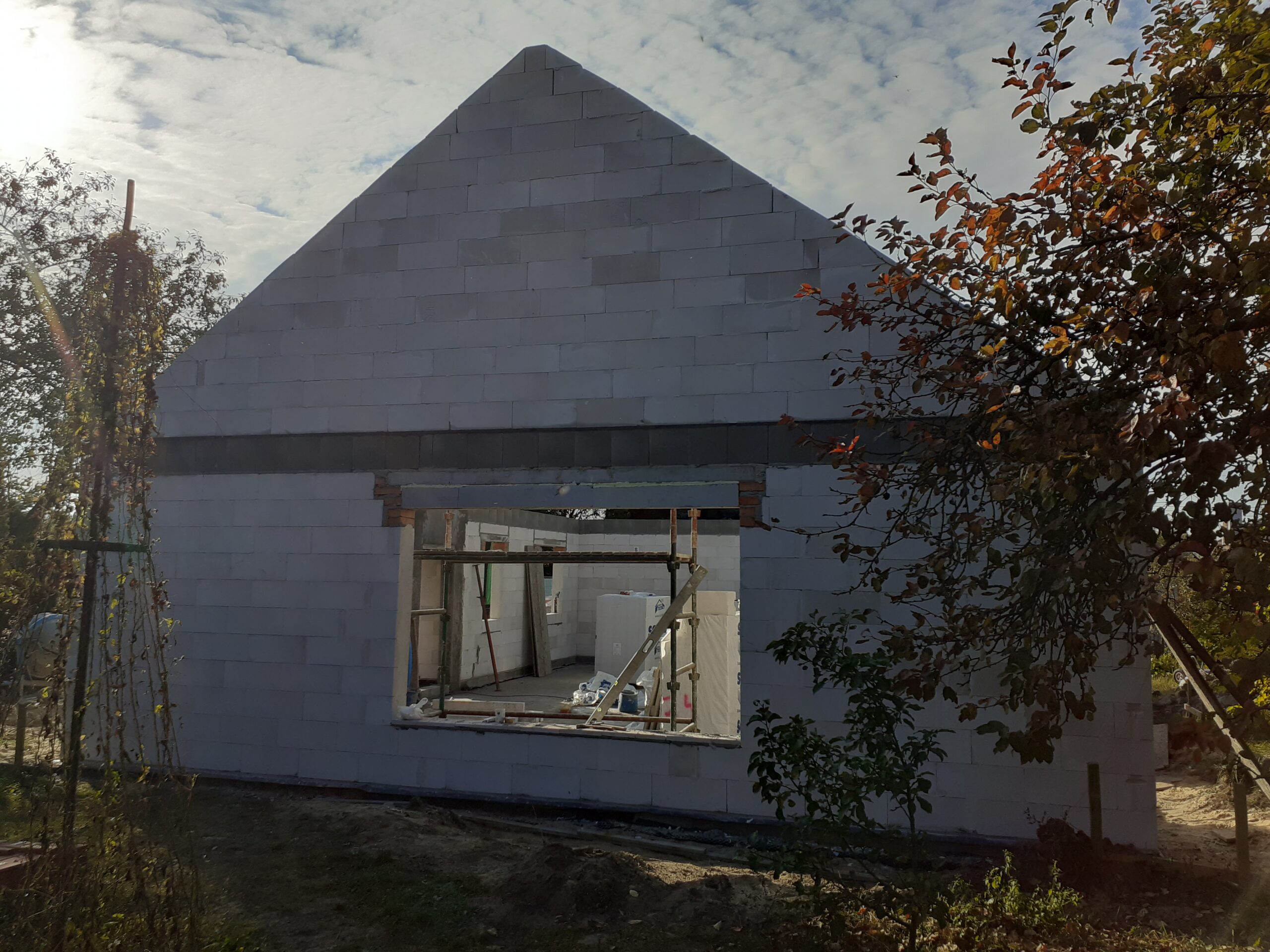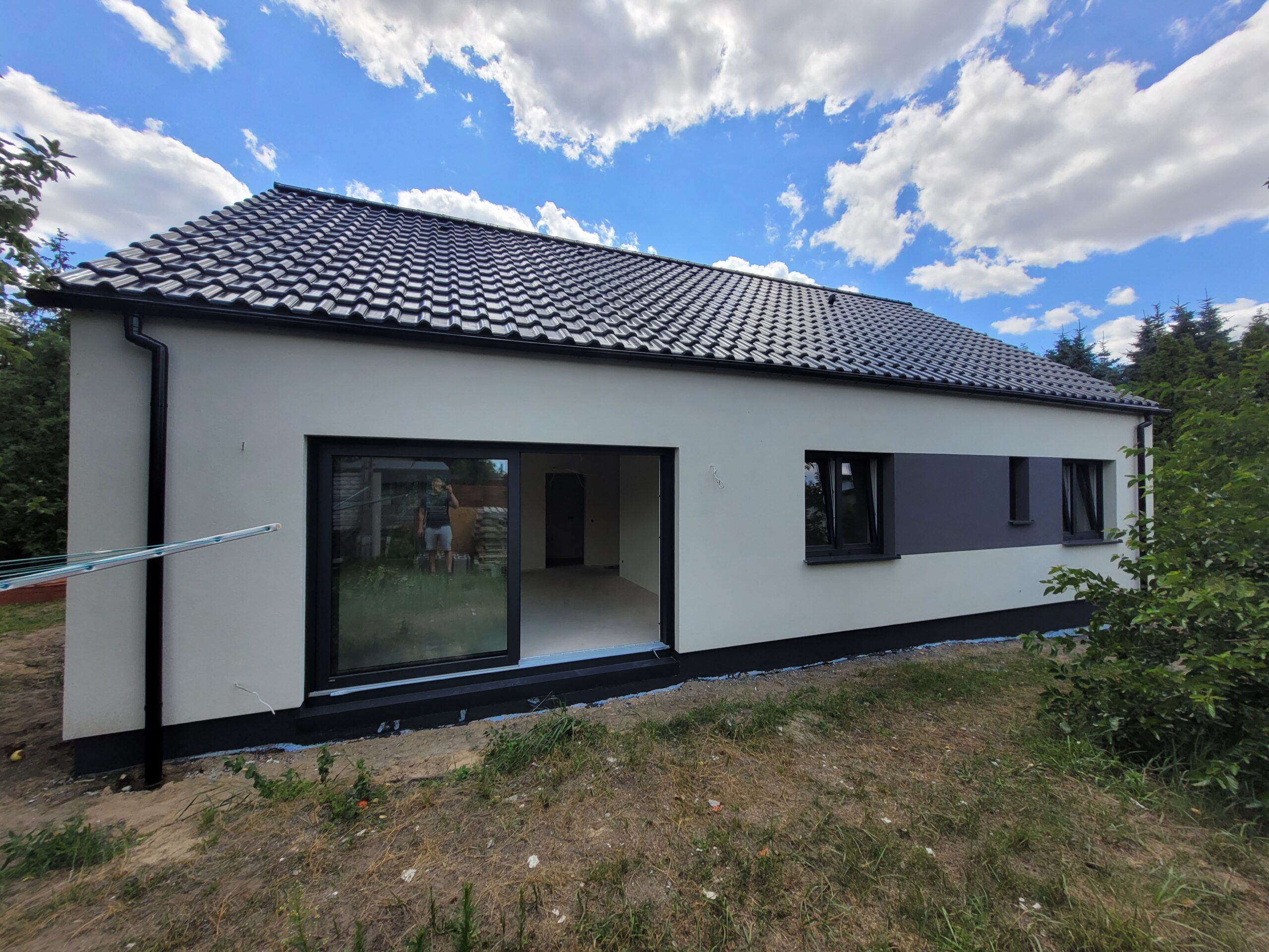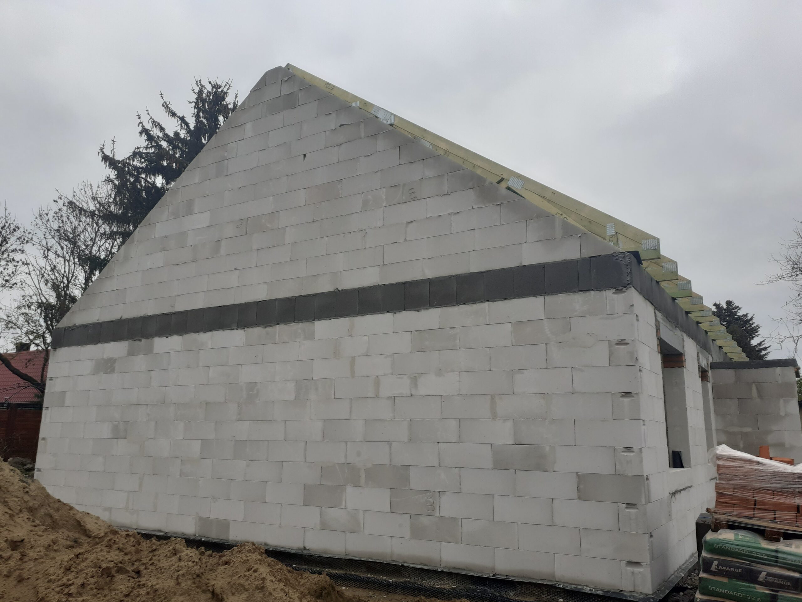 Casa cu o suprafață de 111 m2 construită pe fundații tradiționale, adică fundamente armate și pereți de fundație izolați termic. Pereții portanți și cei despărțitori au fost realizați din beton celular cu o grosime de 24 cm, respectiv 12 cm. Structura acoperișului a fost realizată din ferme prefabricate din lemn șlefuit pe patru fețe. Acoperișul este acoperit cu țiglă beton ondulată de culoare grafit.