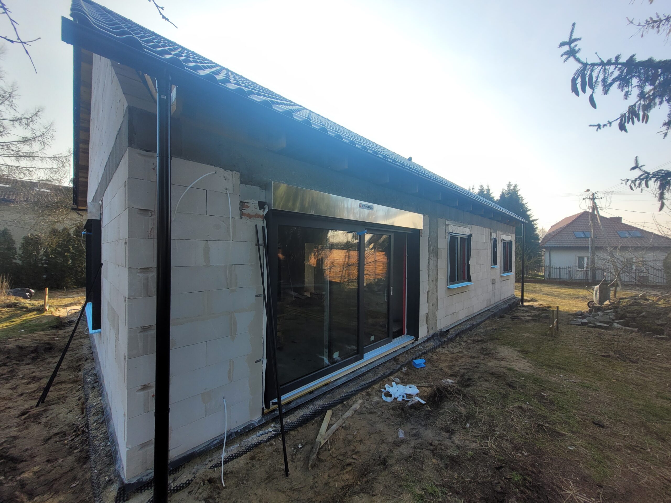 În cadrul montajului termic al tâmplăriei ferestrelor a fost instalat un sistem de ferestre tripan, eficiente energetic cu profile Bluevolution cu 6 camere și adâncimea de 82 mm, precum și pervazuri termice. Livingul a fost echipat cu jaluzele exterioare. În clădire au fost realizate instalații electrice, tehnice și de recuperare a căldurii. În plus, a fost montat un tub protecție pentru sistemul fotovoltaic și s-a pregătit clădirea pentru instalarea sistemului de climatizare.