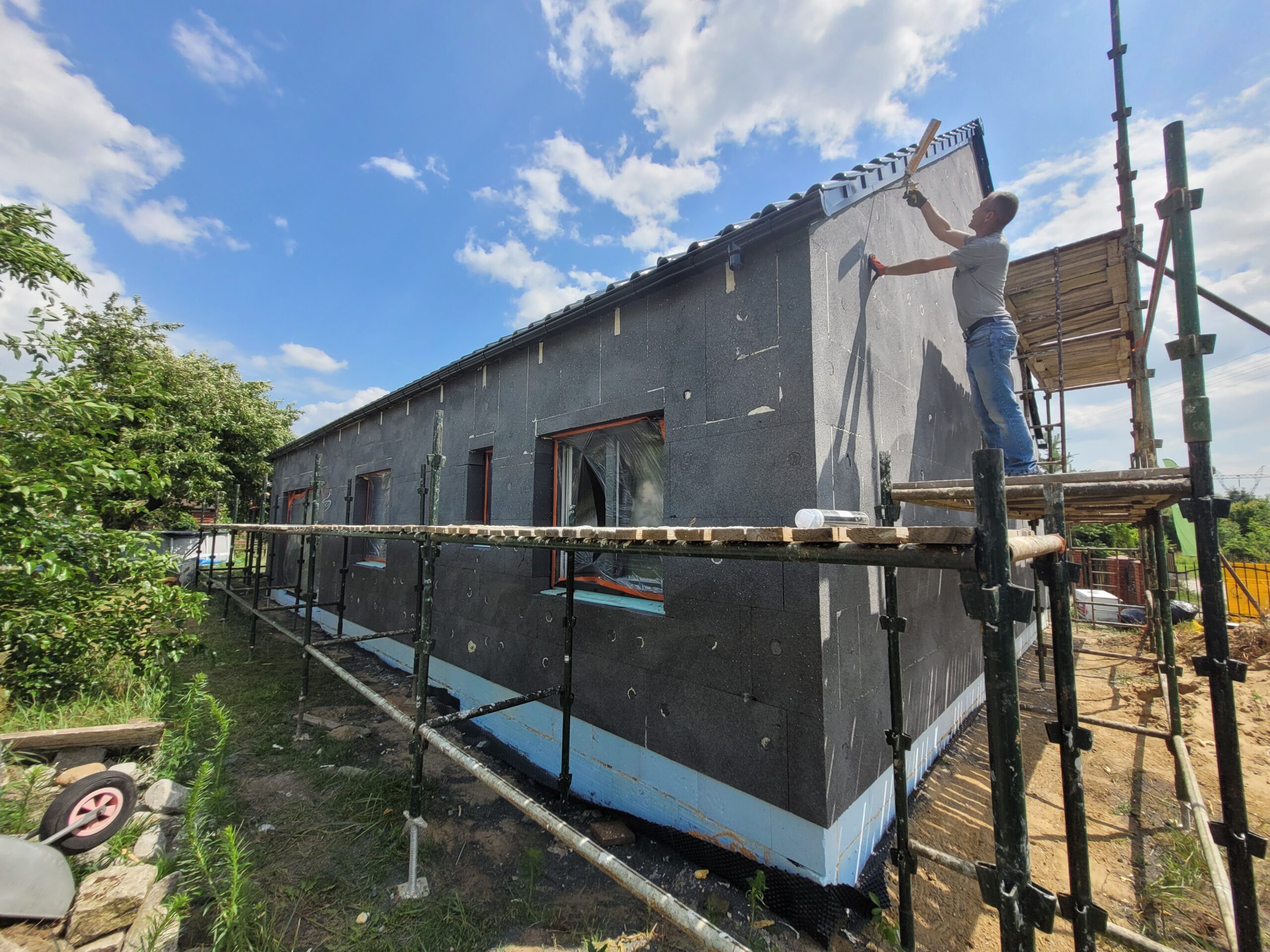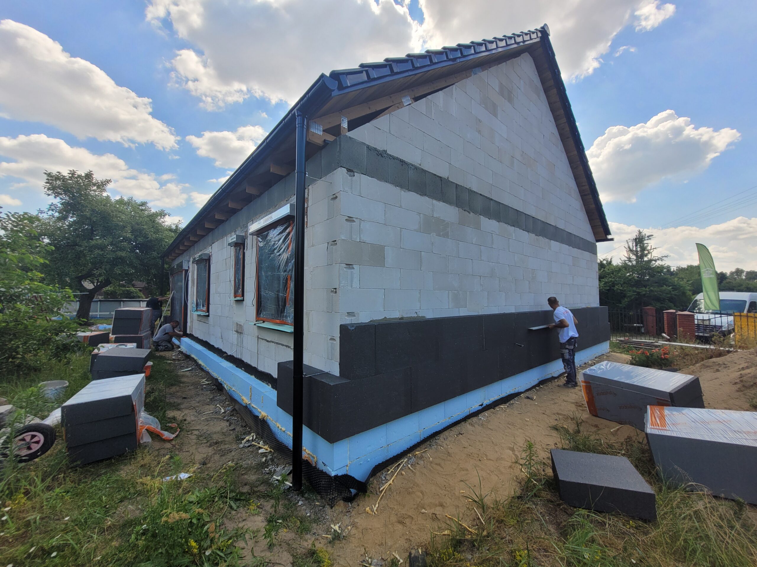 Izolația tavanului clădirii a fost realizată cu spumă poliuretanică (PUR) de 25 cm grosime, iar pereții exteriori – cu polistiren grafit de 20 cm grosime. Pentru finisajul fațadei clădirii s-a folosit tencuială siliconică de culoare albă și grafit.
