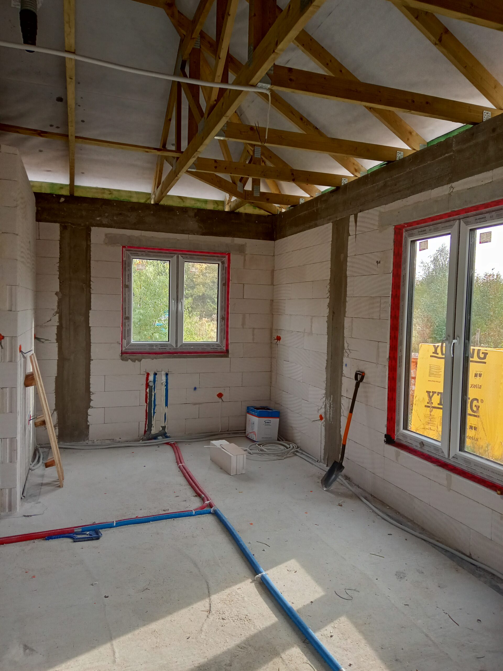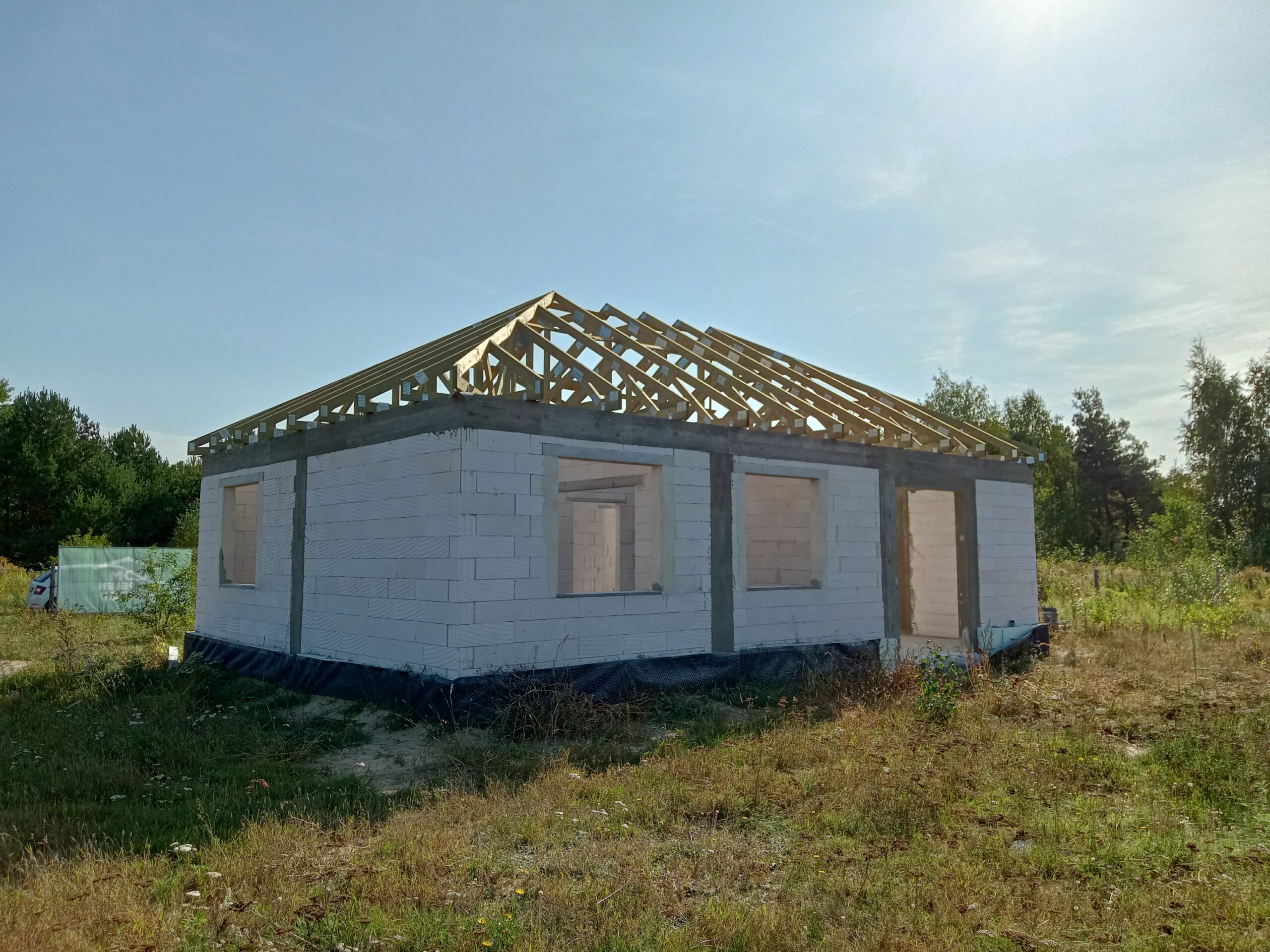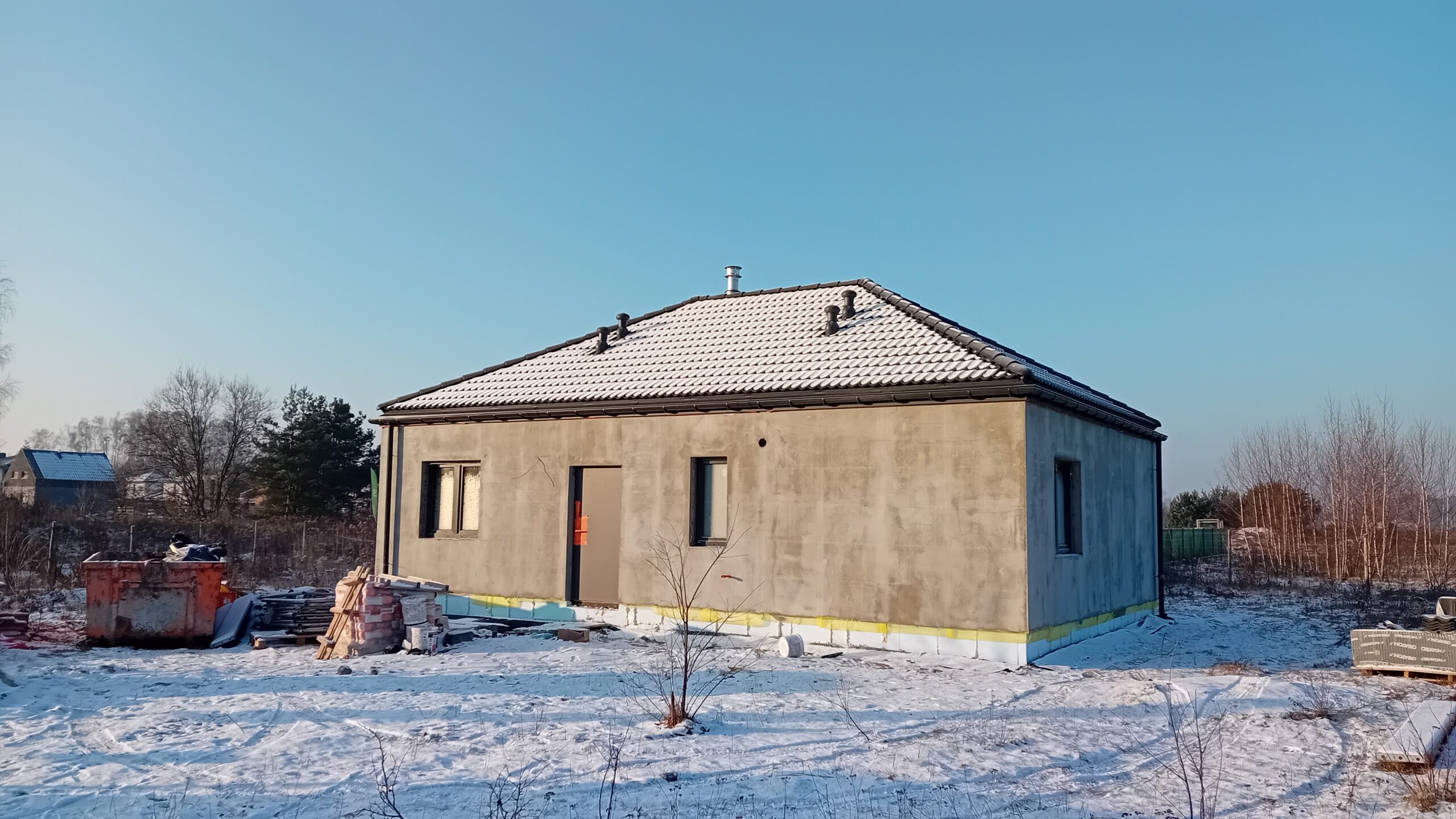 Casa cu o suprafață construită de 72 m2 ridicată pe fundații tradiționale, adică benzi armate și ziduri de fundație. Pereții portanți și despărțitori au fost realizați din beton celular cu o grosime de 18 și 12 cm, respectiv. Acoperișul clădirii a fost realizat ca o construcție prefabricată și acoperit cu țiglă beton ondulată de culoare grafit.