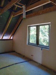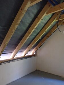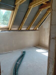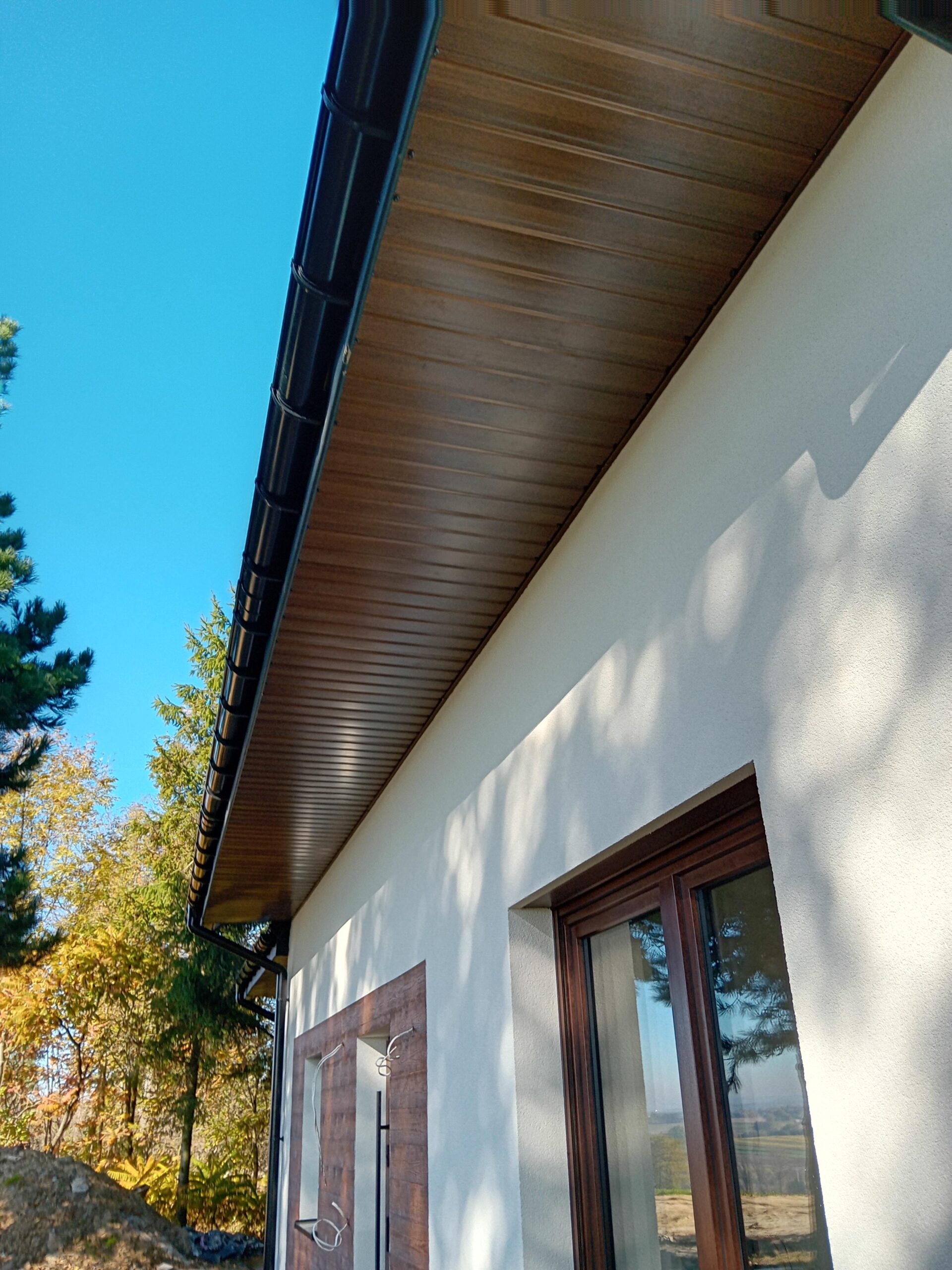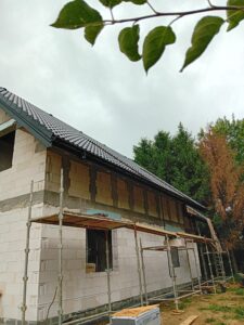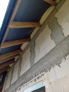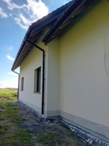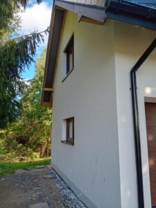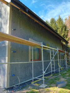 Izolația acoperișului clădirii a fost realizată cu spumă PUR de 25 cm grosime, iar izolația pereților exteriori este făcută cu polistiren extrudat de 20 cm grosime. Pentru finisarea fațadei clădirii s-a folosit tencuială siliconică și imitatie de lemn.