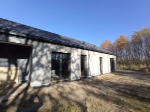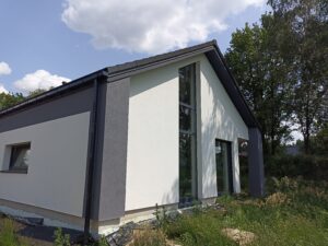 Casă parter eficientă din punct de vedere energetic, cu acoperiș în două ape, având o suprafață de 156 m²