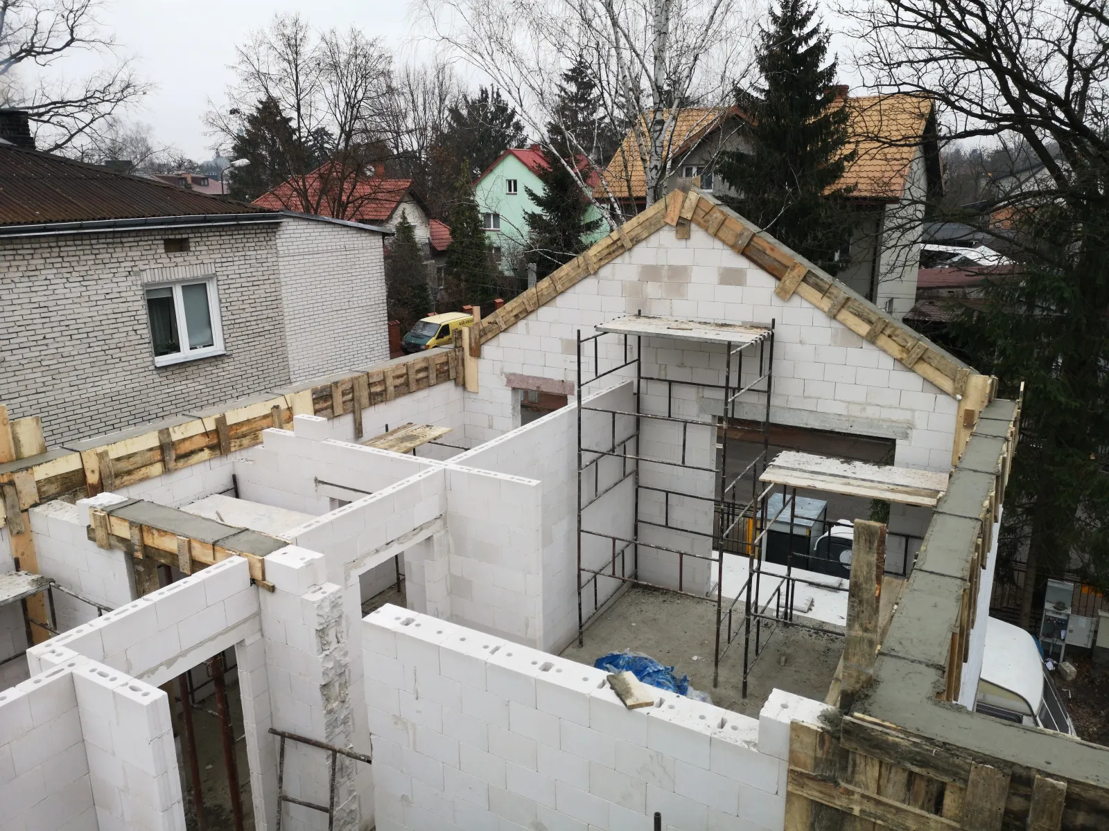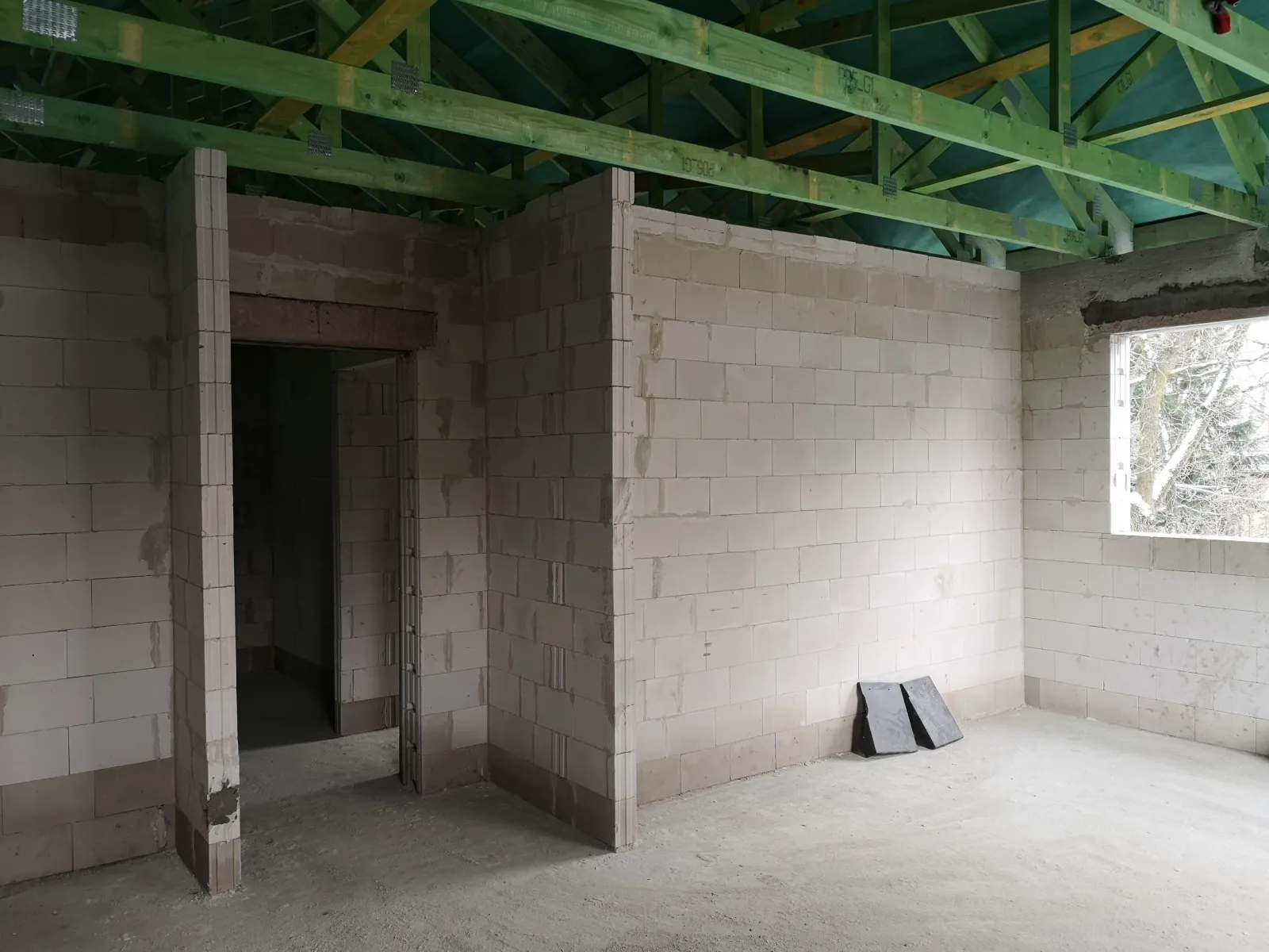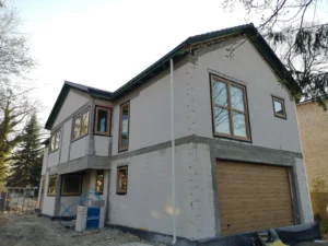 Casă cu o suprafață de 225 m2 ridicată pe fundații tradiționale, adică fundamente armate și pereți de fundație termoizolați. Pereții portanți și despărțitori au fost realizați din blocuri Silka. Tavanul – monolitic, din beton armat. Structura acoperișului a fost realizată dintr-o construcție prefabricată din lemn conform proiectului de construcție, din lemn clasa C24, șlefuit pe patru fețe și impregnat. Acoperișul clădirii a fost acoperit cu țiglă de ciment Brass Teviva.