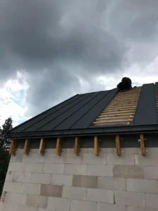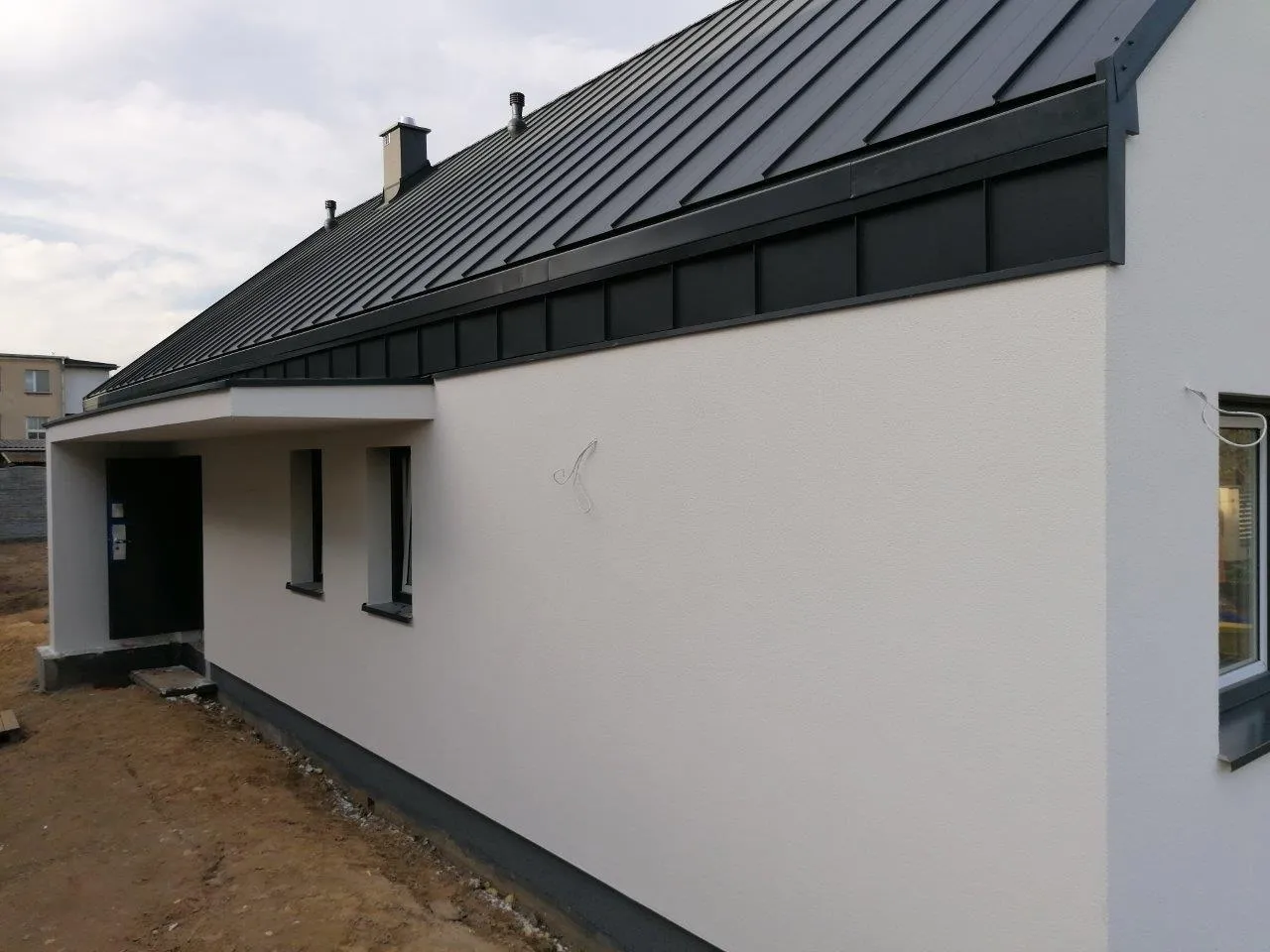 Structura acoperișului cu o suprafață de 183 m2 a fost realizată din elemente prefabricate. Acoperișul a fost acoperit cu tabla cutată Budmat Prime Click. La montajul termic al tâmplăriei pentru ferestre a fost utilizat sistemul de ferestre pasive KRISPOL – FEN 85, profile cu 6 camere și adâncime de 85 mm, precum și pervazuri termoizolante din XPS.
