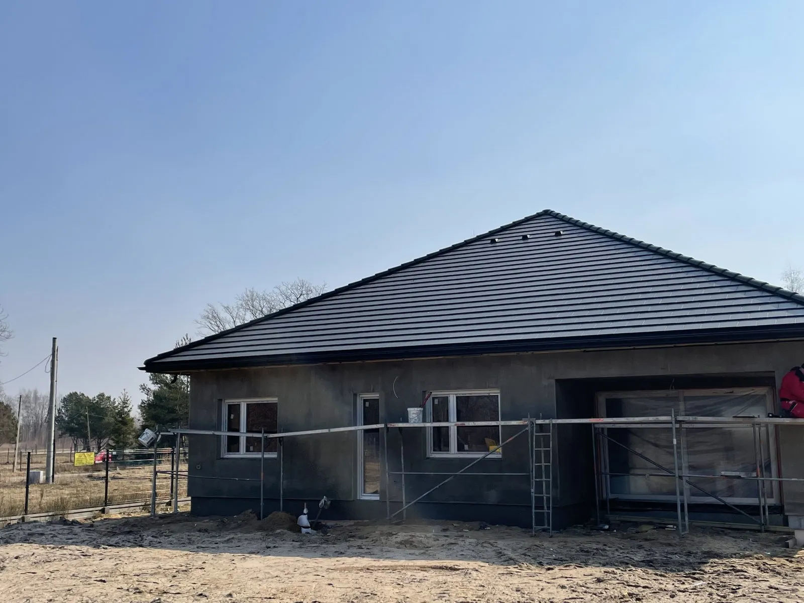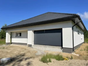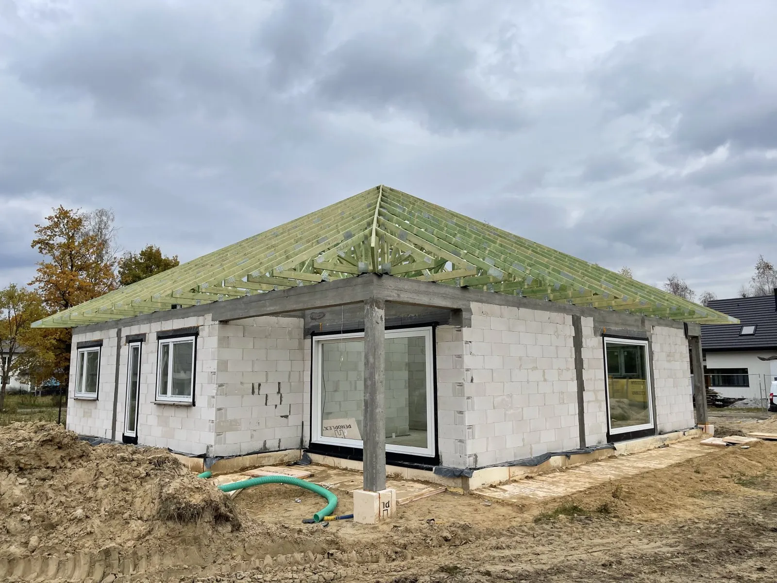 Casă cu o suprafață utilă de aproape 120 m2 ridicată pe o plăcuță de fundație armată cu termoizolație eficientă energetic de 10 cm de polistiren XPS 300. Atât zidurile de rezistență, cât și pereții despărțitori au fost realizați din beton celular cu o grosime de 24 și, respectiv, 12 cm, pe mortar cu strat subțire de clasa M5. Structura acoperișului a fost realizată ca o construcție prefabricată din lemn, acoperită cu țiglă de ciment Brass Teviva de culoare grafit. A fost realizat un tubaj pe acoperiș pentru instalarea ulterioară a unui sistem fotovoltaic.