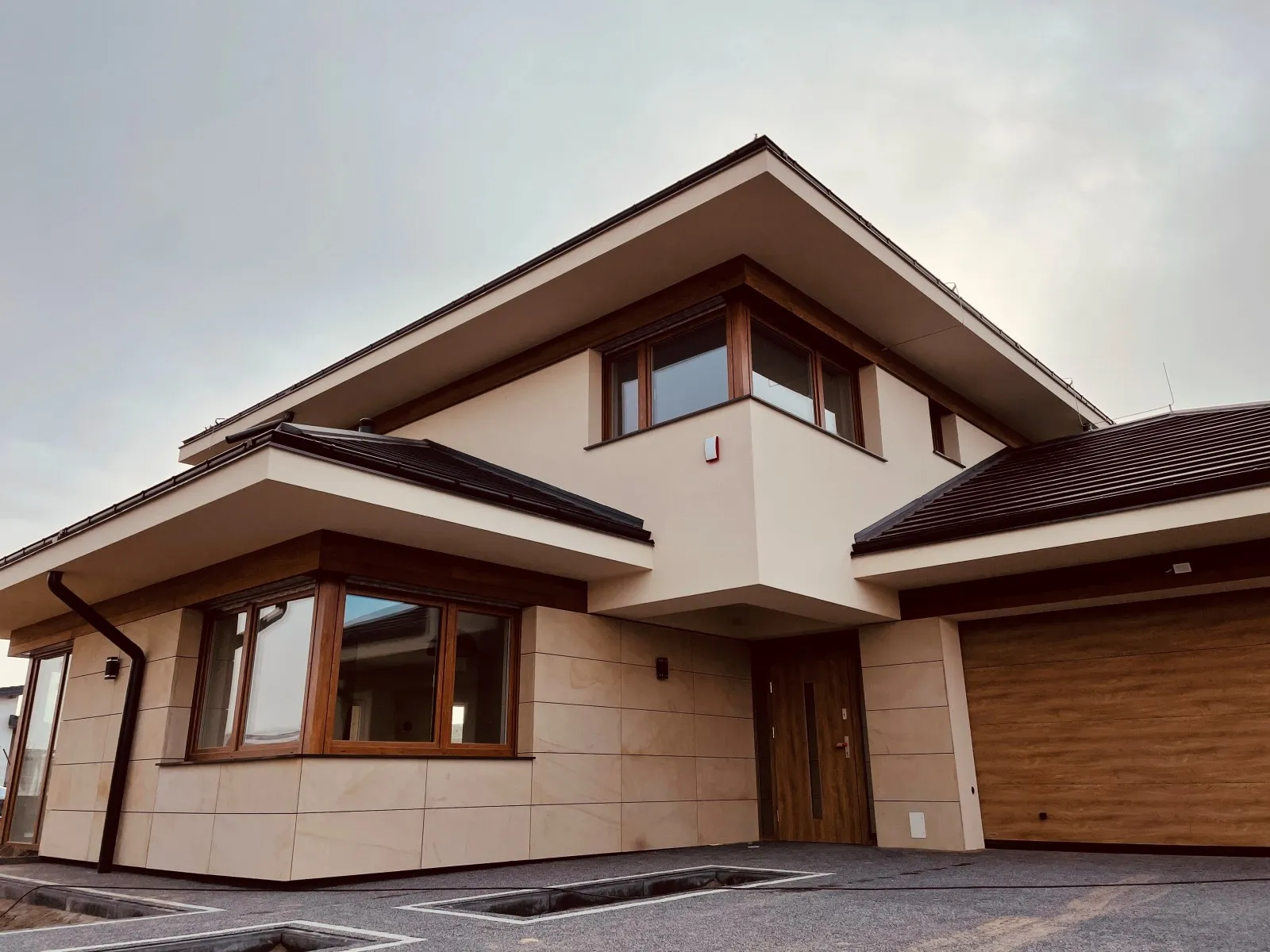 Pe fațada casei pot fi combinate diferite culori de tencuială. De asemenea, se poate oferi locuinței un aspect unic prin integrarea unor elemente decorative din lemnpiatră decorativăplăci pentru fațadă sau cărămidă klinker. Posibilitățile de alegere sunt foarte variate.