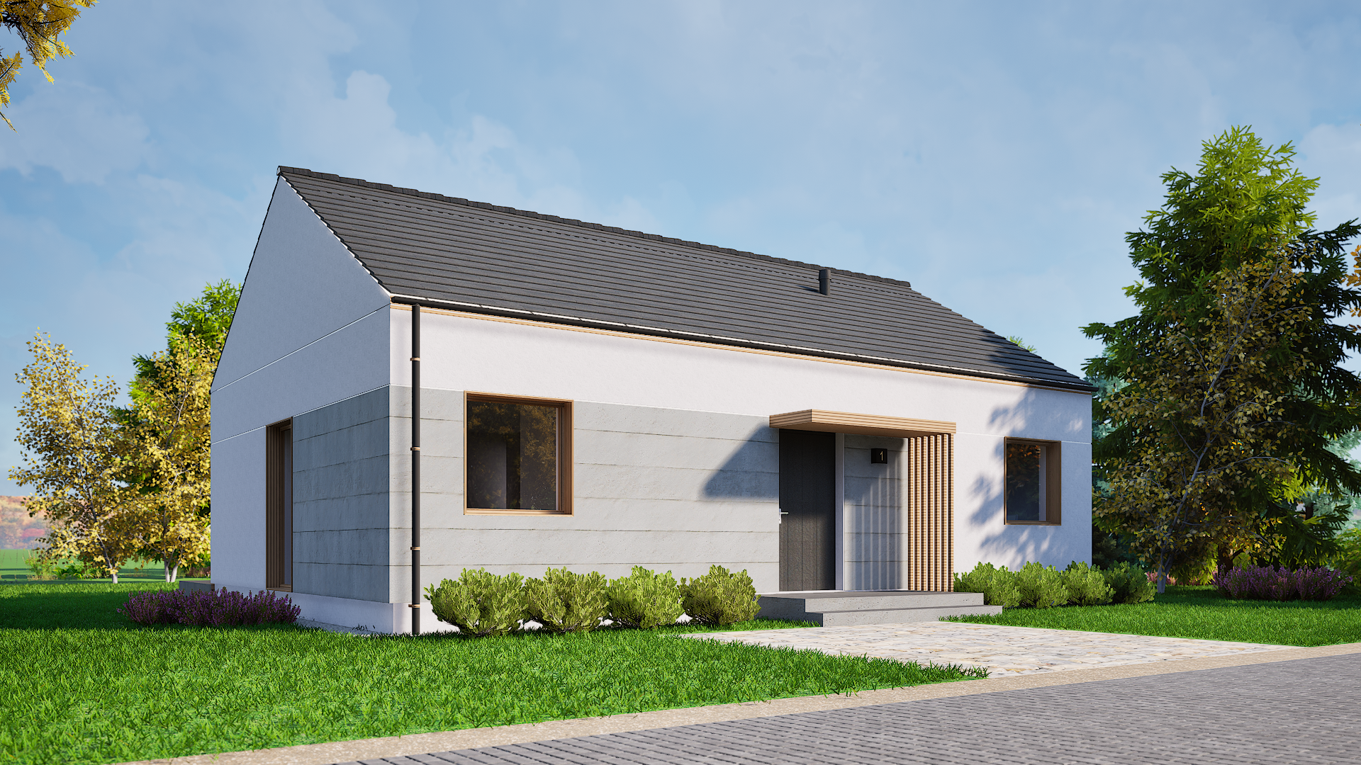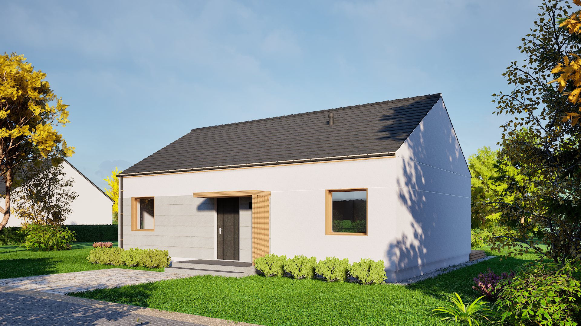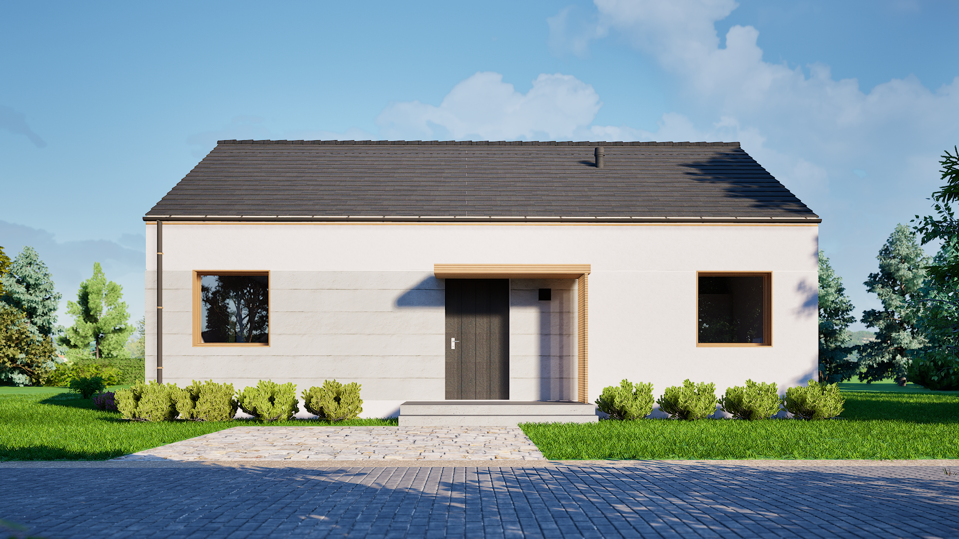 Casa parter ECO 71 cu consum redus de energie este o opțiune excelentă pentru persoanele care apreciază atemporalitatea, simplitatea și ergonomia. Fiind o construcție parter, se remarcă printr-o comunicare bine gândită între camere, ceea ce o face funcțională și confortabilă pentru utilizarea zilnică. Proiectul ia în considerare posibilitatea instalării panourilor fotovoltaice, recuperarea de căldură, pompe de căldură și încălzire electrică sau prin infraroșu.