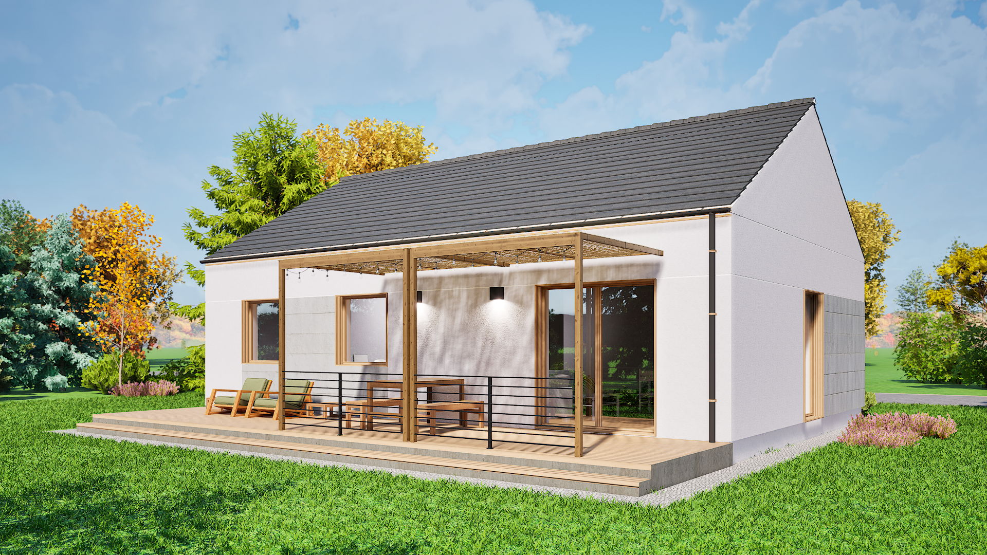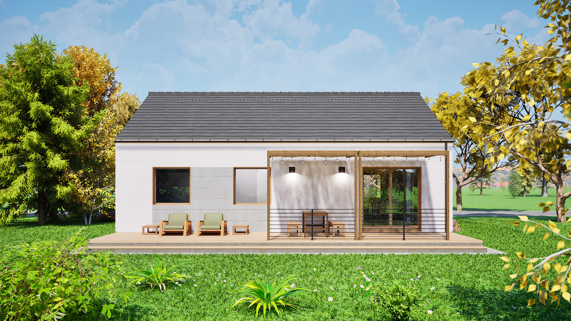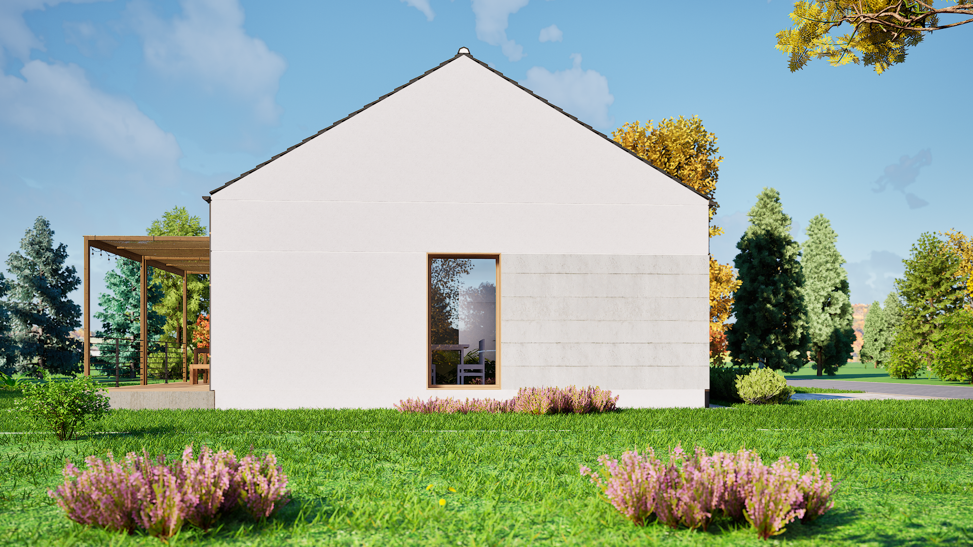 Casa parter ECO 71 cu consum redus de energie este o opțiune excelentă pentru persoanele care apreciază atemporalitatea, simplitatea și ergonomia. Fiind o construcție parter, se remarcă printr-o comunicare bine gândită între camere, ceea ce o face funcțională și confortabilă pentru utilizarea zilnică. Proiectul ia în considerare posibilitatea instalării panourilor fotovoltaice, recuperarea de căldură, pompe de căldură și încălzire electrică sau prin infraroșu.